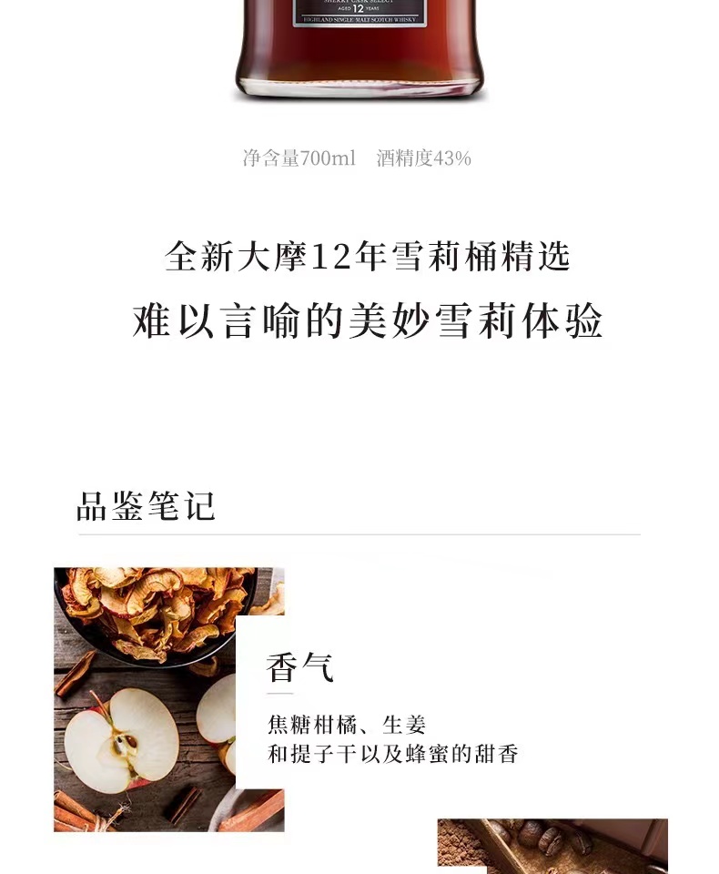 【有税版】大摩12年 苏格兰单一麦芽威士忌(雪莉桶)700ml