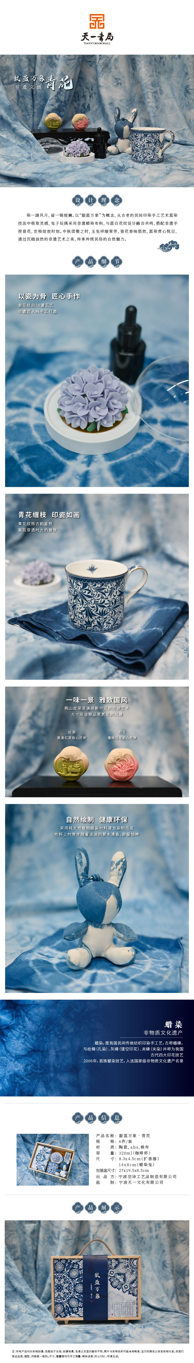 羽诗制造出品 靛蓝万象•青花蜡染兔咖啡杯陶瓷扩香器月饼礼盒套装
