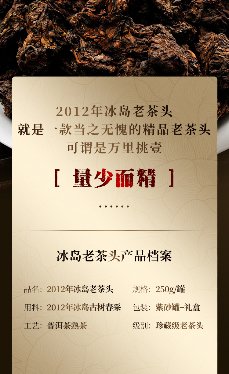 【冰岛老茶头】张大师私藏品 万里挑壹的高品质 2012年春茶临沧冰岛普洱老茶头熟茶紫砂罐装250g