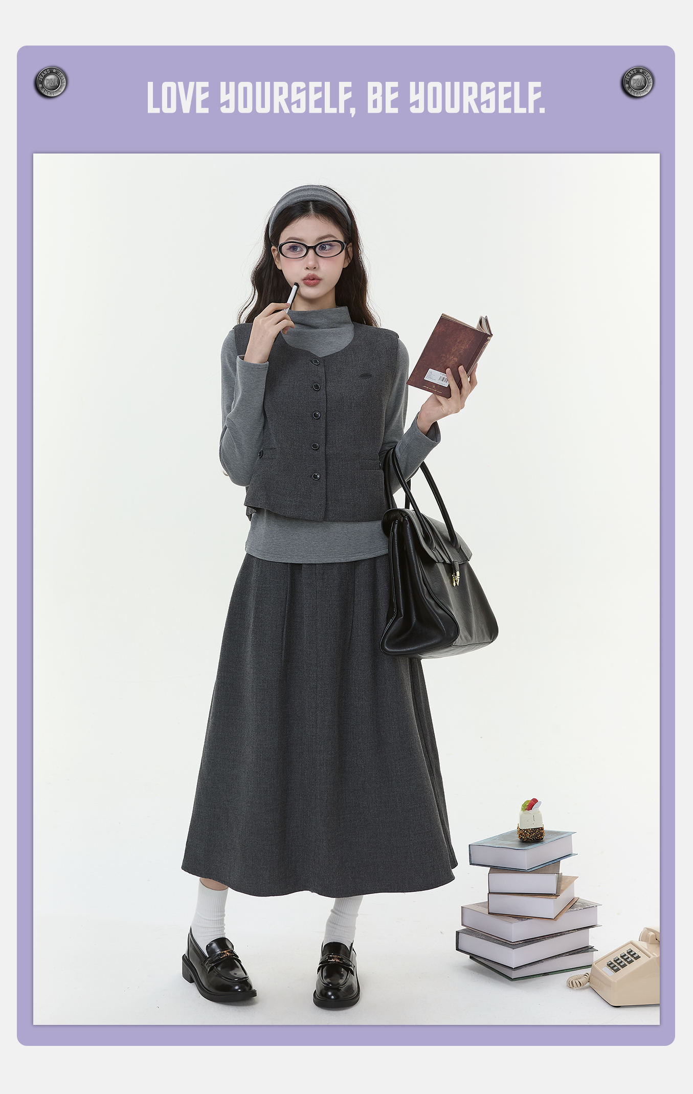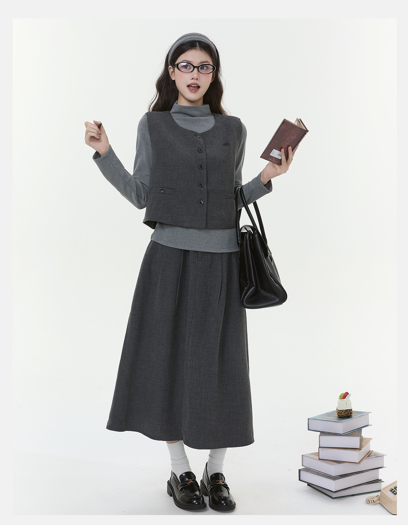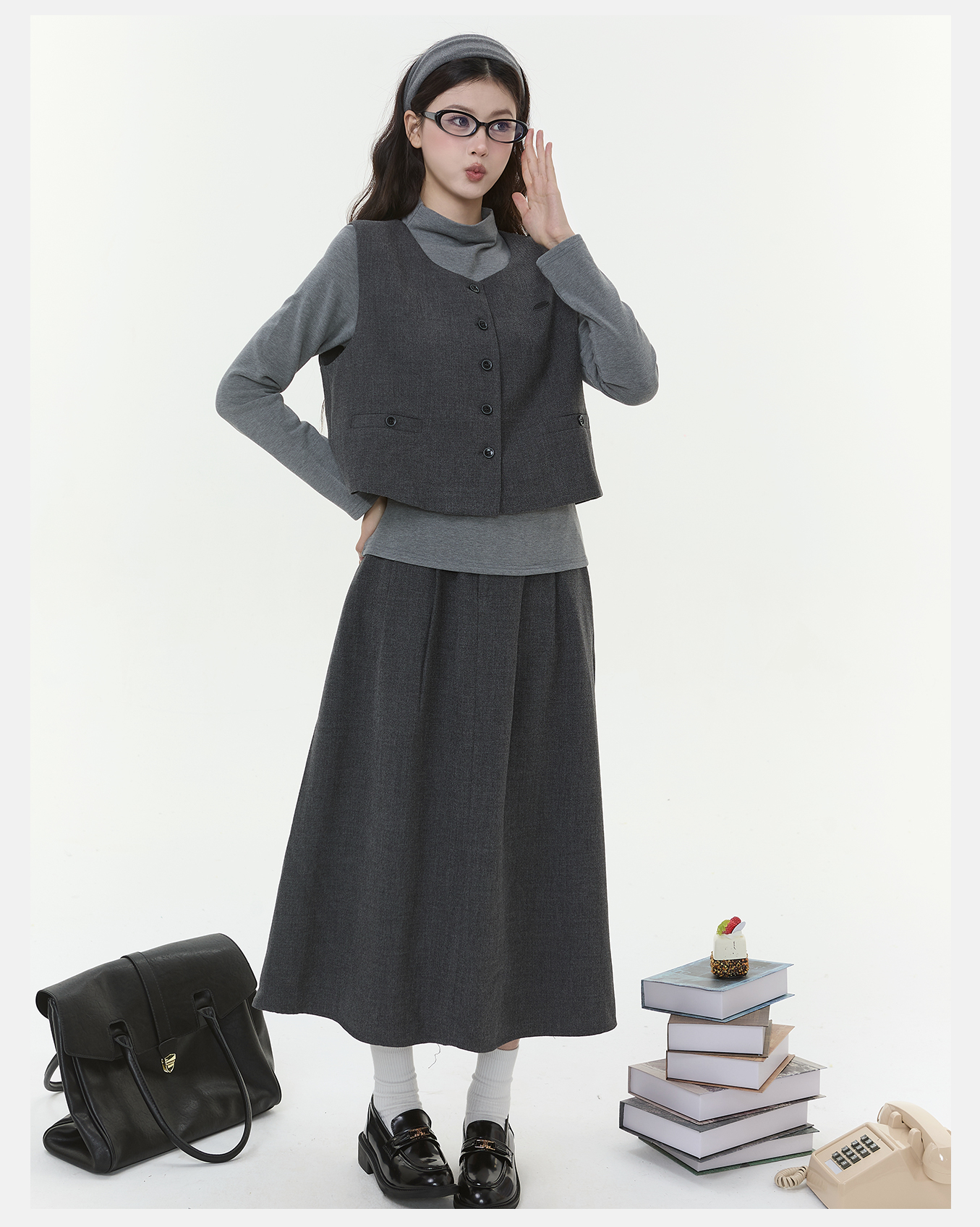 P&X设计师女装2025冬季气质法式时尚套装长裙 825414197 灰色