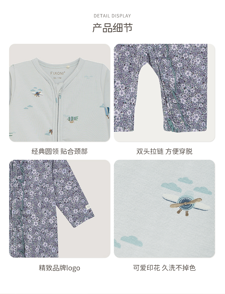 【云优选】FIXONI婴幼儿印花斜开拉链连体衣-2025新品