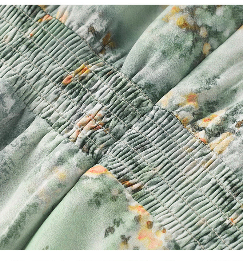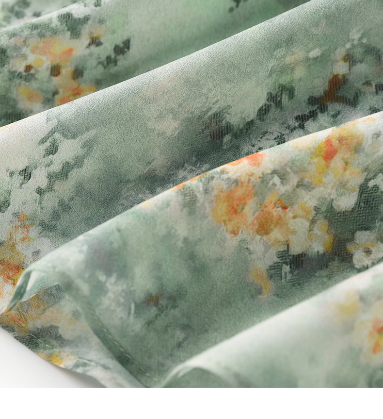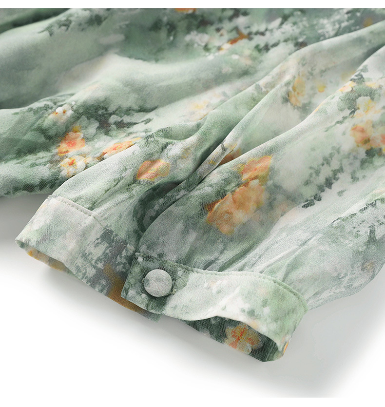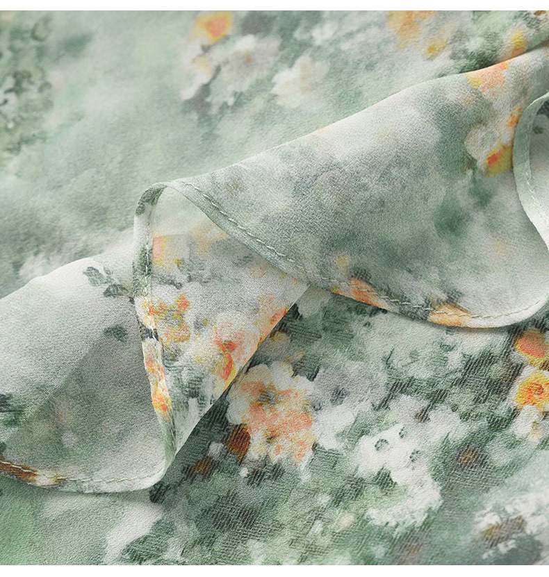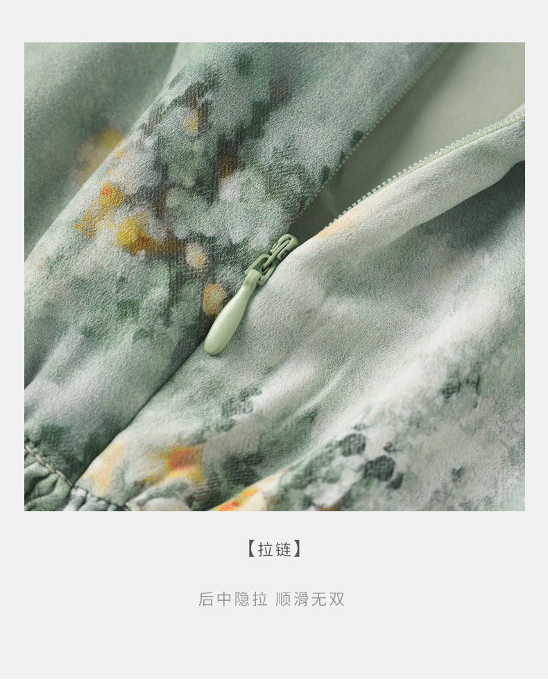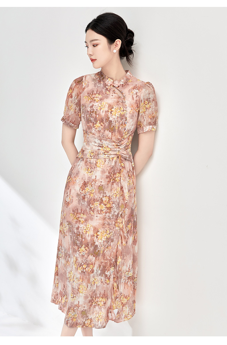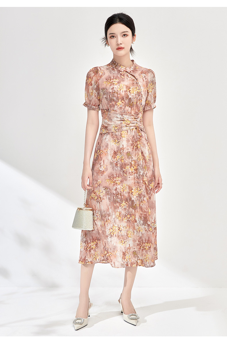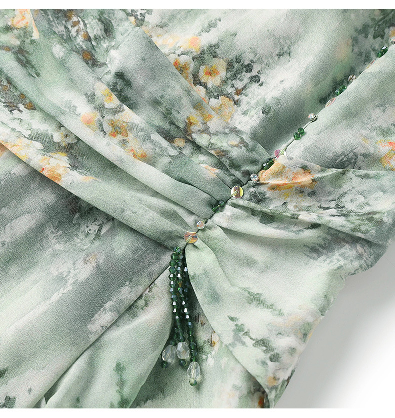 重工钉珠新中式旗袍,改良法式复古雪纺印花连衣裙WLZD-2413206