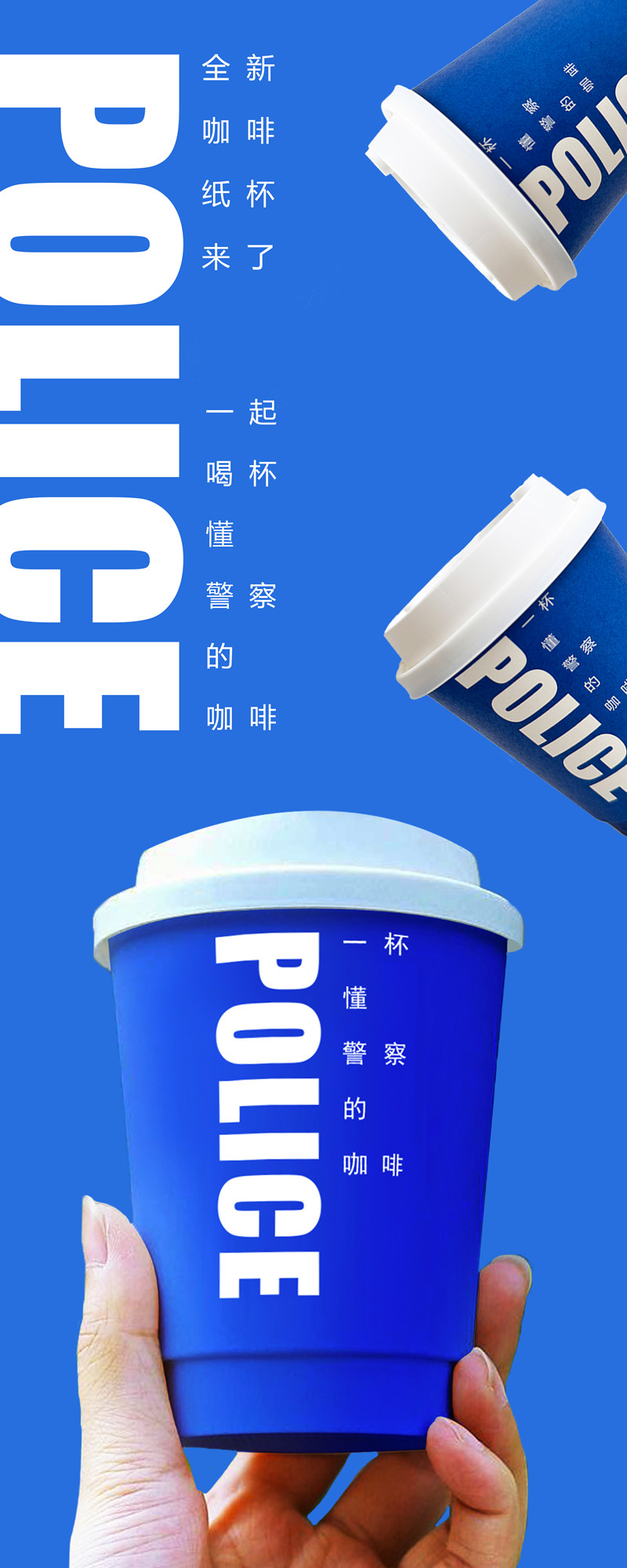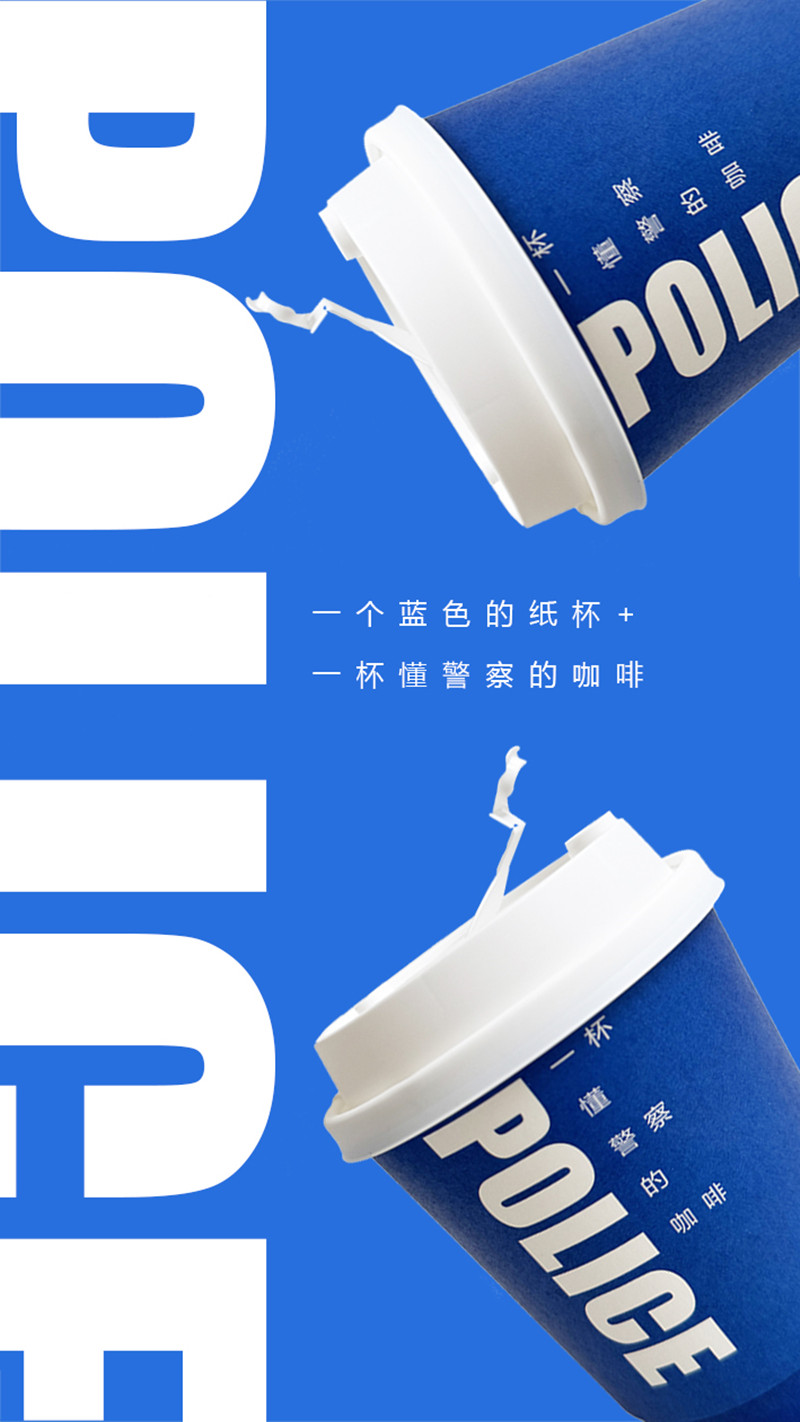 一个蓝色的纸杯POLICE小蓝杯一次性咖啡纸杯“一杯懂警察的咖啡”(一套12个)