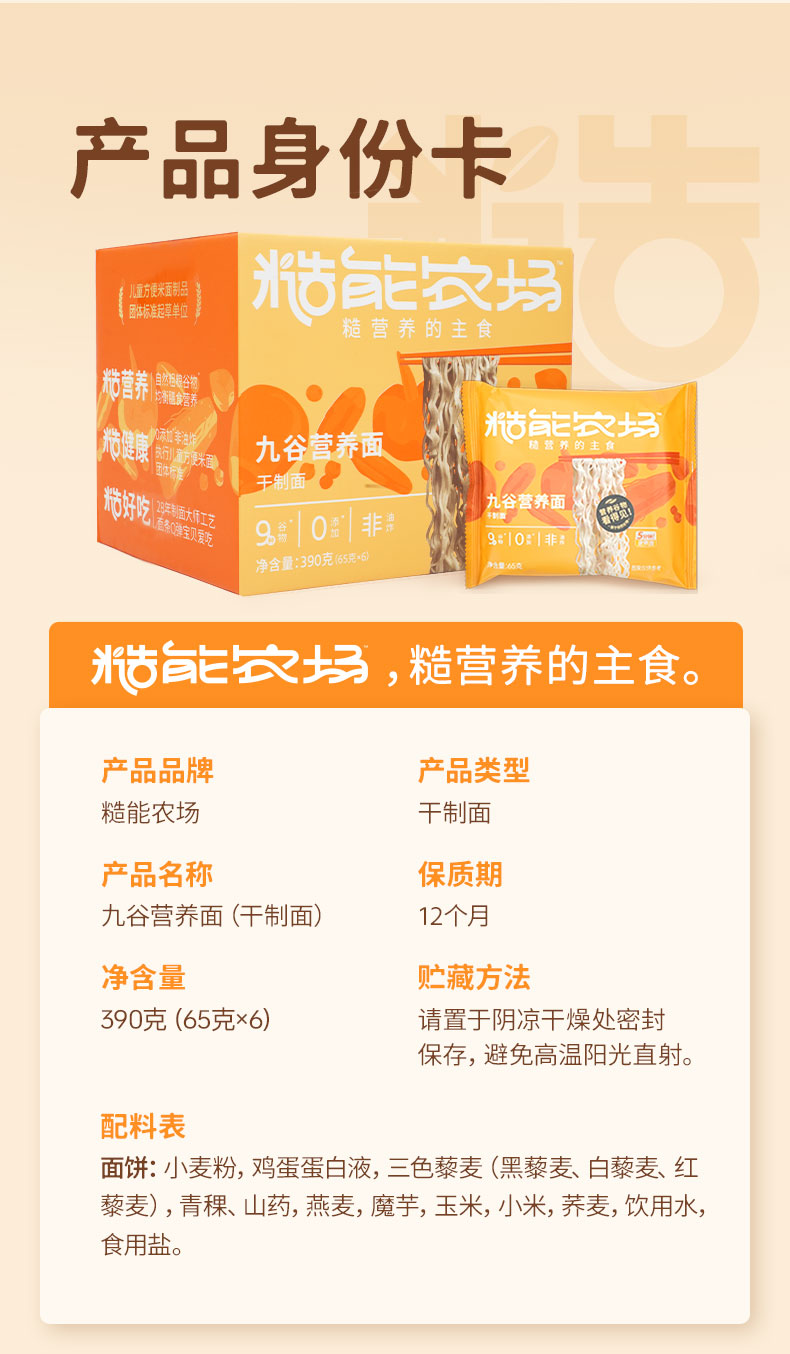 糙能农场 九谷营养面(鸡蛋面饼)65g*6多规格