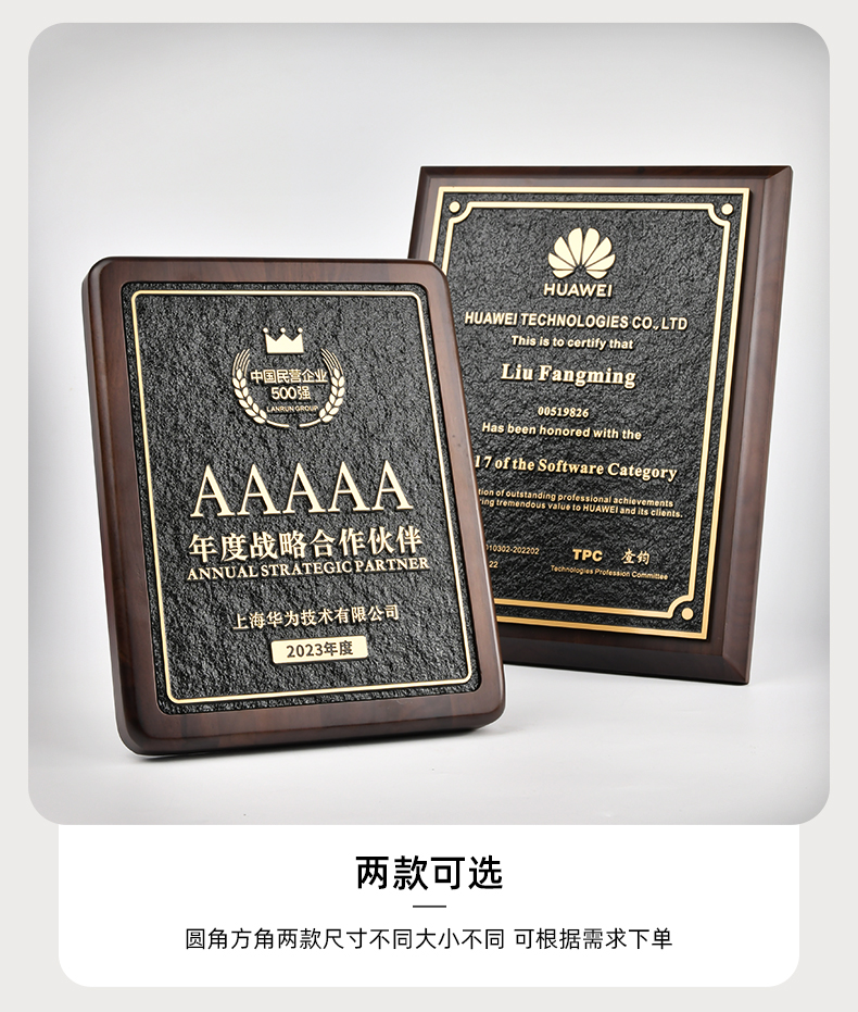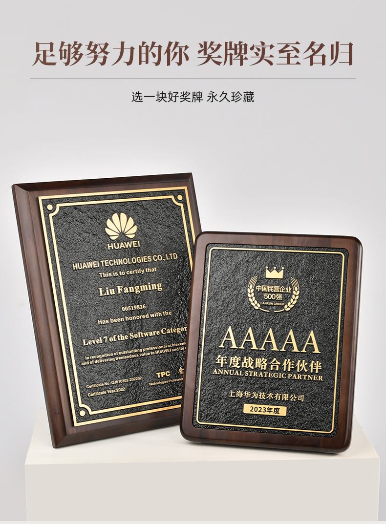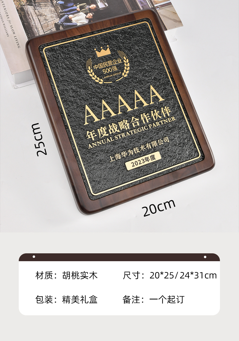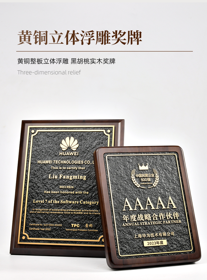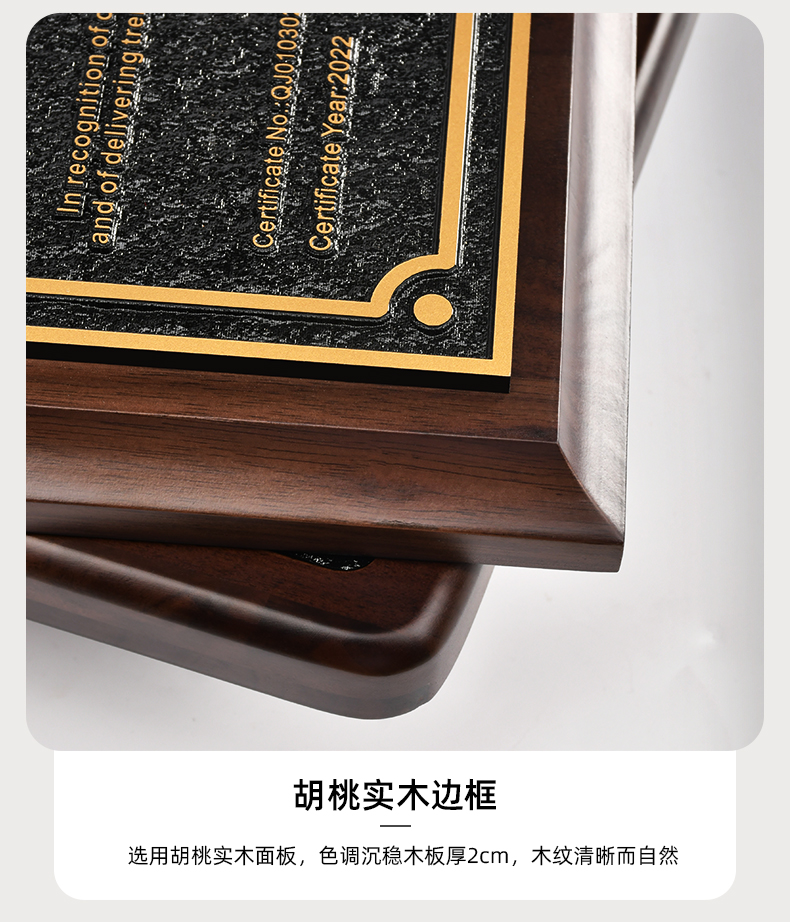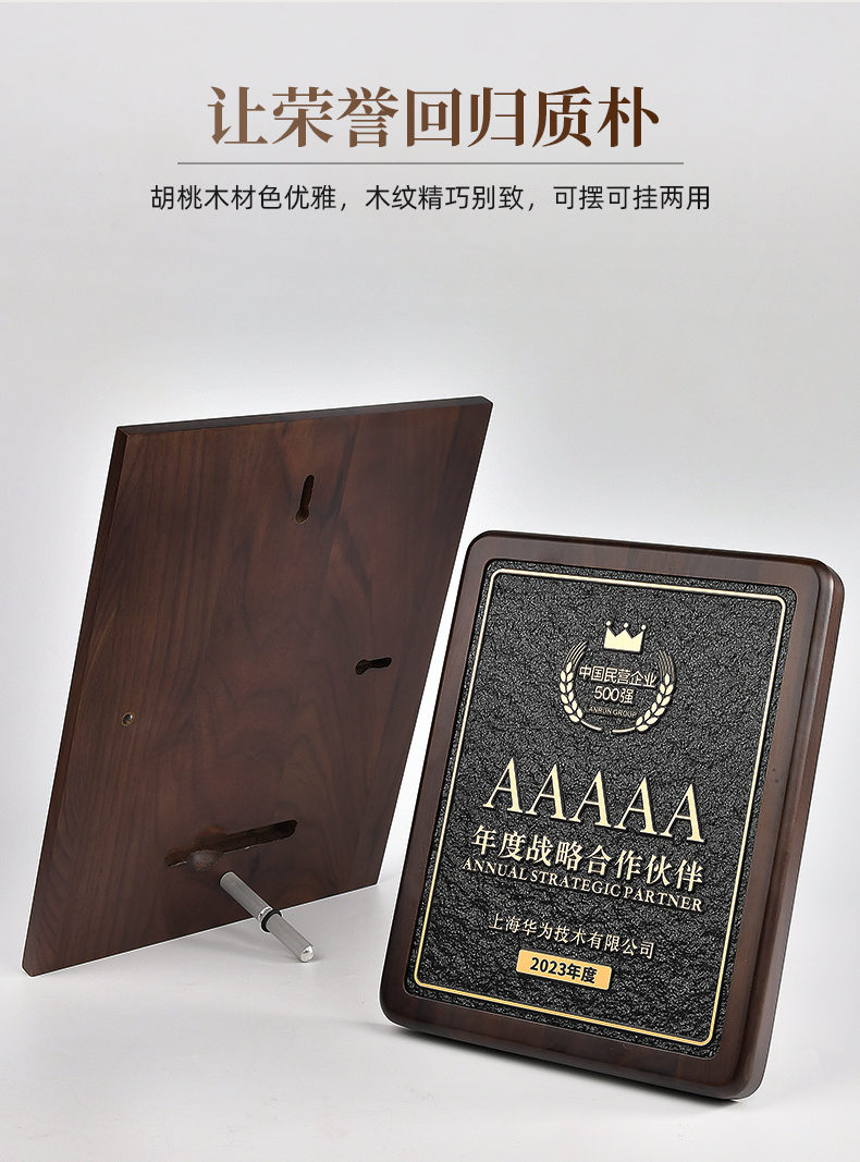 浮雕胡桃实木奖牌定制定做聘书加盟授权牌周年纪念颁奖荣誉牌奖章