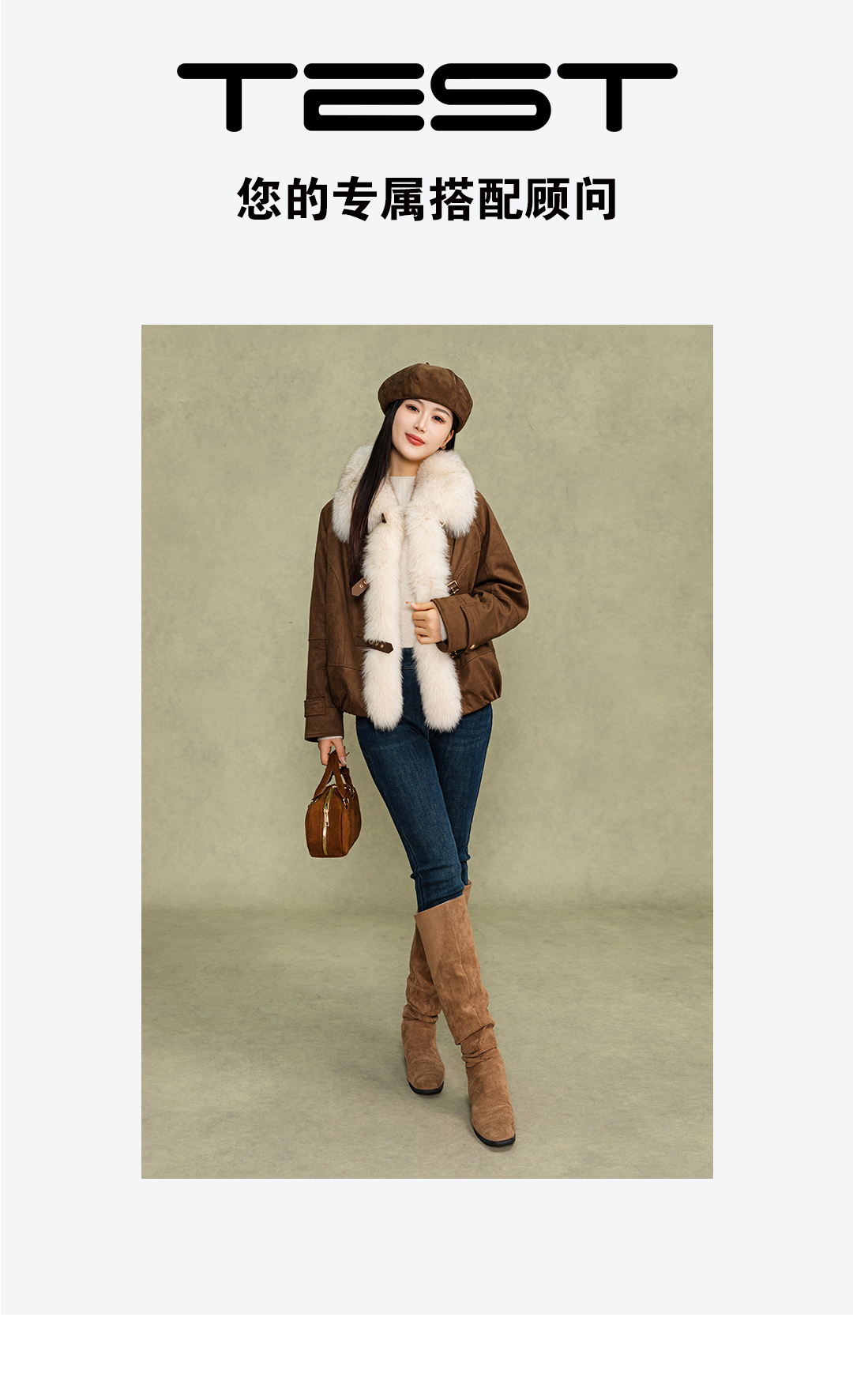 冬上新焦糖棕麂皮大毛领皮草外套2254133 商品图2