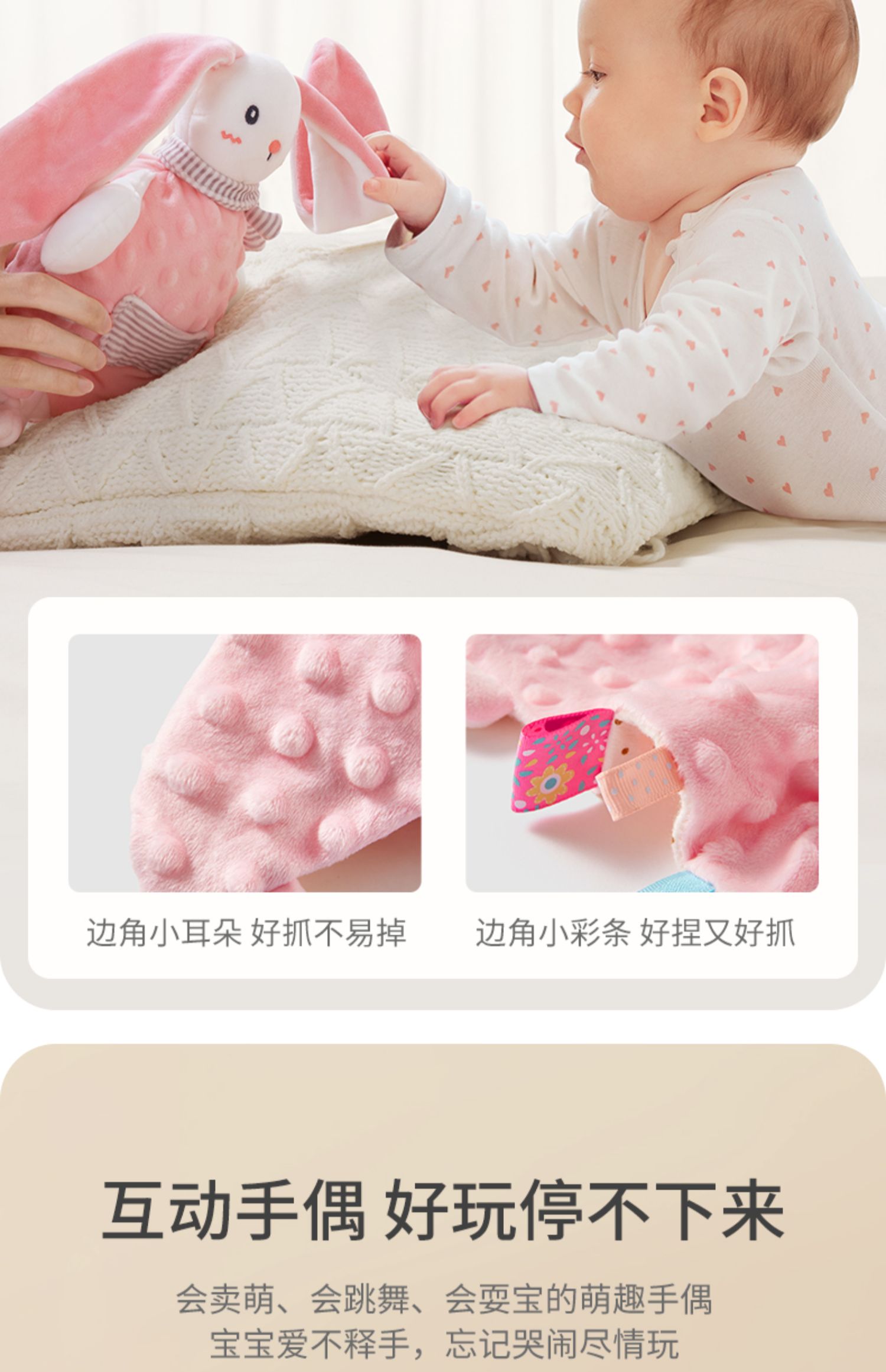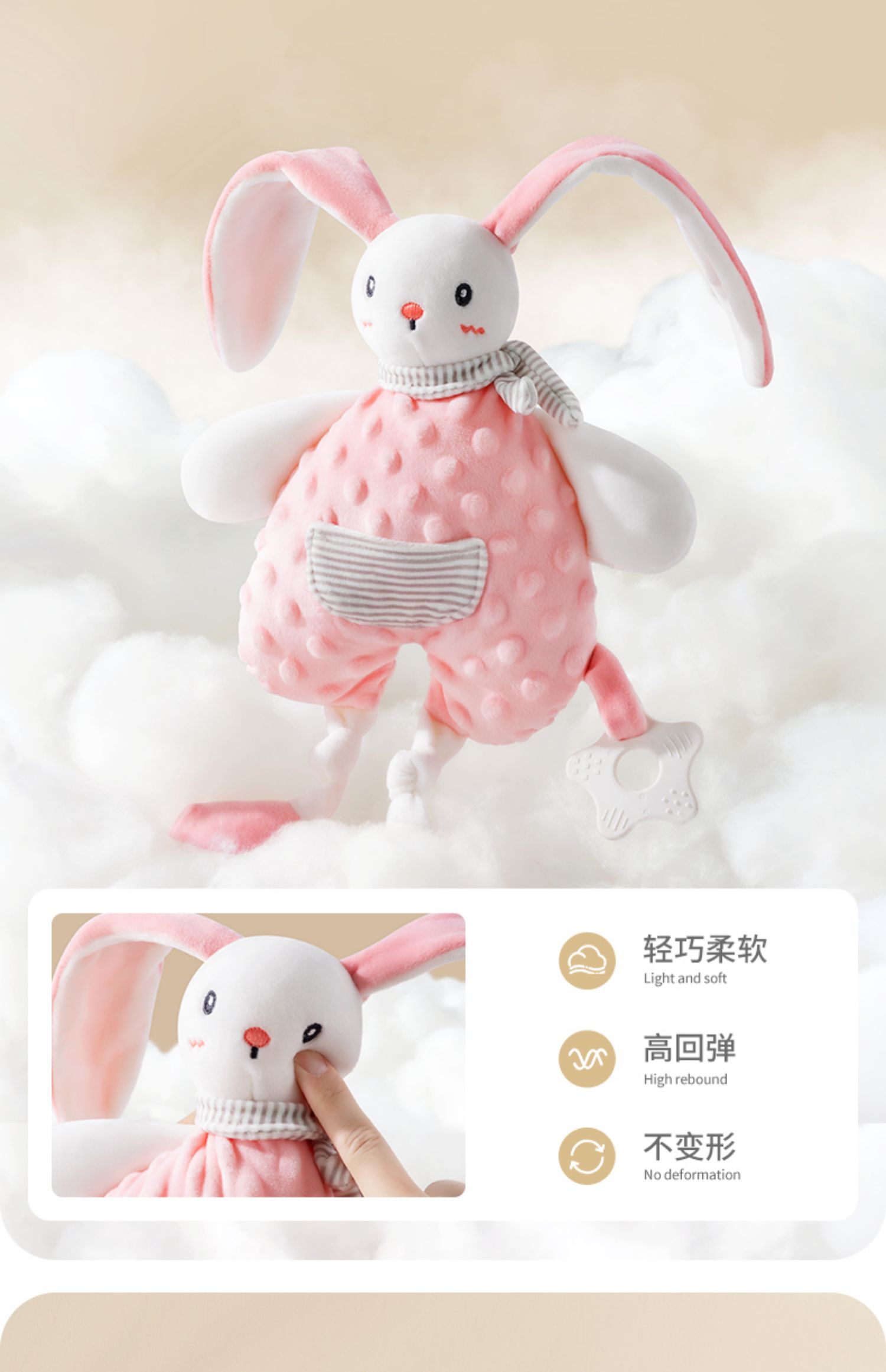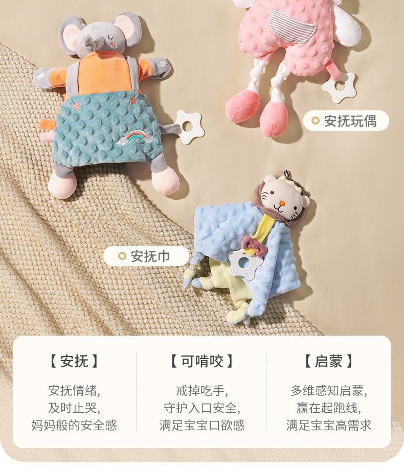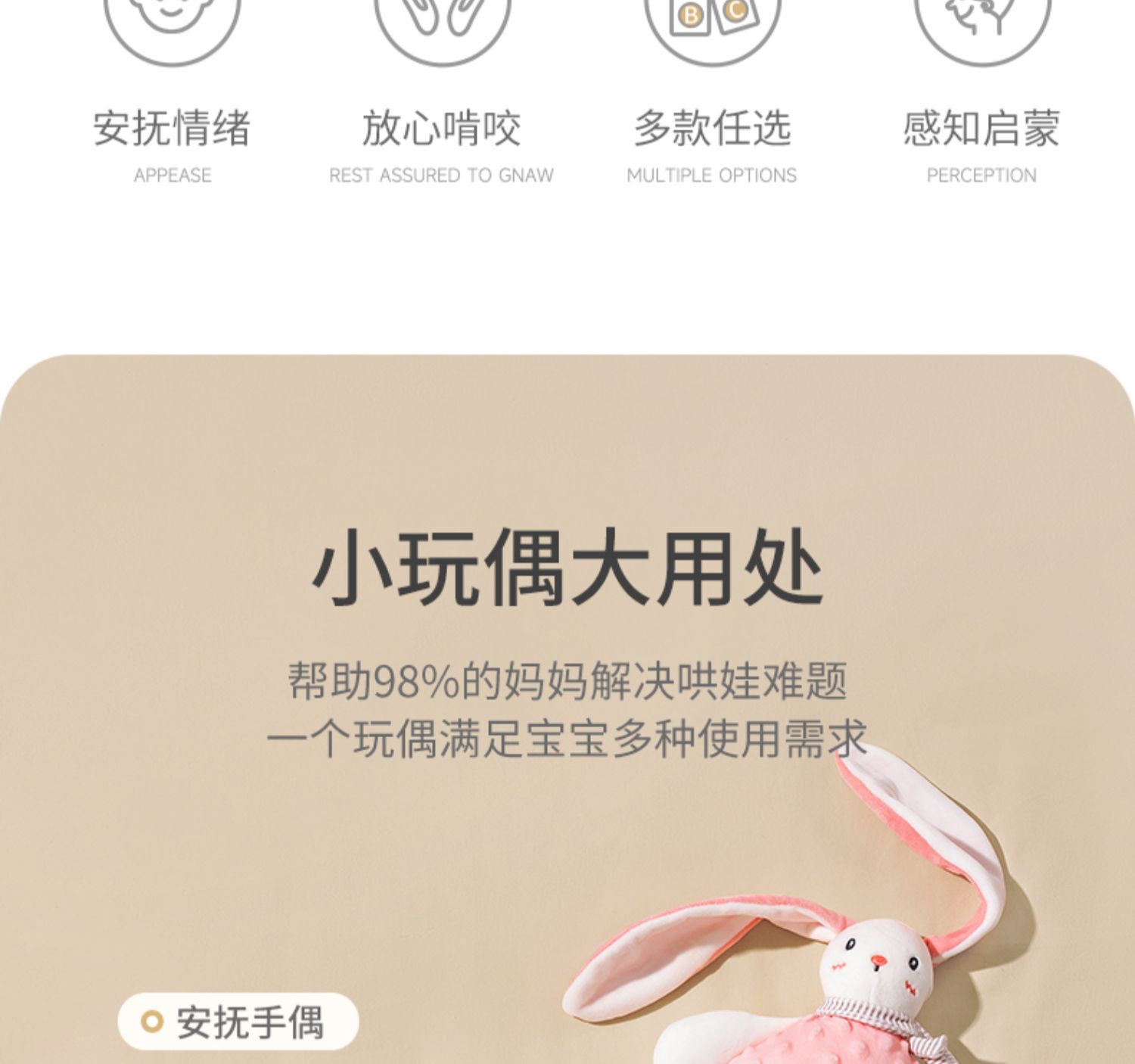 贝肽斯婴儿安抚巾可入口玩偶安抚宝宝睡眠哄睡神器可啃咬兔子手偶