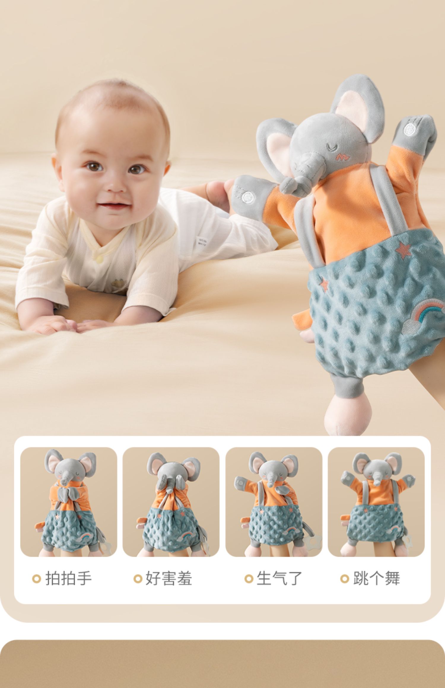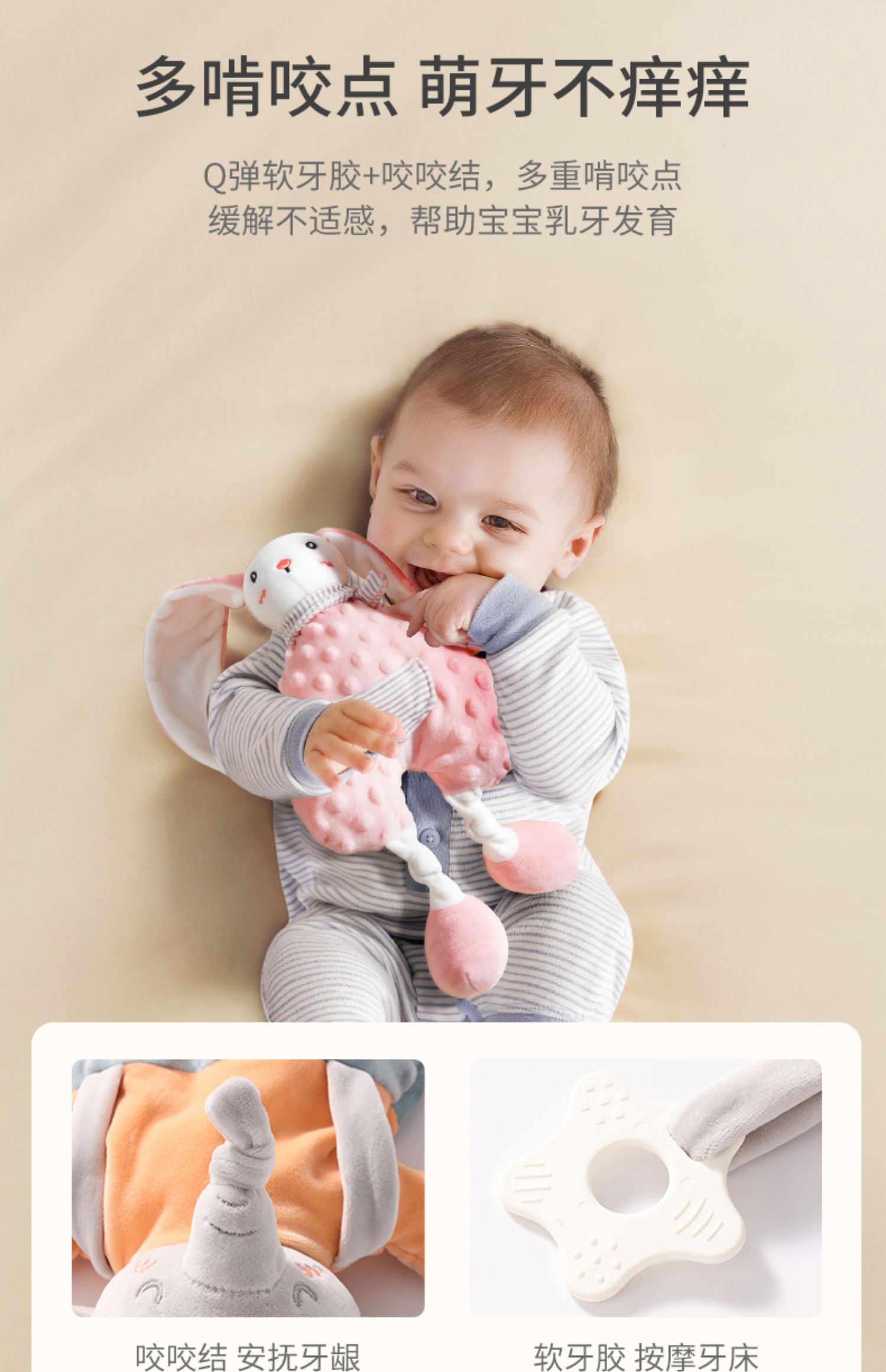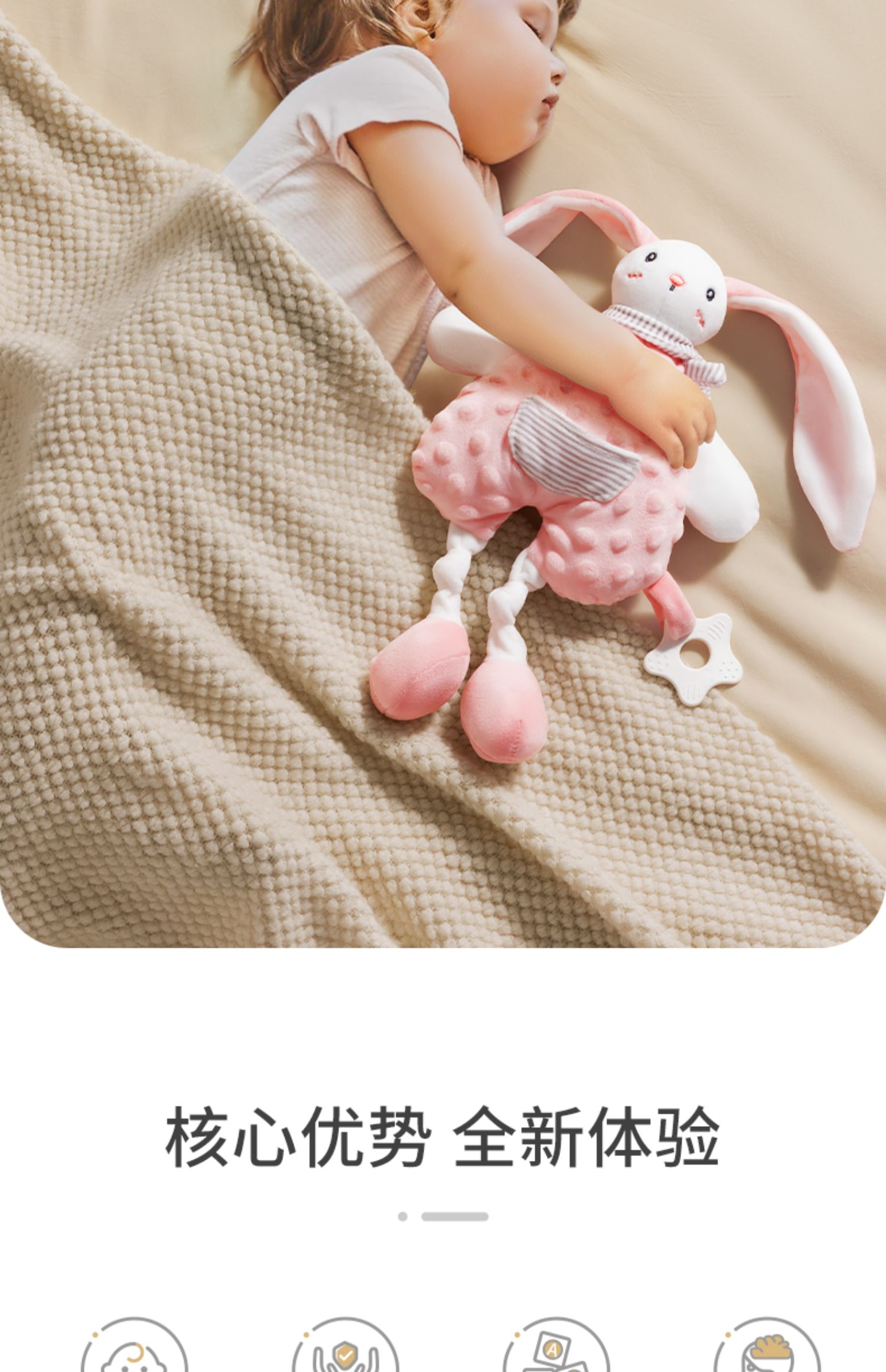 贝肽斯婴儿安抚巾可入口玩偶安抚宝宝睡眠哄睡神器可啃咬兔子手偶