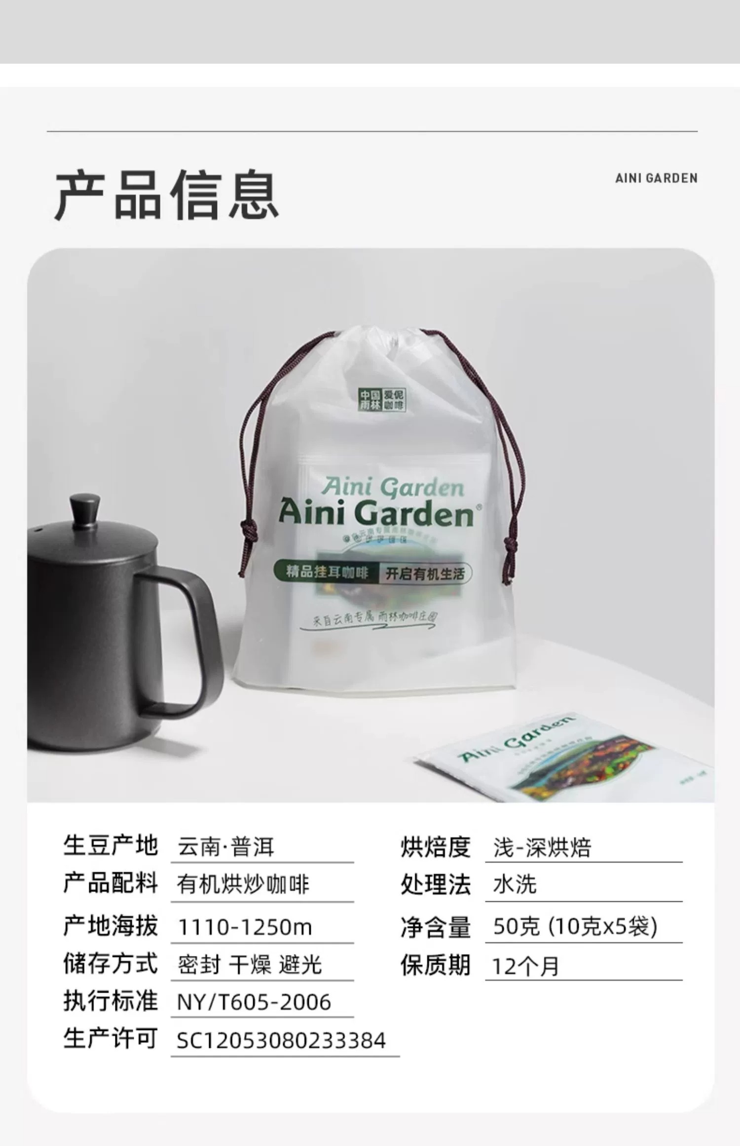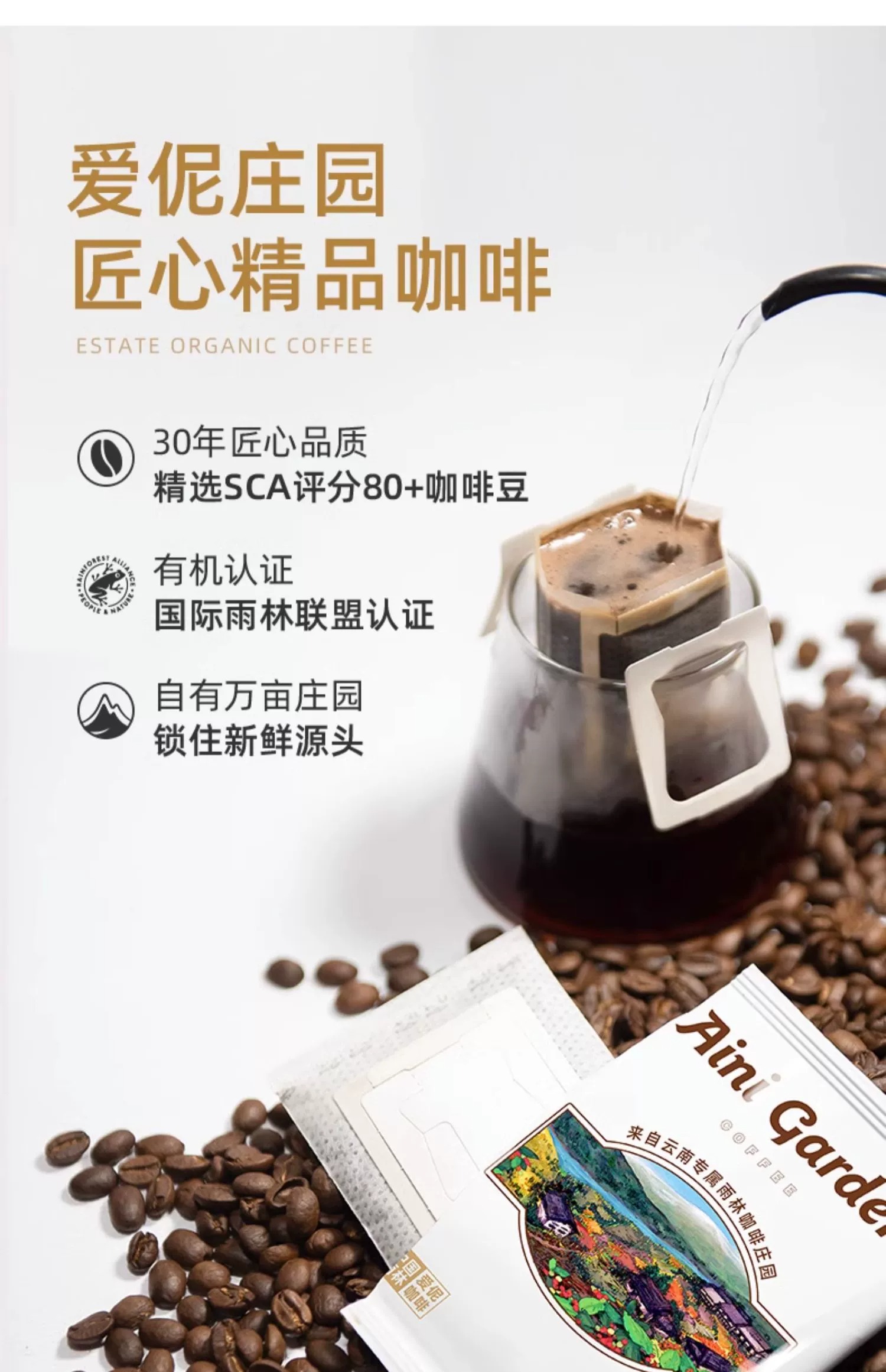 爱伲庄园 有机挂耳咖啡 5袋体验装 手冲云南小粒