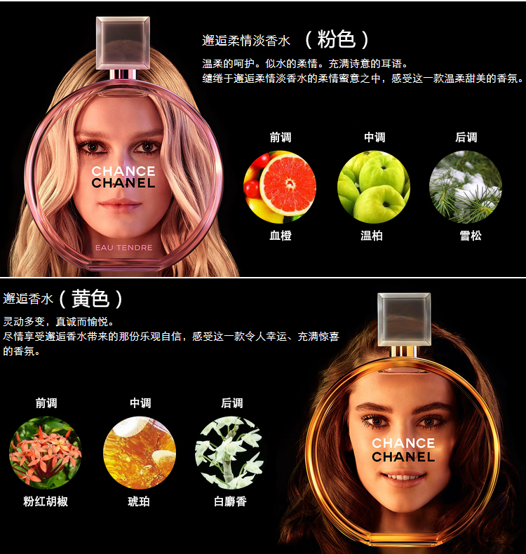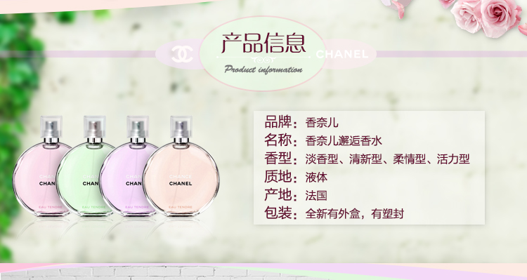 chanel香奈儿士邂逅香水 coco淡香粉色邂逅绿黄橙粉色香水50/ml
