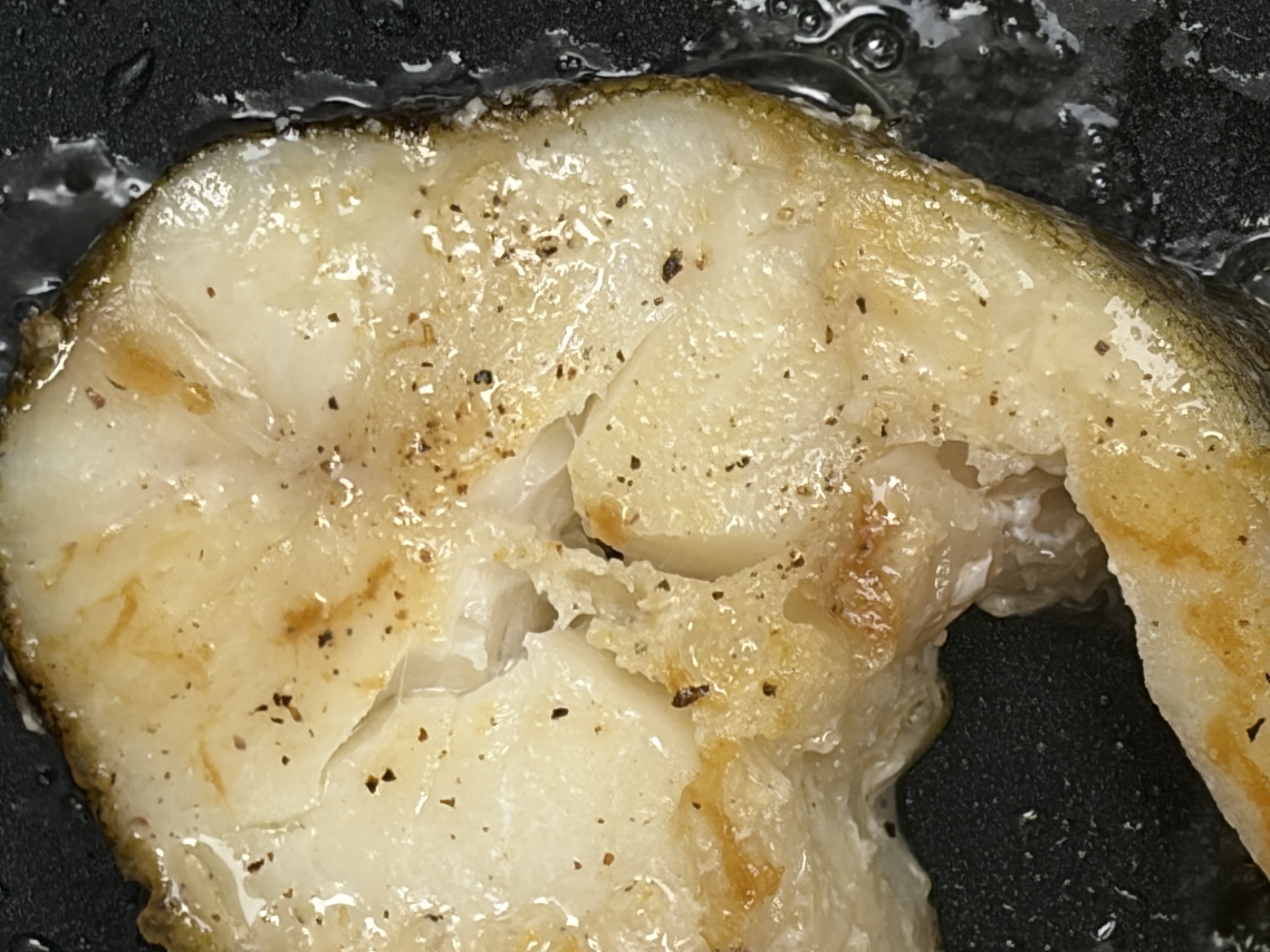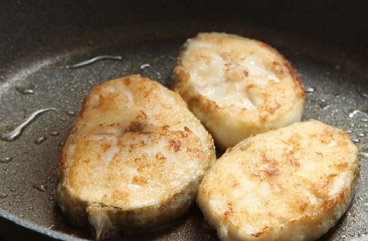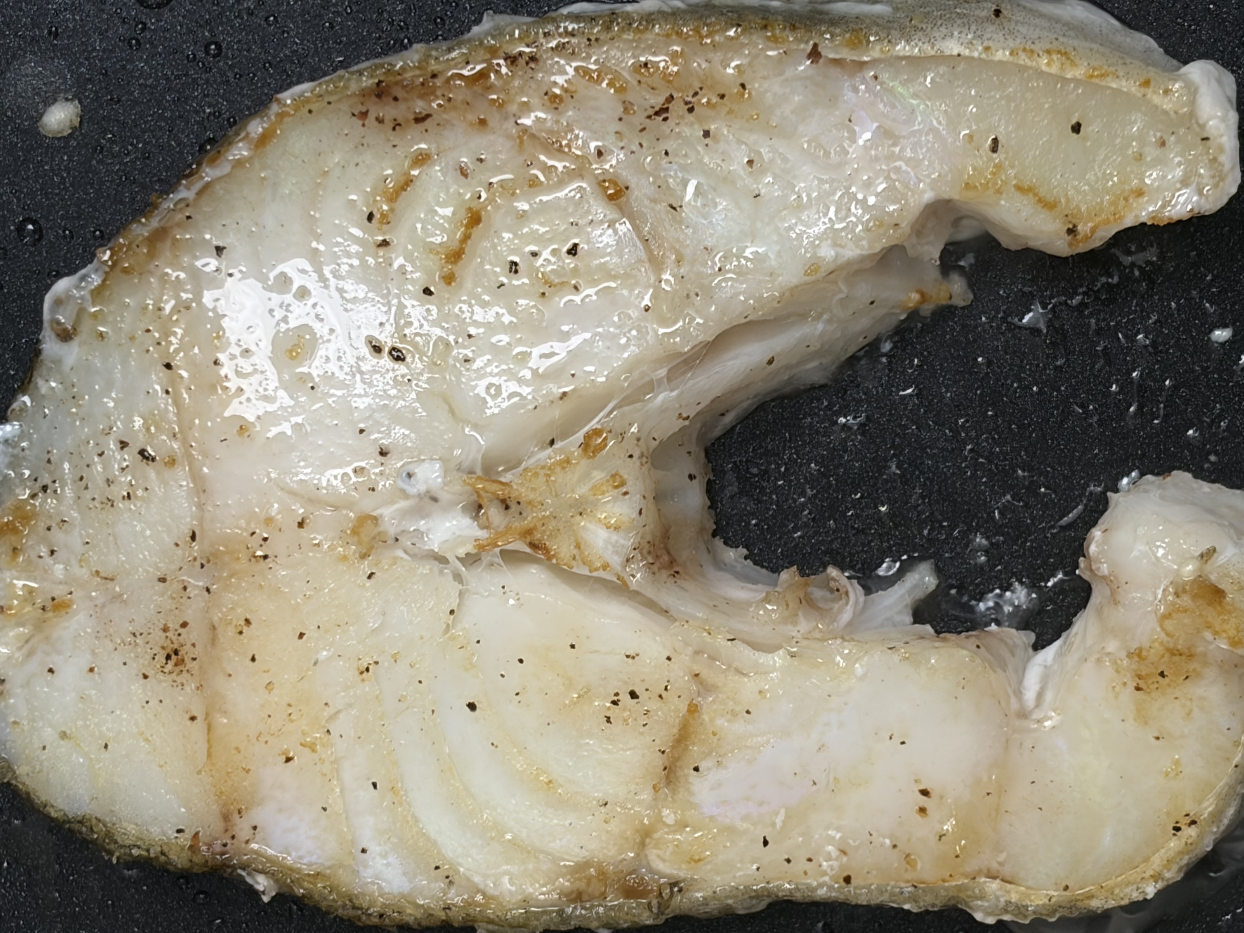 平底锅烧热将橄榄油烧至5成熟,将鳕鱼两面煎至金黄色;