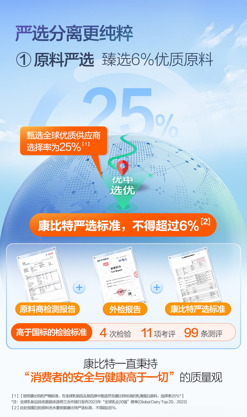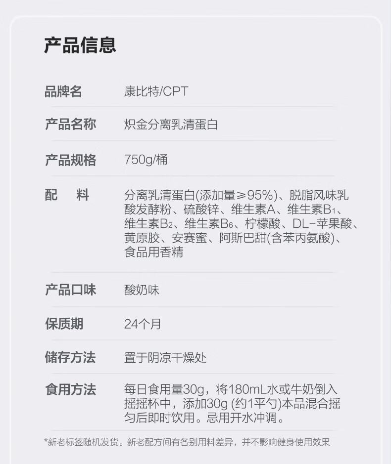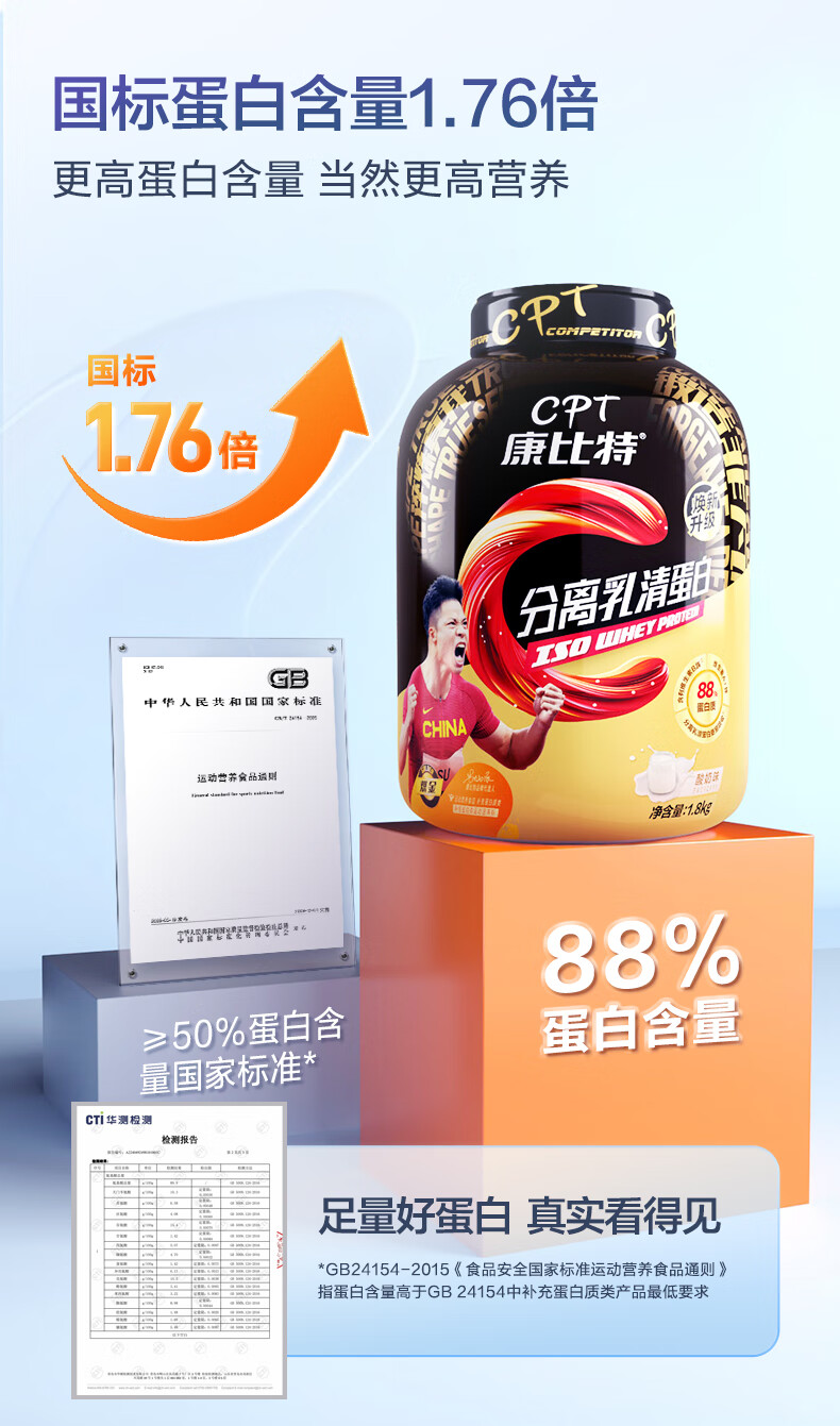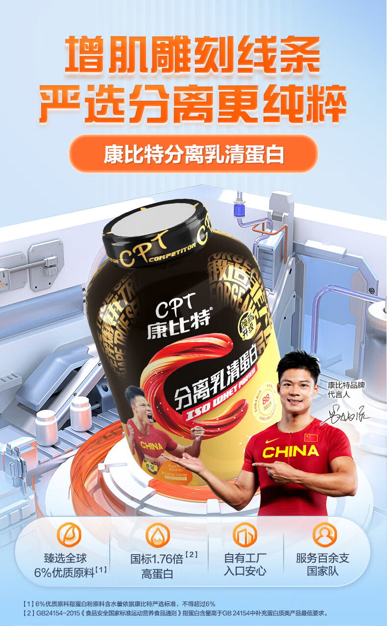 康比特分离乳清蛋白 增肌粉高蛋白低脂低乳糖健身人士750g/罐