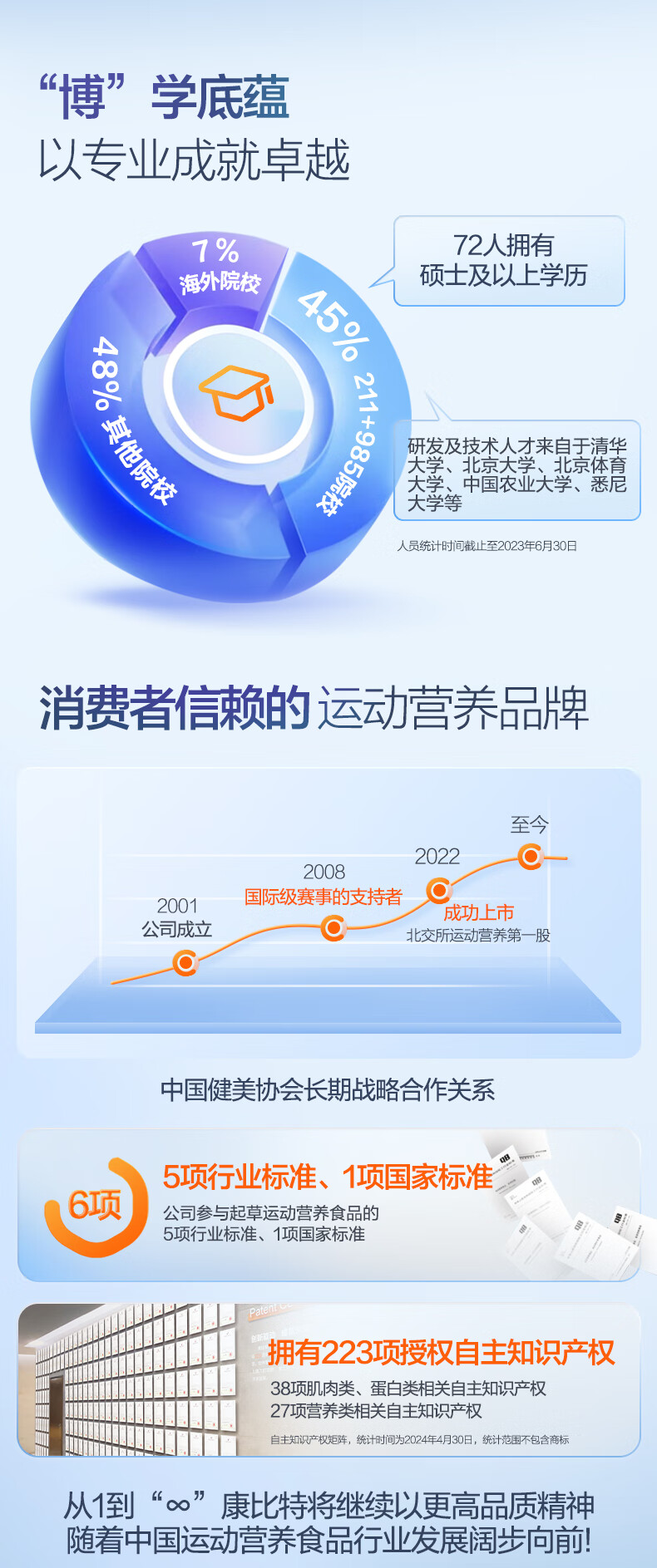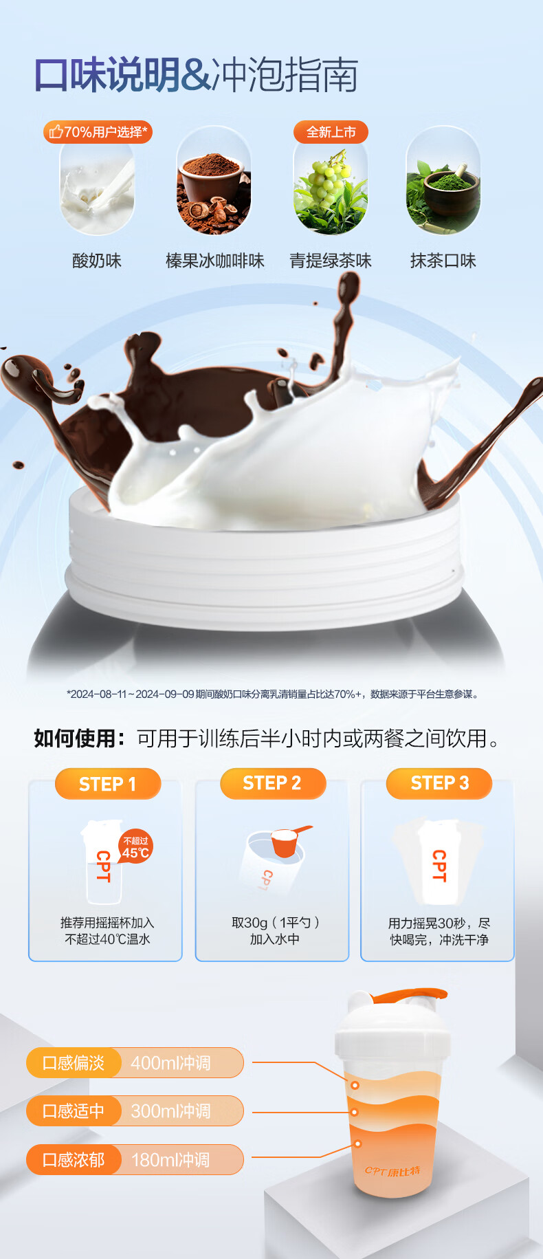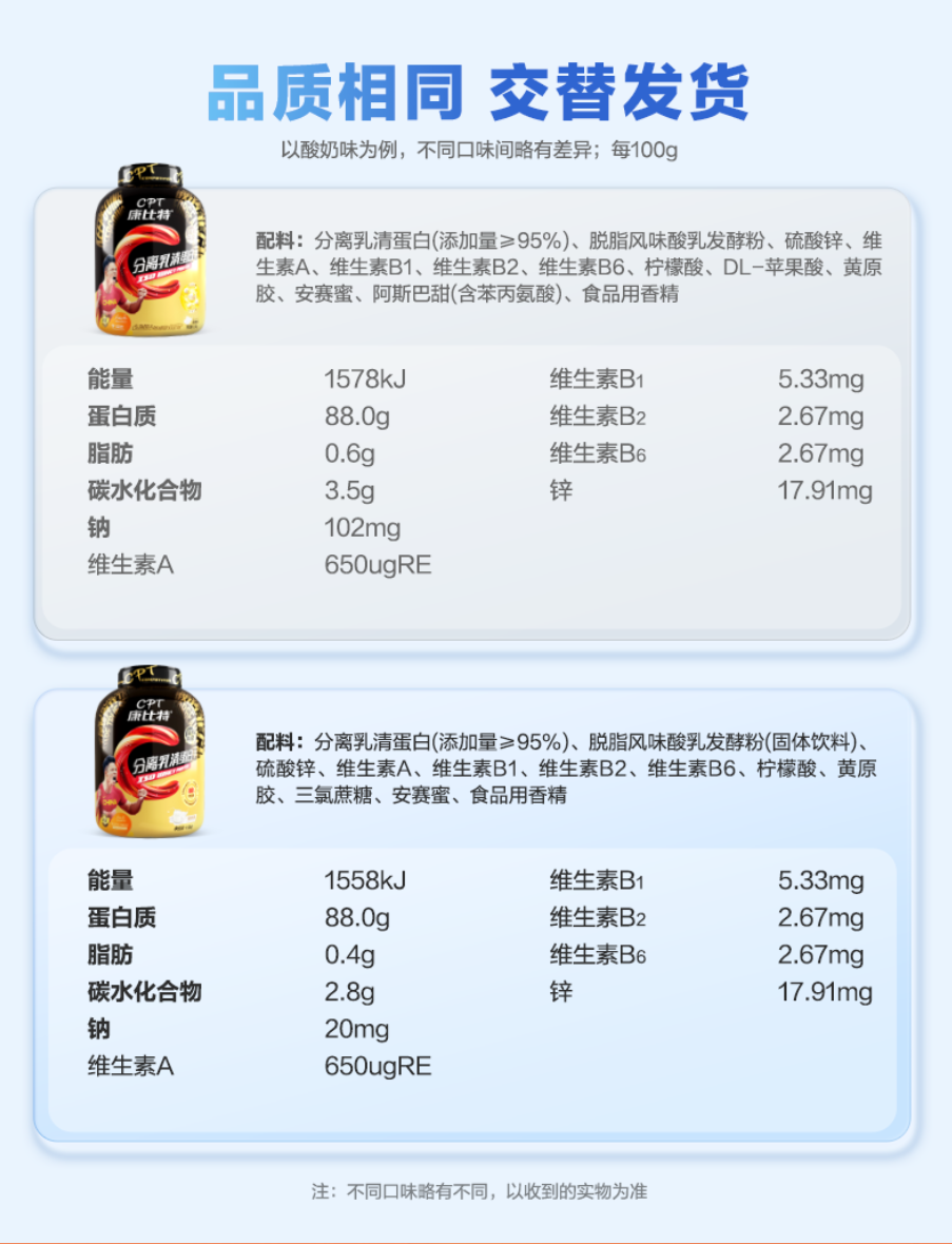 康比特分离乳清蛋白 增肌粉高蛋白低脂低乳糖健身人士750g/罐