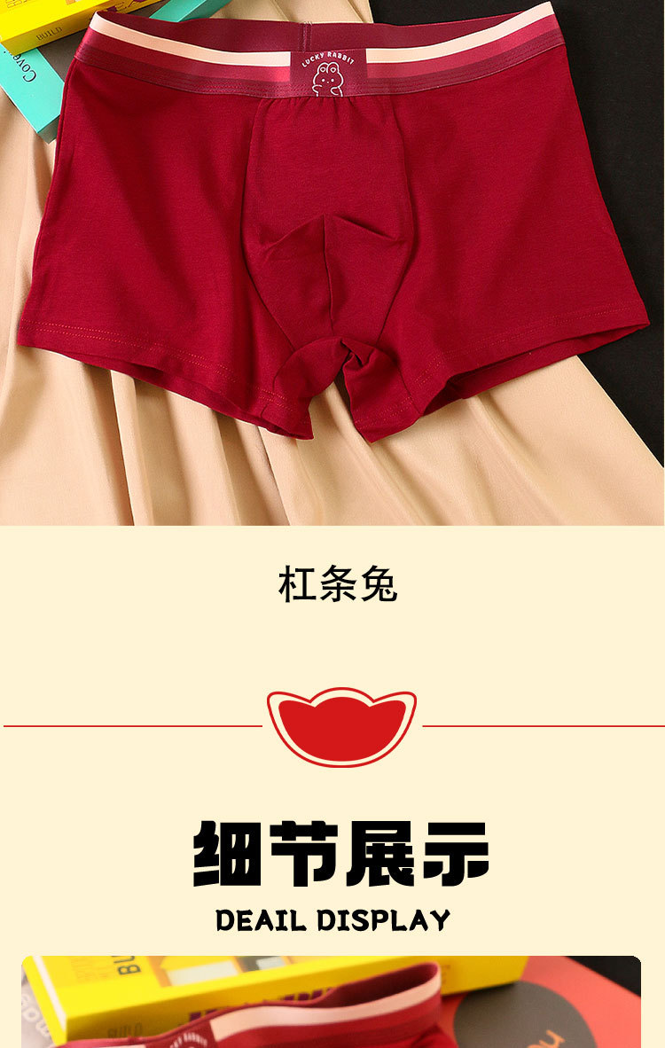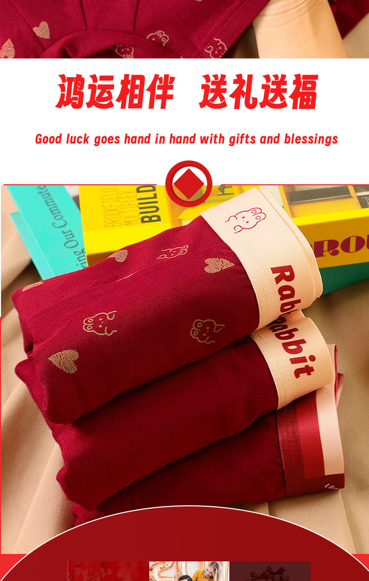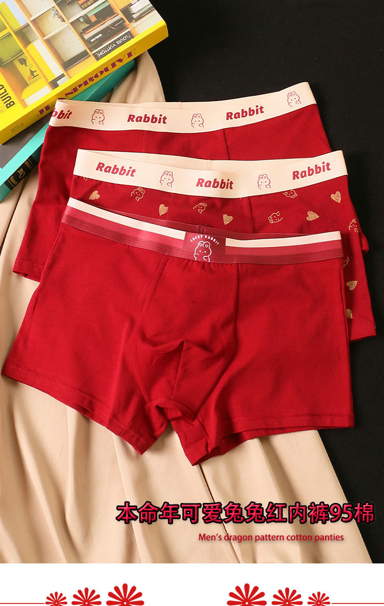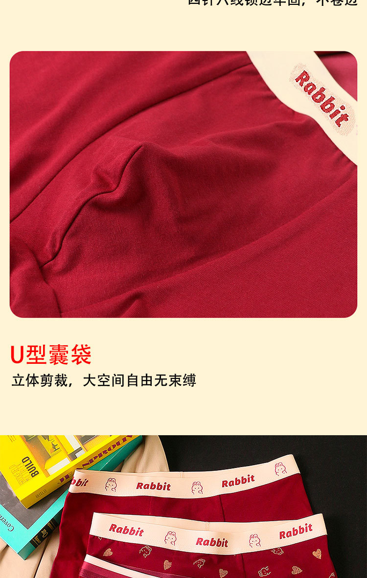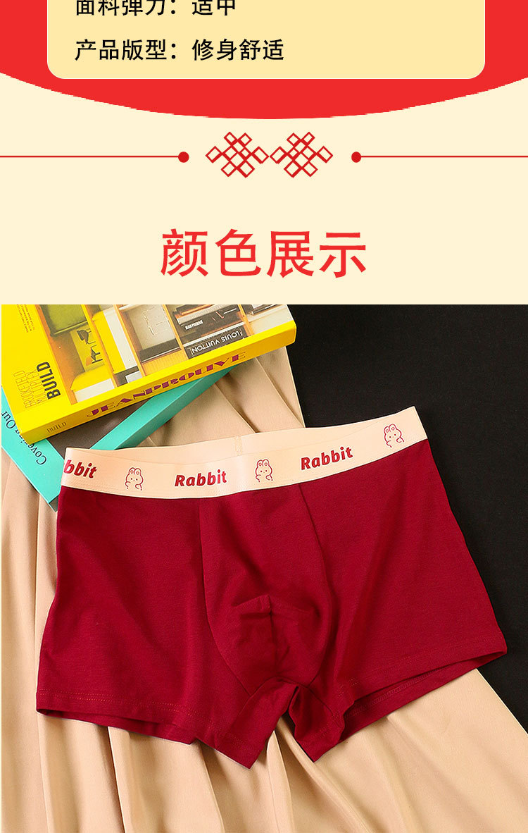 礼盒装内裤【男士红色四角裤】纯棉平角短裤衩 可爱兔子印花 结婚内裤本命年