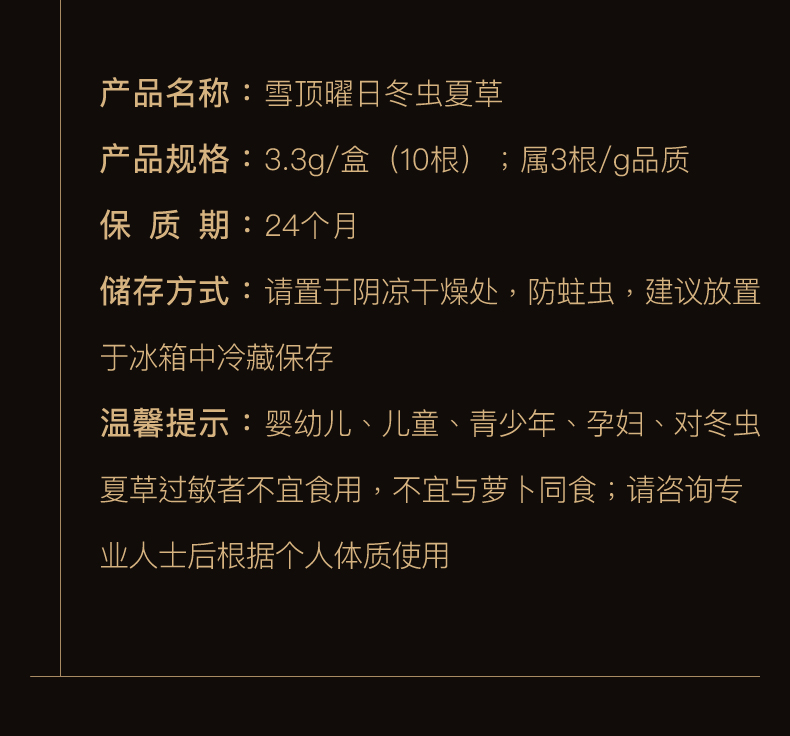 羽心堂 雪顶曜日 冬虫夏草 3.3g/盒