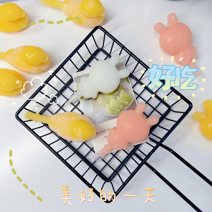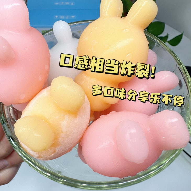 挖到宝!没想到这么好吃啊啊!! 常温下就是3种口味的果冻! 芒果味打开一股芒果清香!吃起来清甜的!冰了后就是芒果沙冰的感觉!铁汁们都给我冲! 兔兔、鸭鸭、造型怎么这么可爱啊! 被图片就能种草的小零食,的确值得