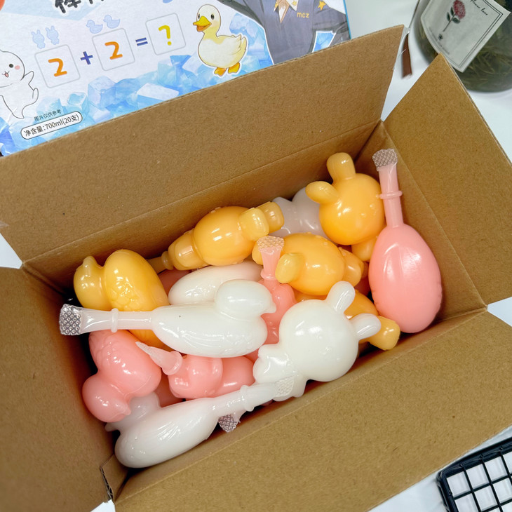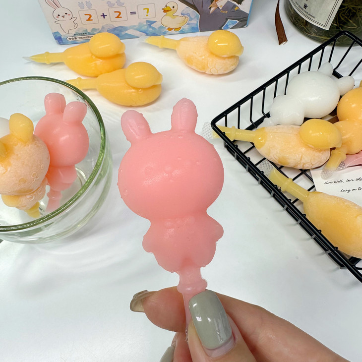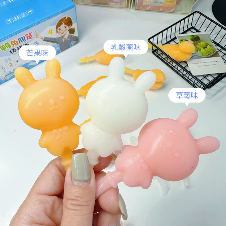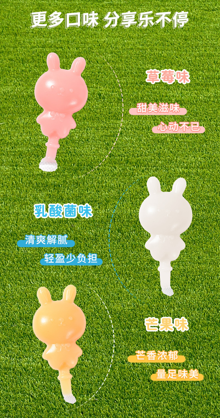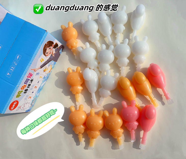 这个,来看,兔兔鸭鸭真有趣!糯糯唧唧,晶莹透亮 敲黑板!敲黑板!敲黑板!敲黑板!边吃边玩更有趣~~ 每根独立包装,方便携带,百变吃法,花样享受~ 草莓味甜美滋味,心动不已 乳酸菌味❄清爽解腻,轻盈少负担 芒果味🍹芒香浓郁,量足味美
