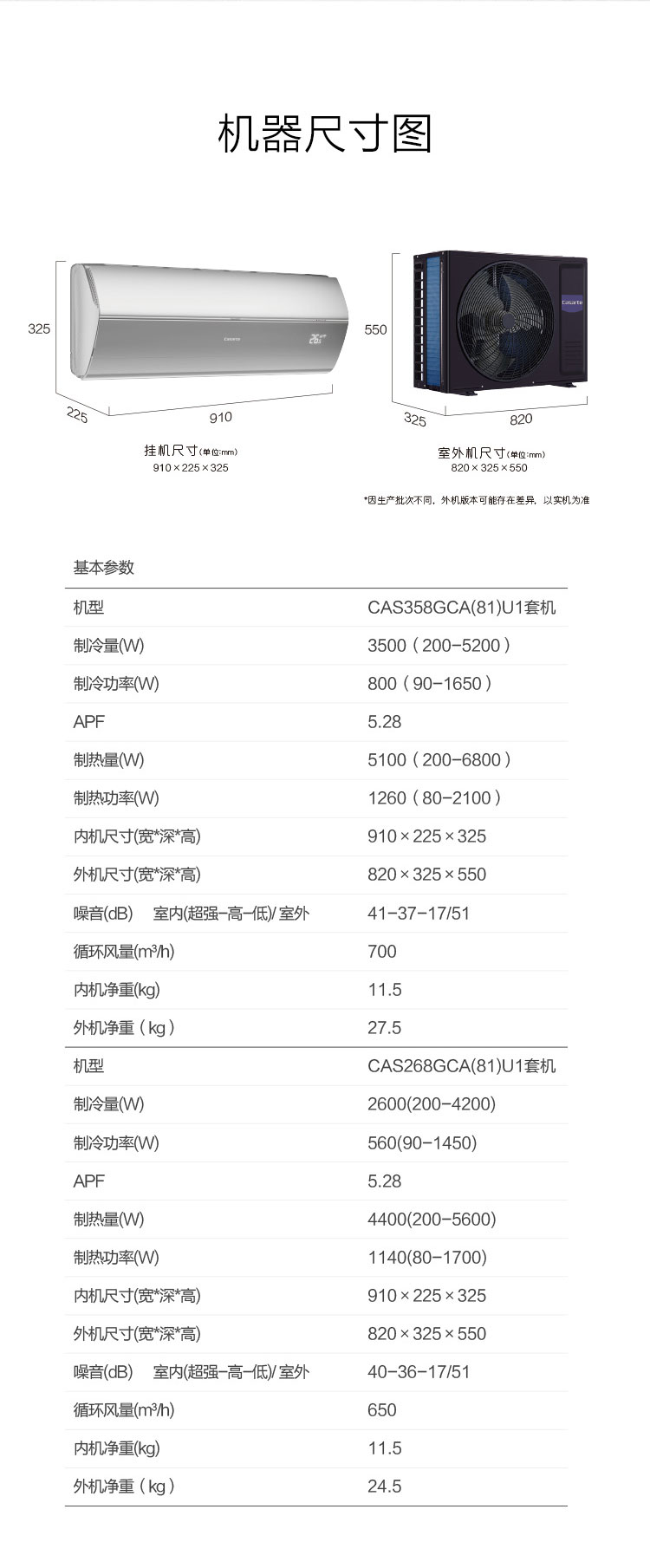 【下单前咨询库存情况】卡萨帝空调家用1.5/1匹壁挂机银河系列新一级能效CAS358GCA(81)U1/CAS268GCA(81)U1