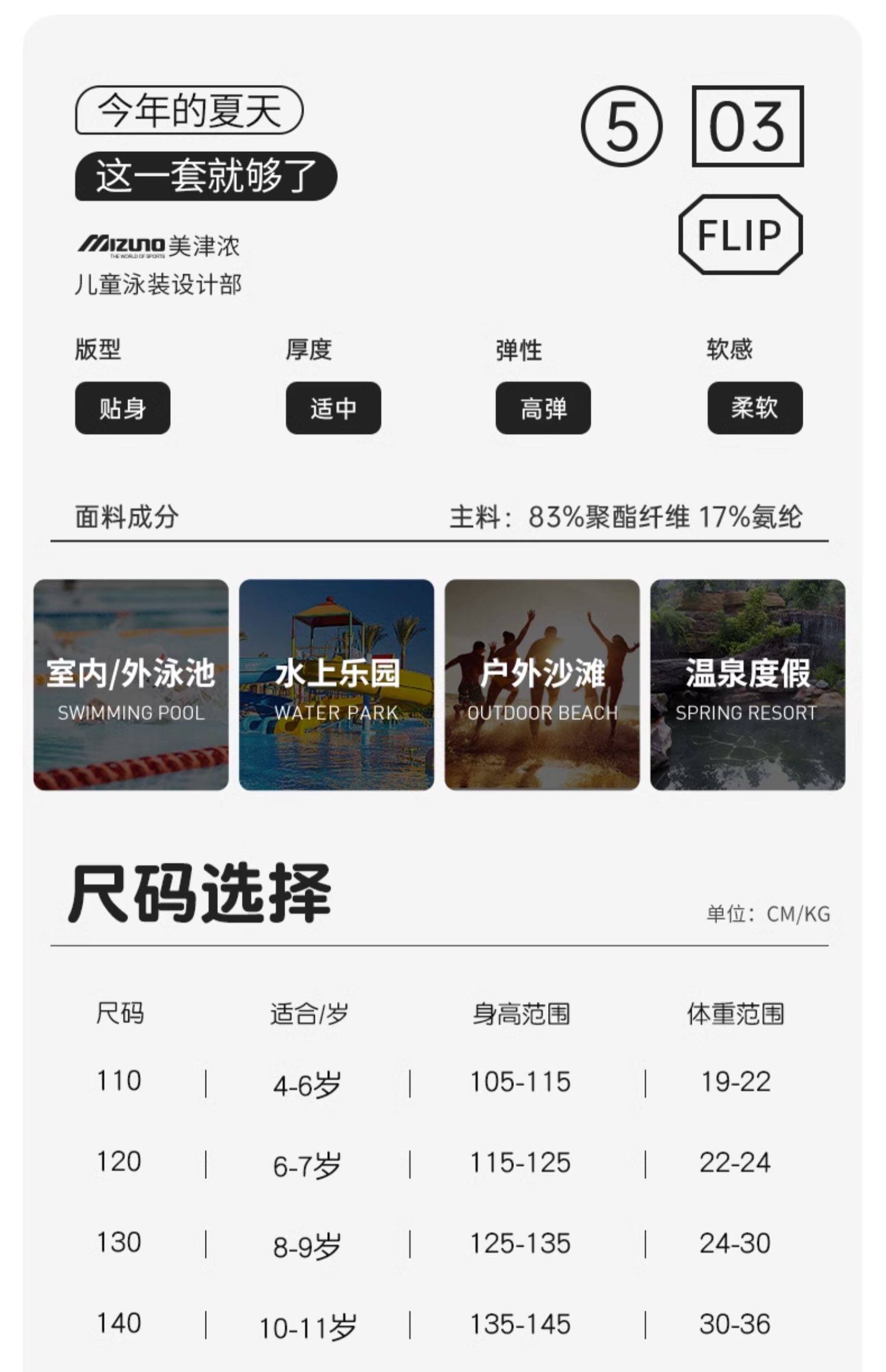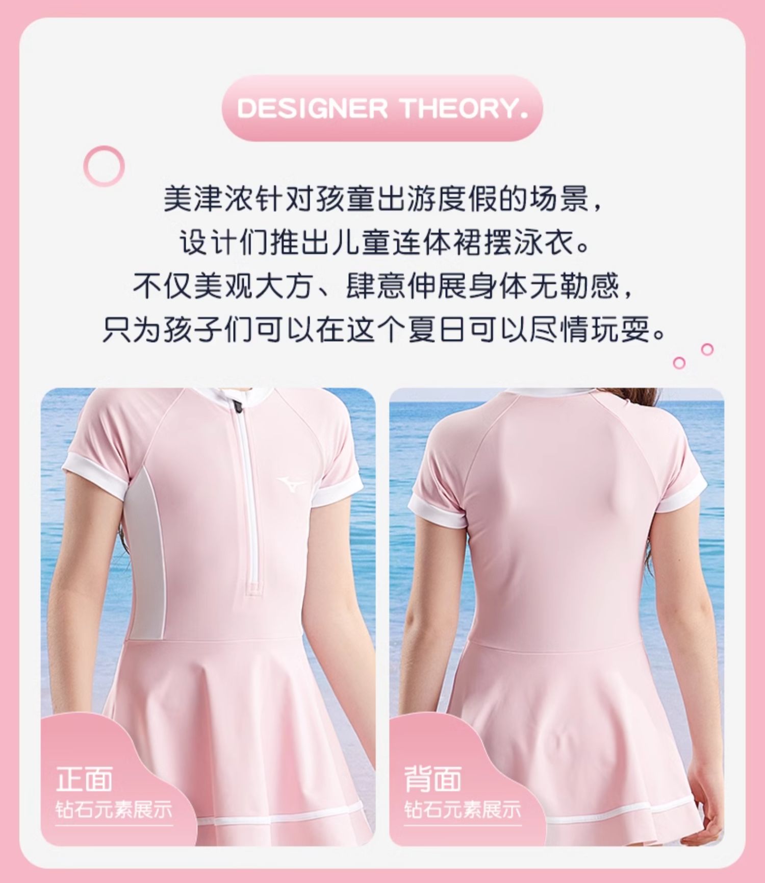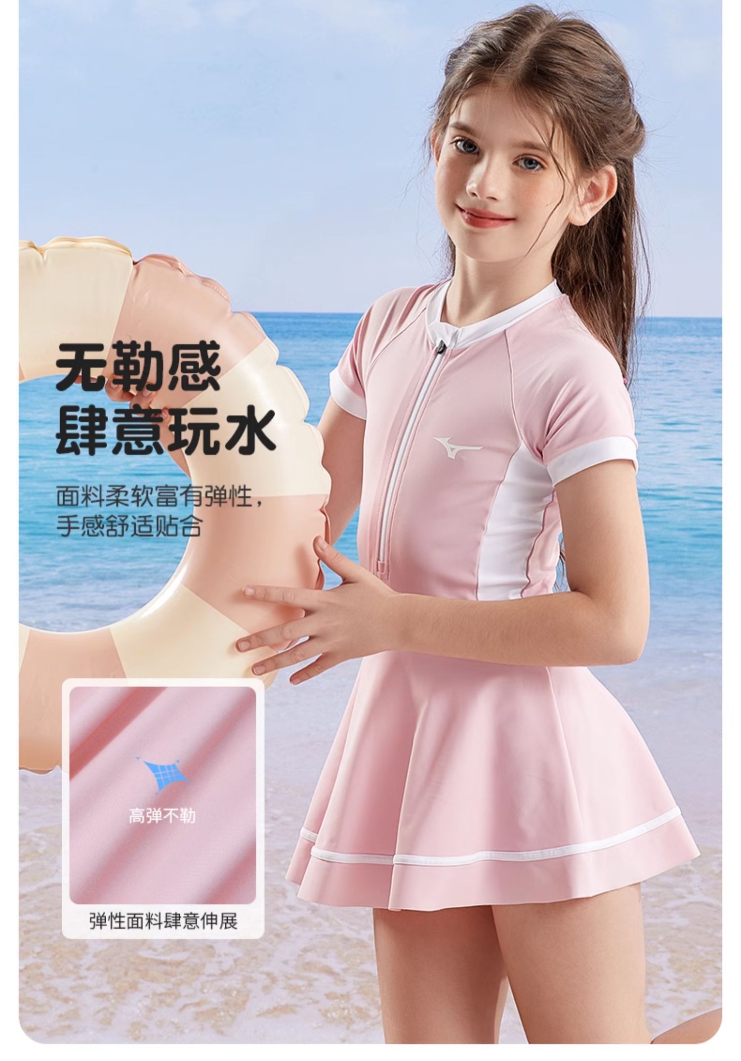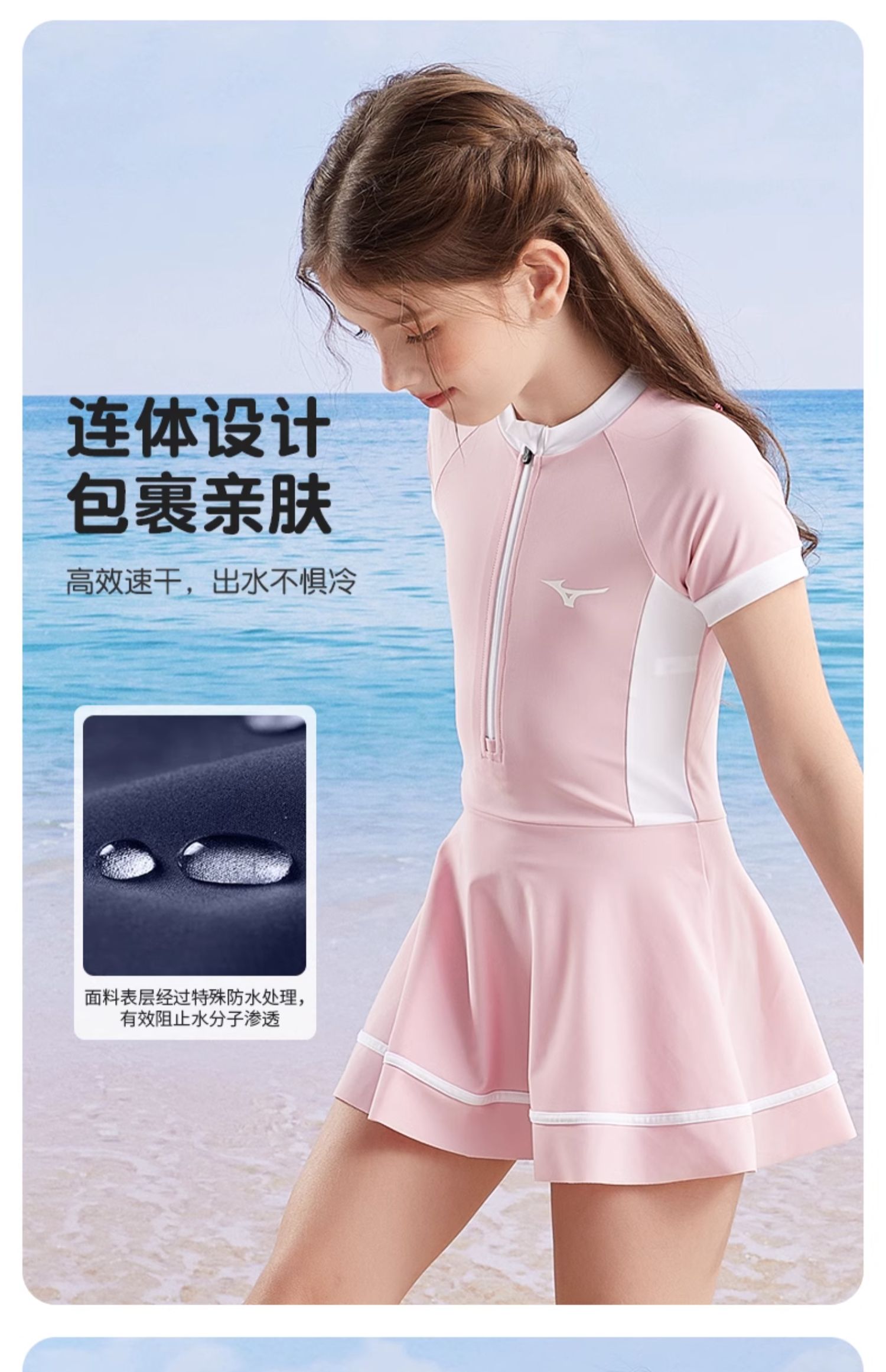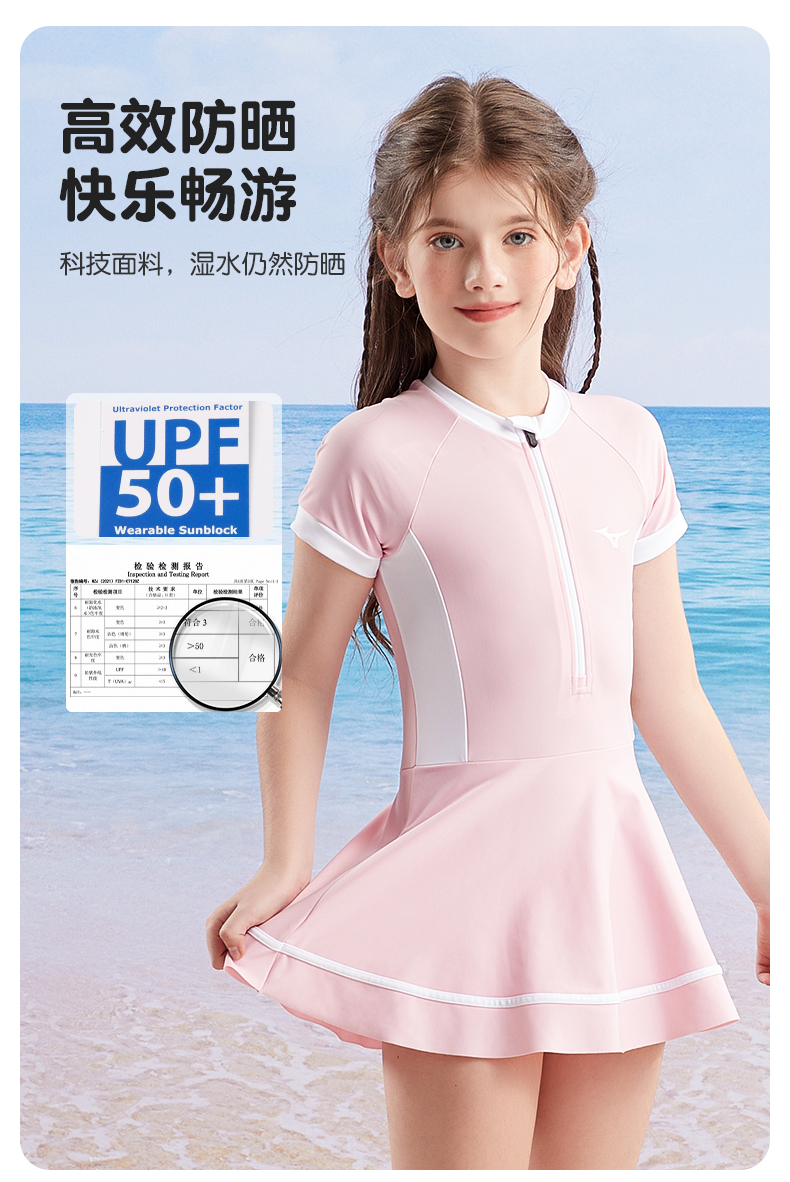 【美津浓】儿童连体裙摆可爱公主泳衣N2CA3407