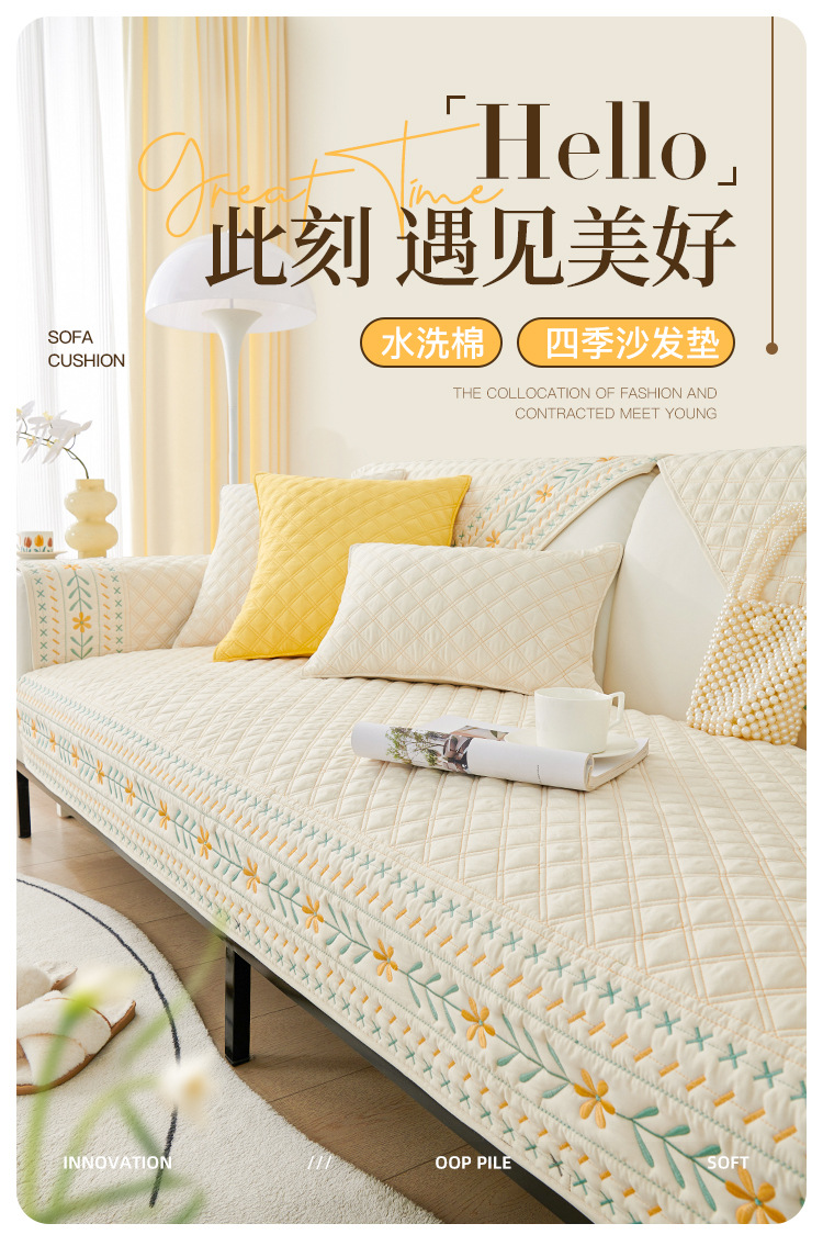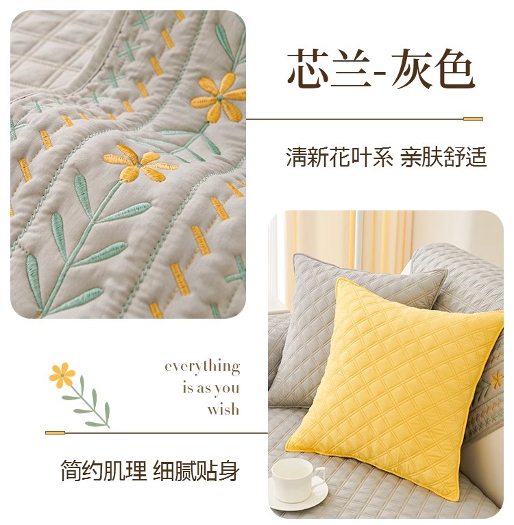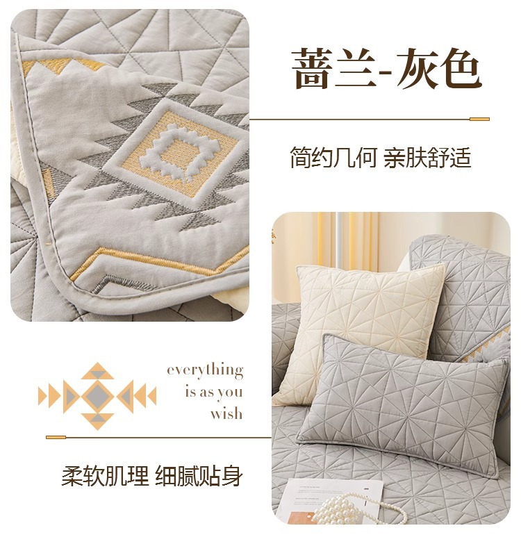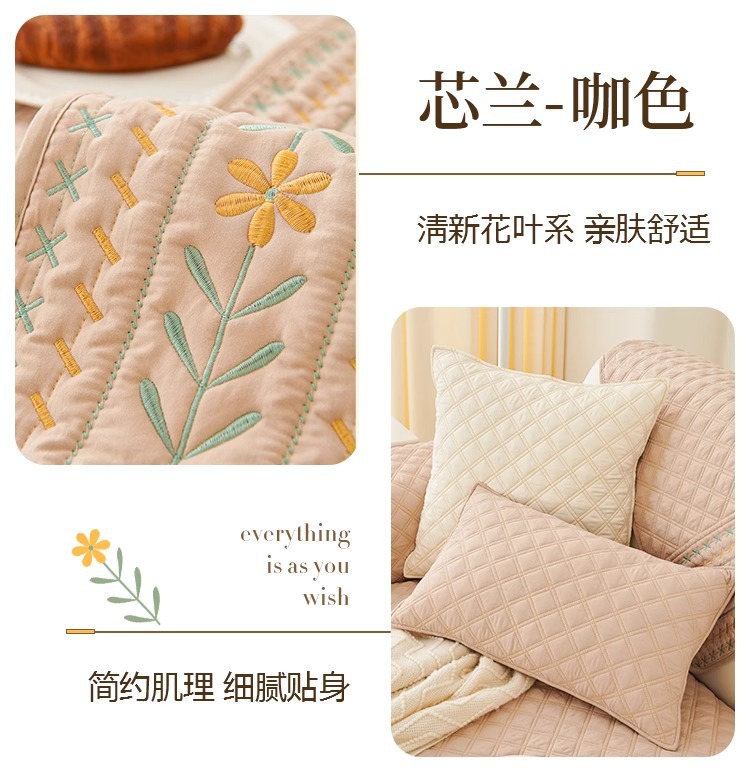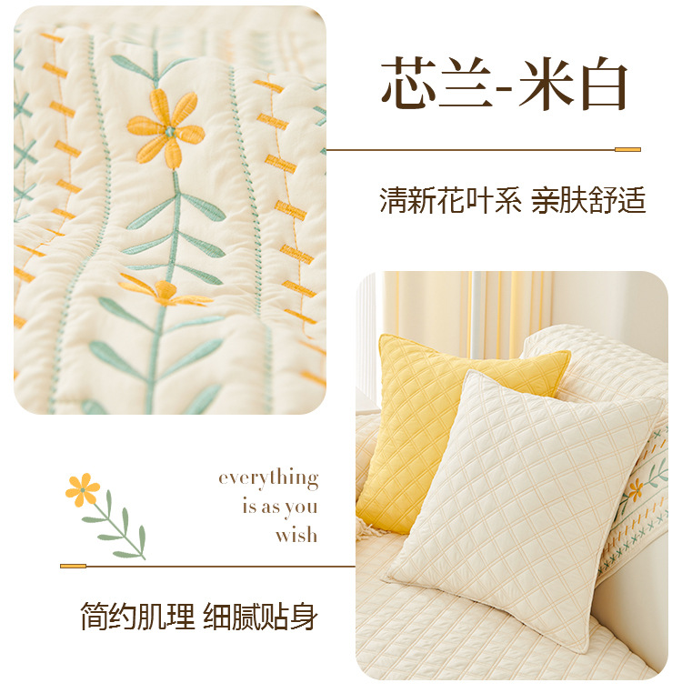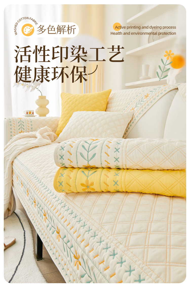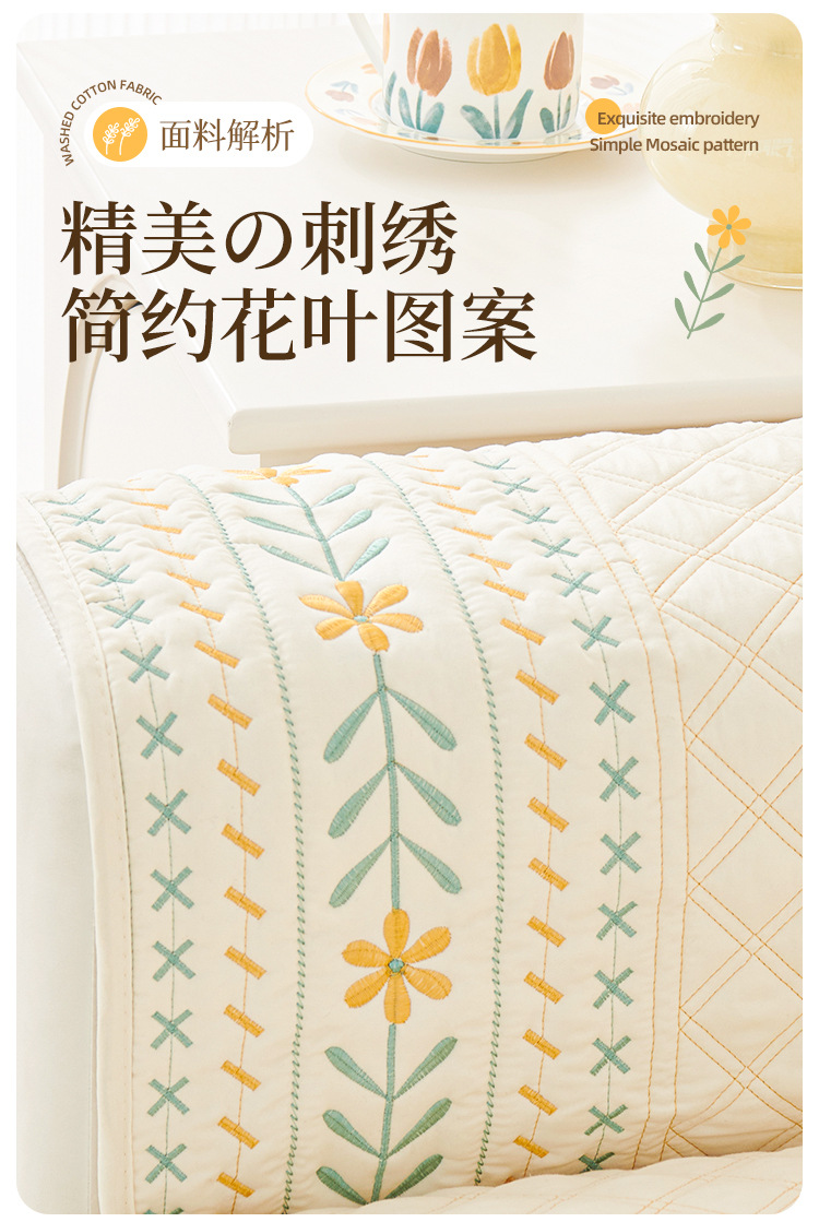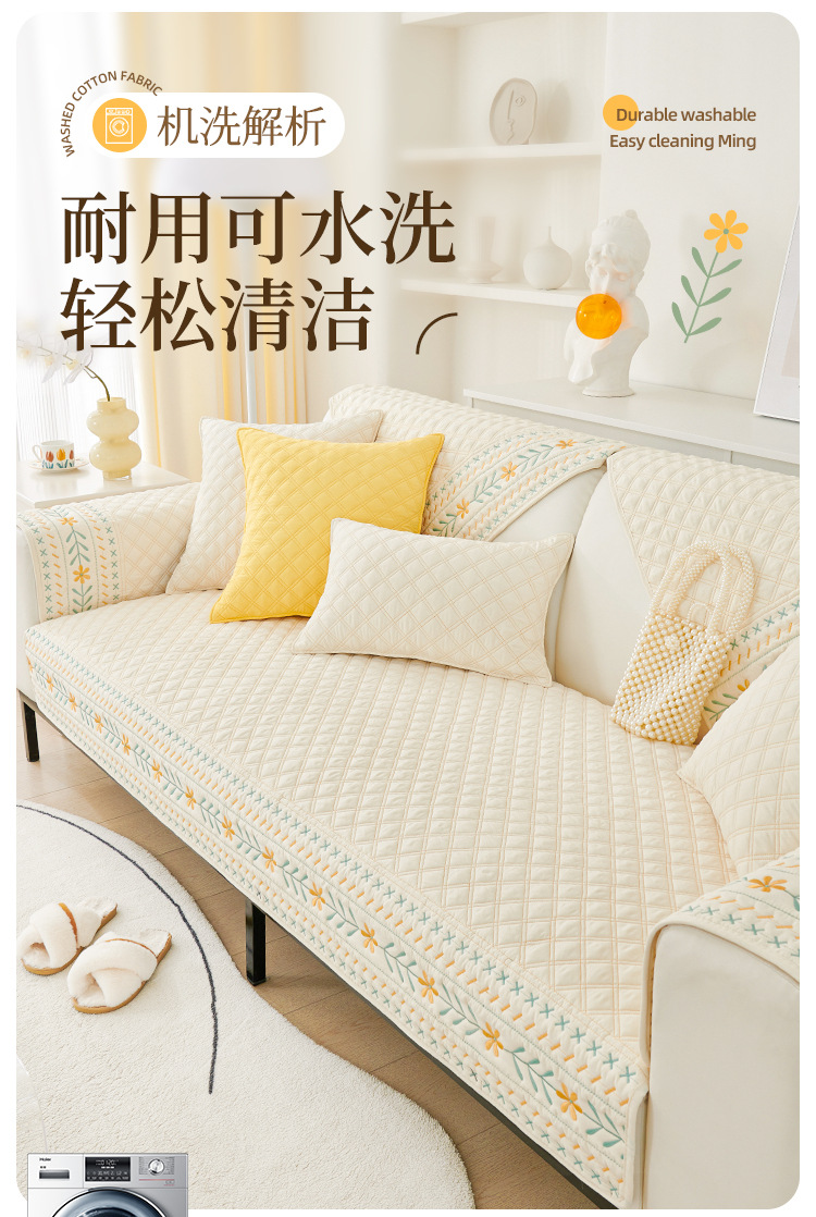 奶油风水洗棉沙发垫 四季通用简约刺绣亲肤柔软防滑沙发套