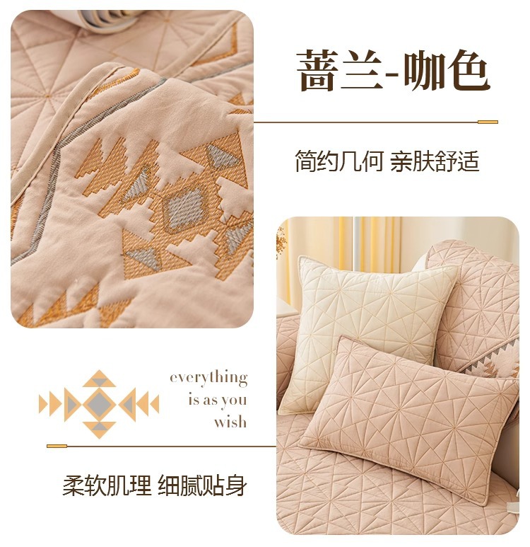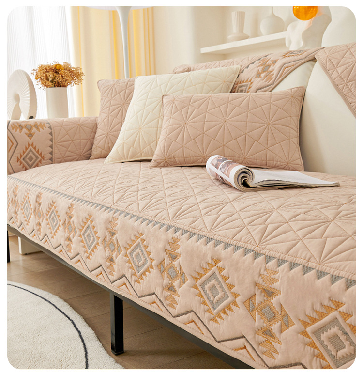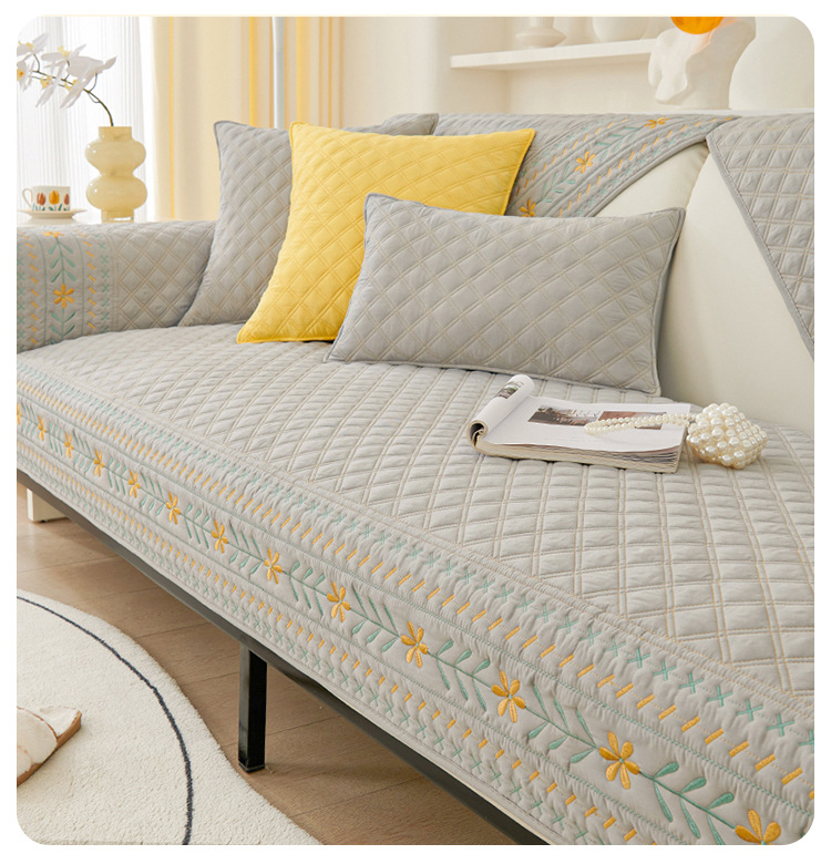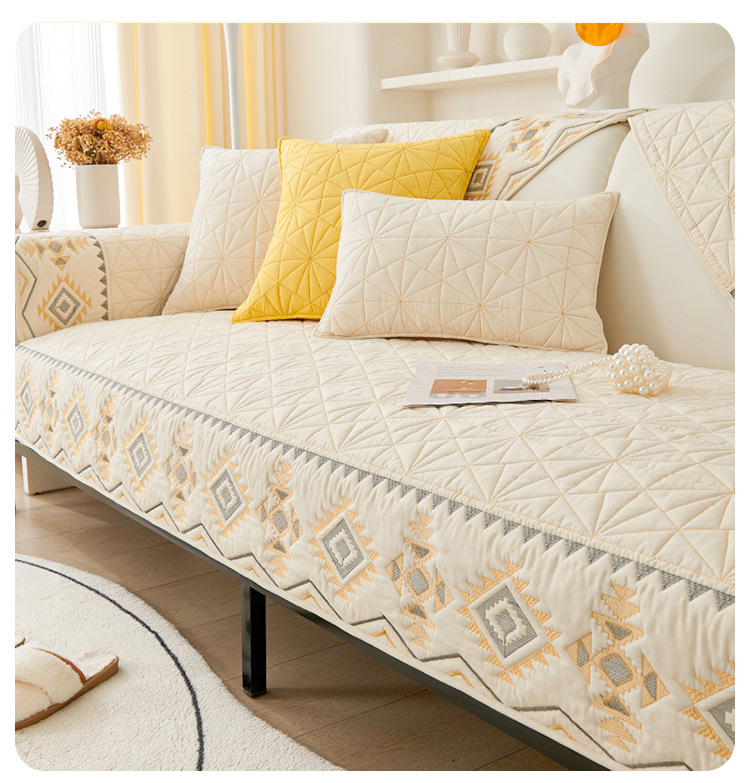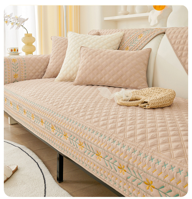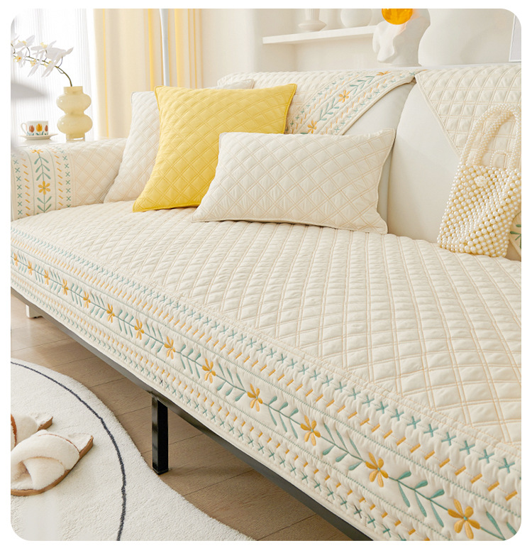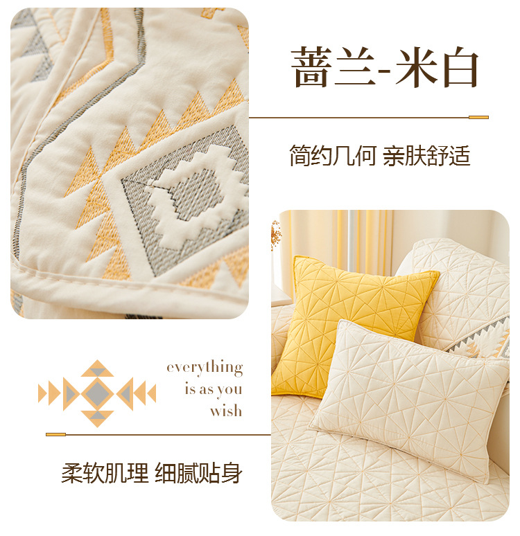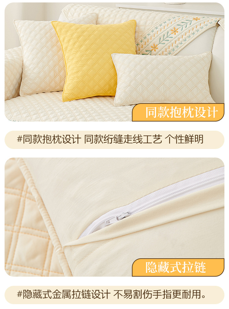 奶油风水洗棉沙发垫 四季通用简约刺绣亲肤柔软防滑沙发套