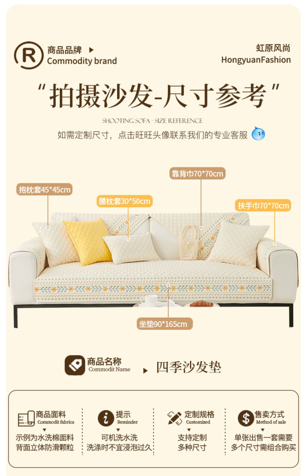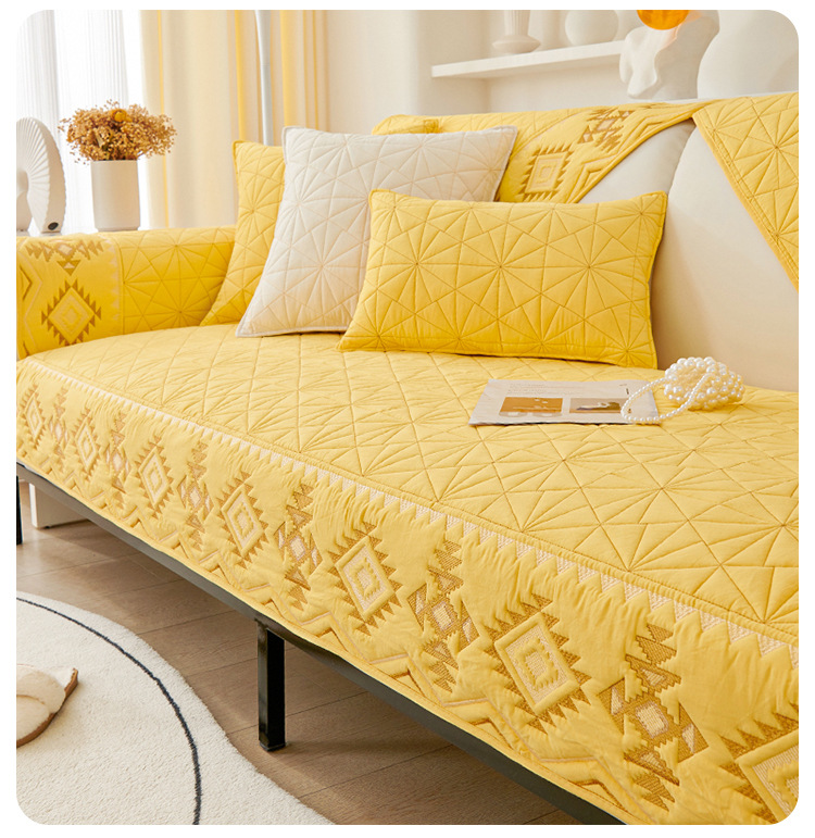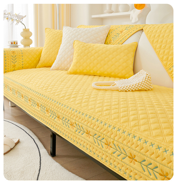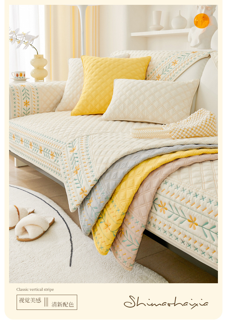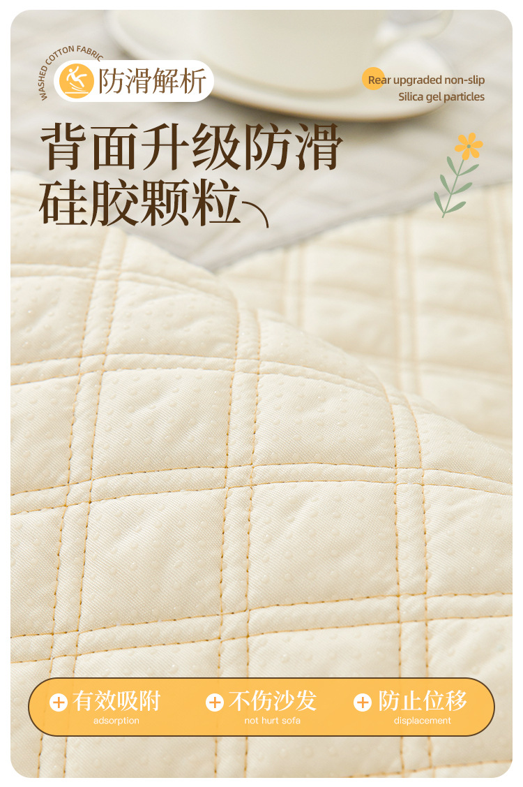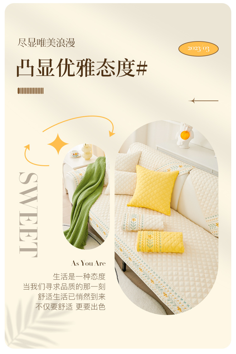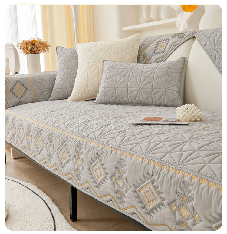 奶油风水洗棉沙发垫 四季通用简约刺绣亲肤柔软防滑沙发套