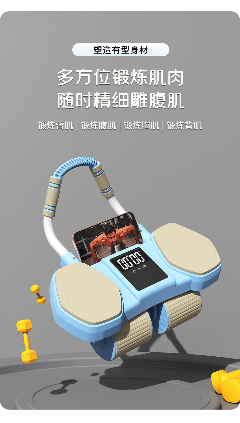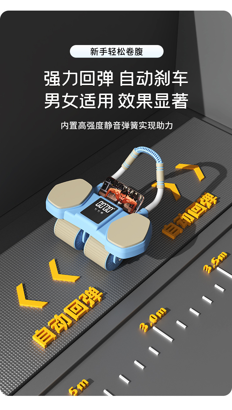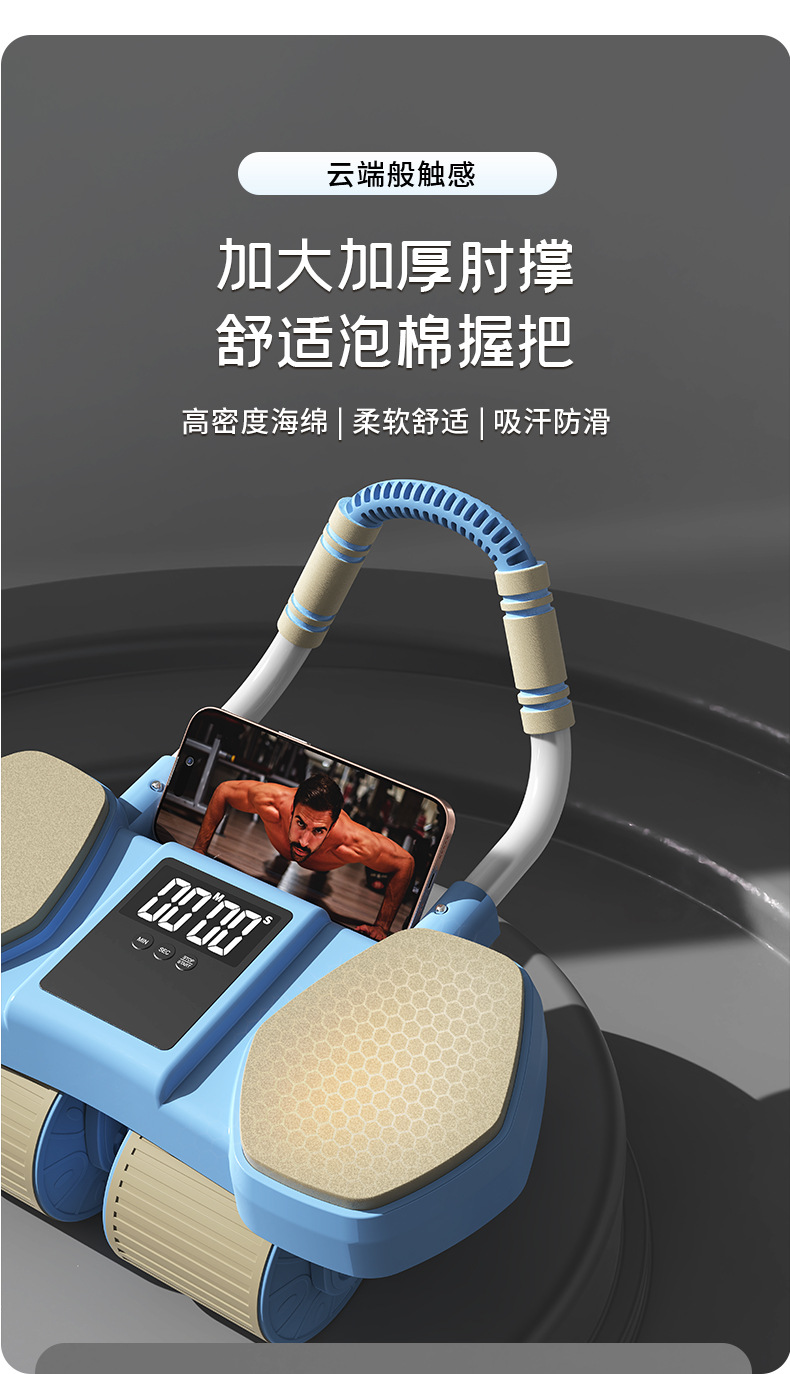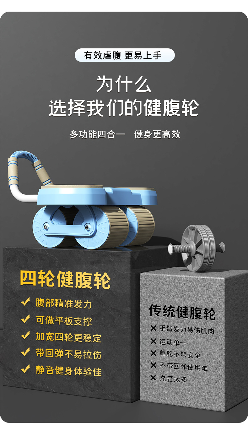 【一体成型安全承重、多功能四合一健身】健腹轮四轮自动回弹收腹卷腹练腹肌男女家用肘撑滚轮运动健身器材.TA