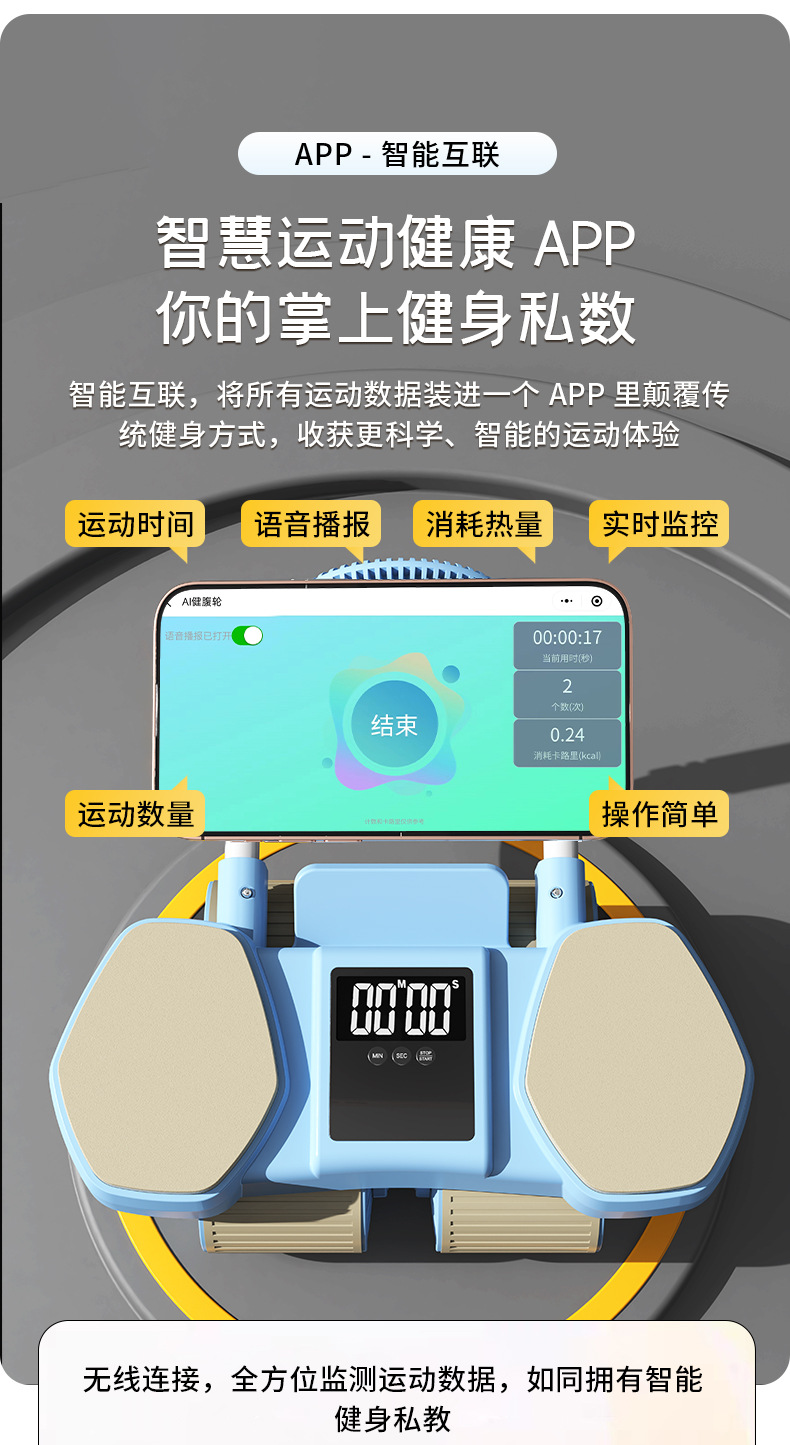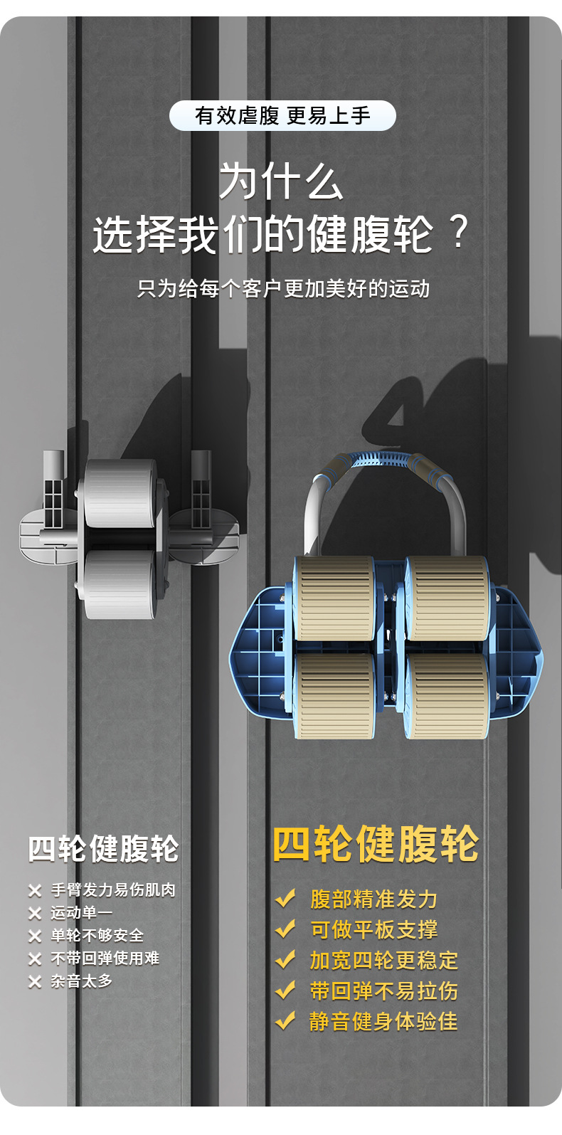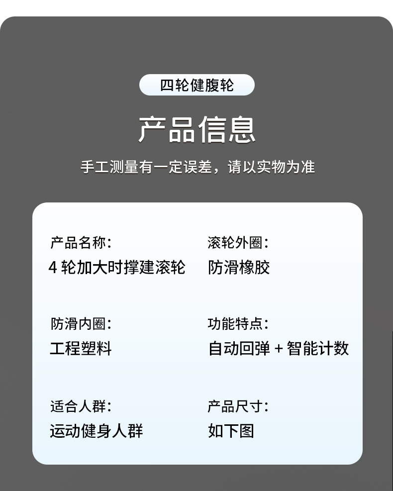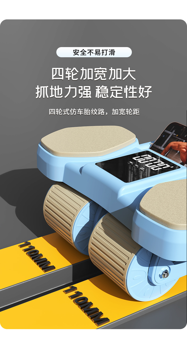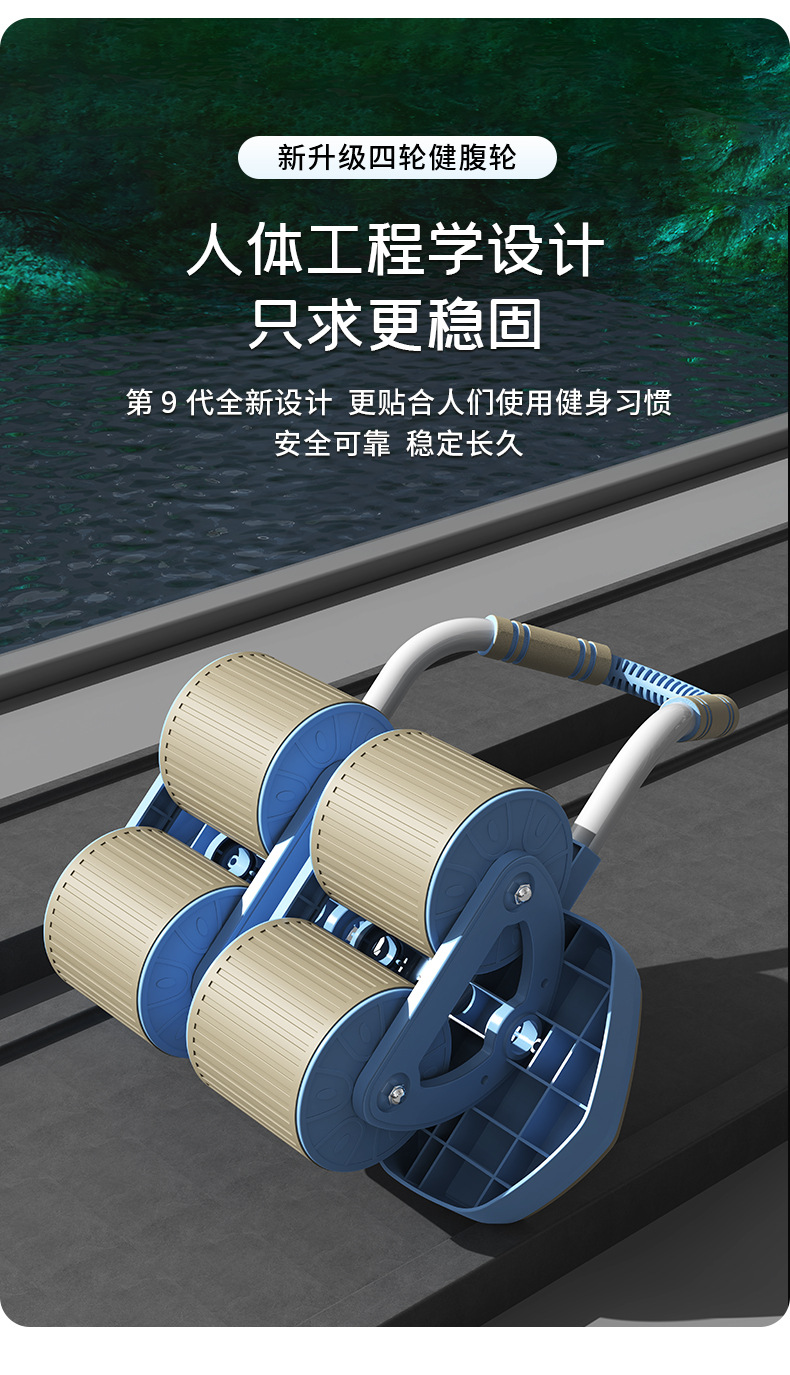 【一体成型安全承重、多功能四合一健身】健腹轮四轮自动回弹收腹卷腹练腹肌男女家用肘撑滚轮运动健身器材.TA