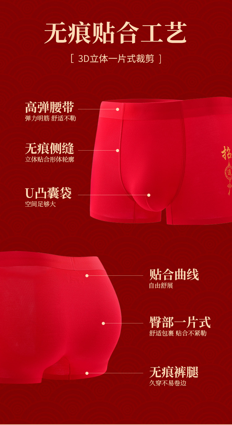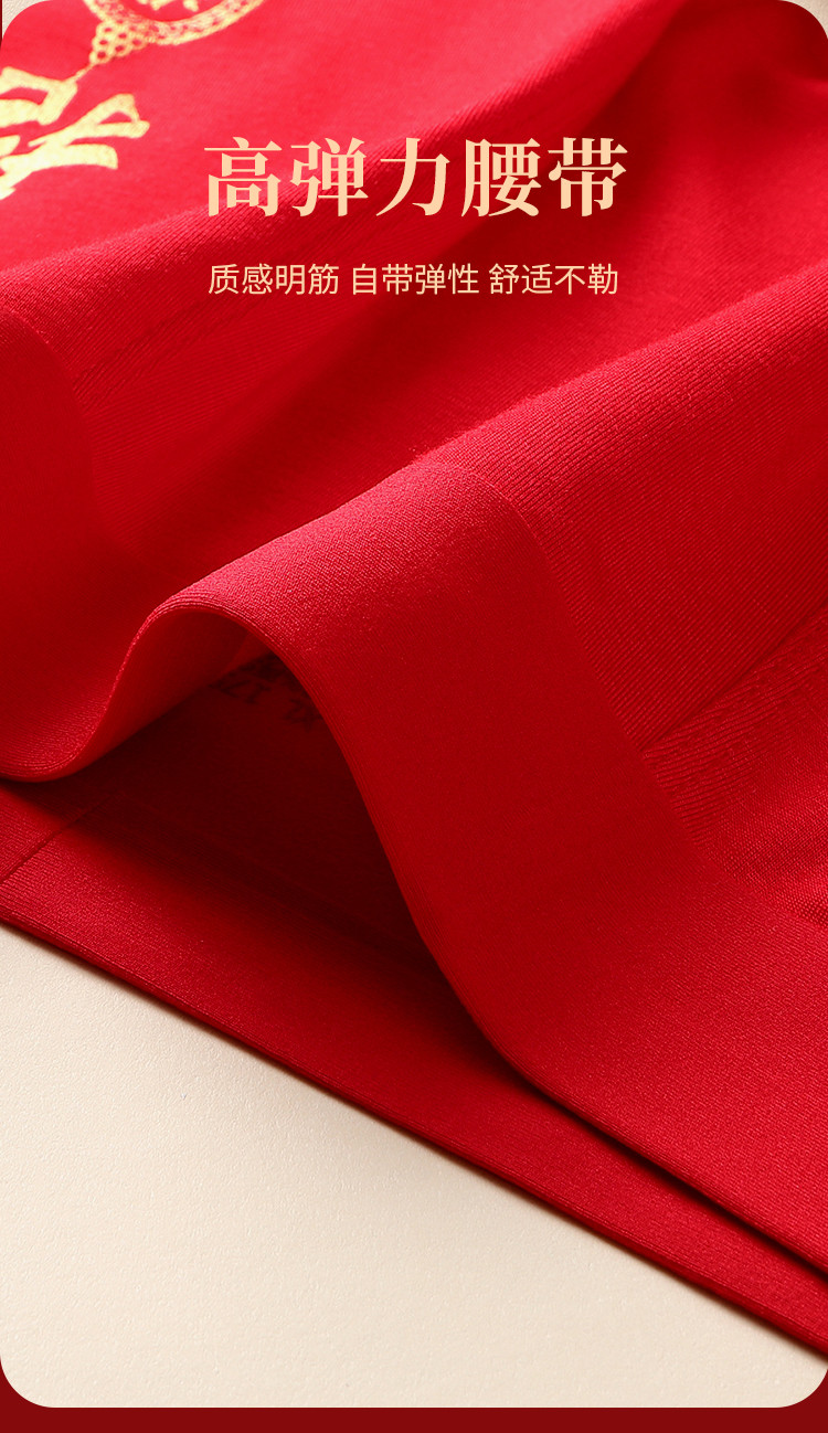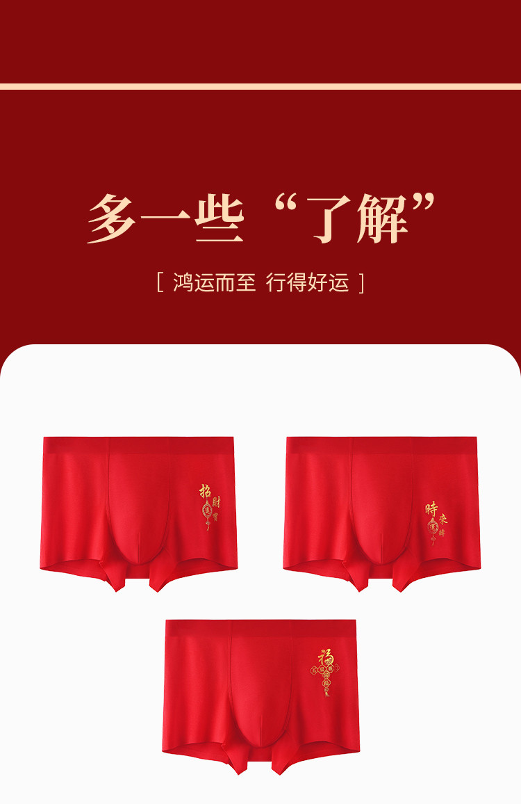 落烟渚客 男士内裤 3条装(VIP)【3条装】结婚本命年新年红色男士平角内裤