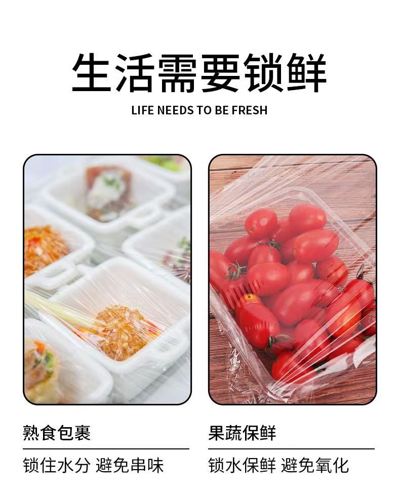 【双向滑刀!轻松切割】一次性免手撕滑刀式保鲜膜食品级防尘PE透明家用厨房饭菜塑料保鲜膜。ry