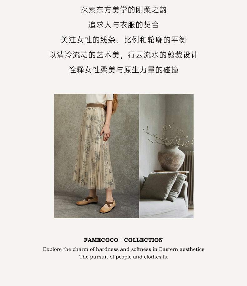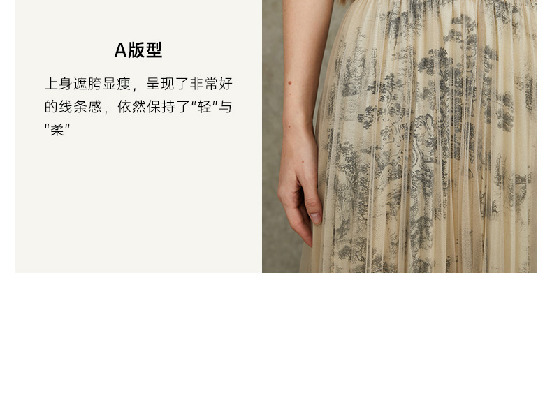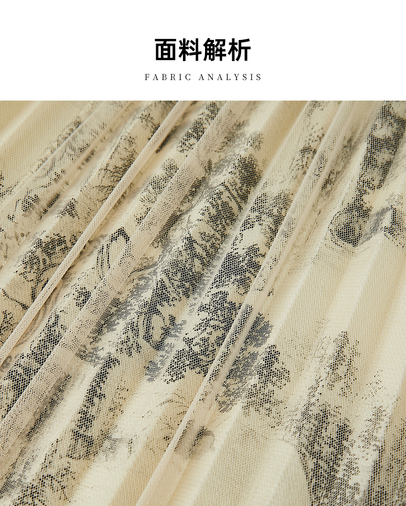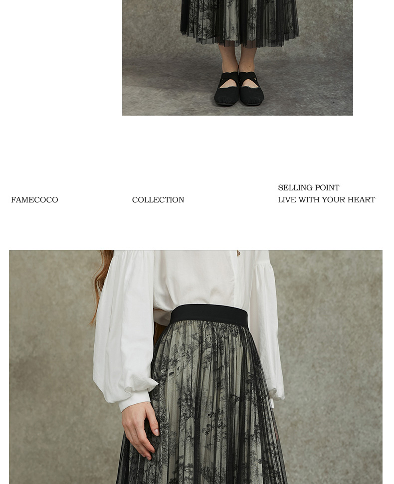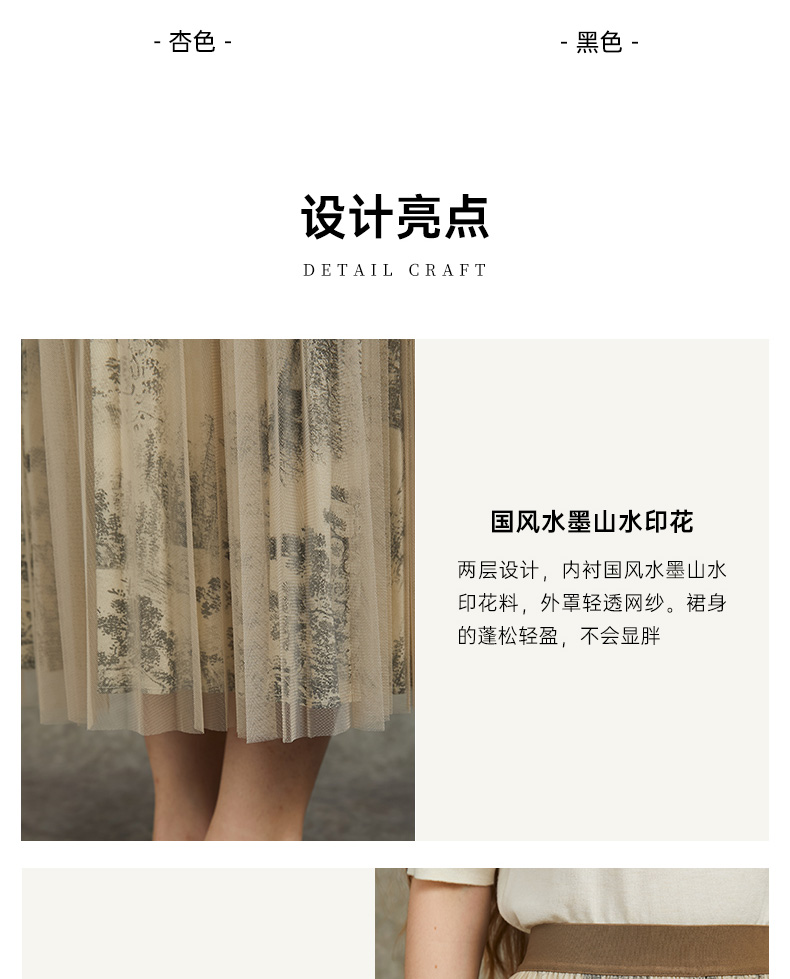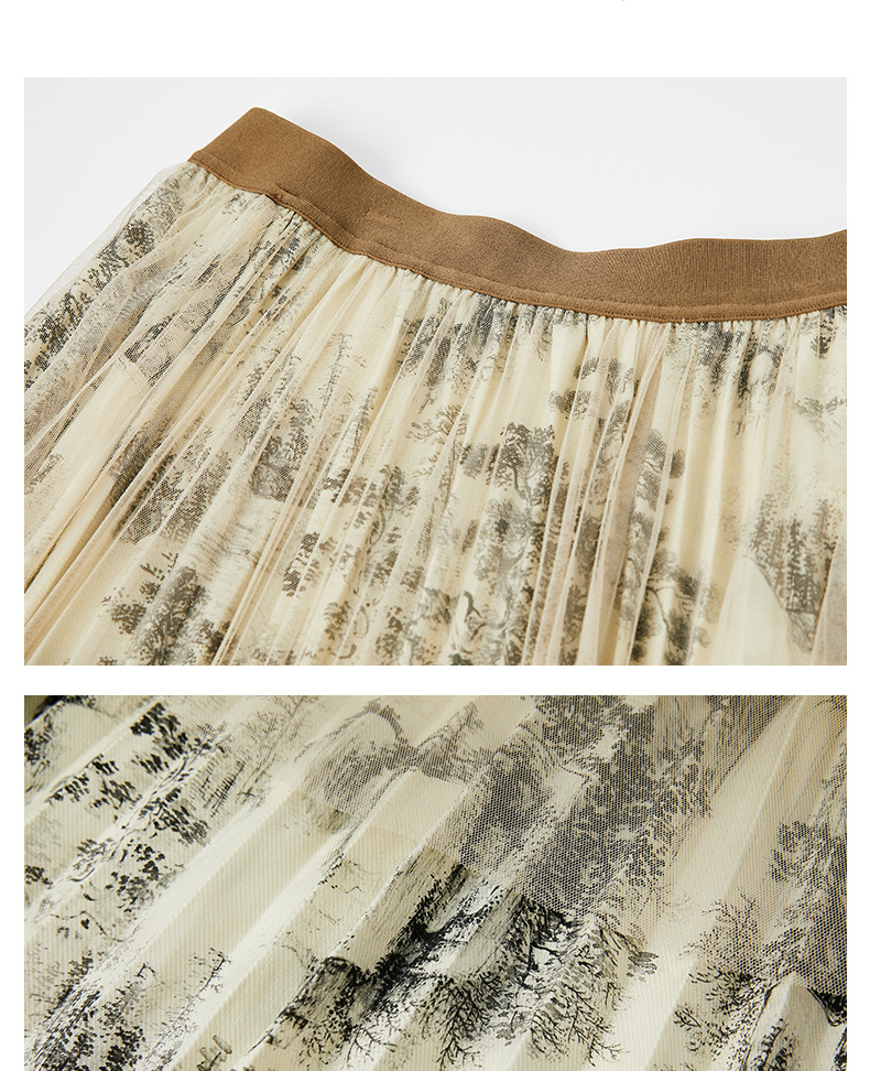 Famecoco范可儿国风水墨印花网纱半身裙轻盈显瘦长裙FAC6HA006