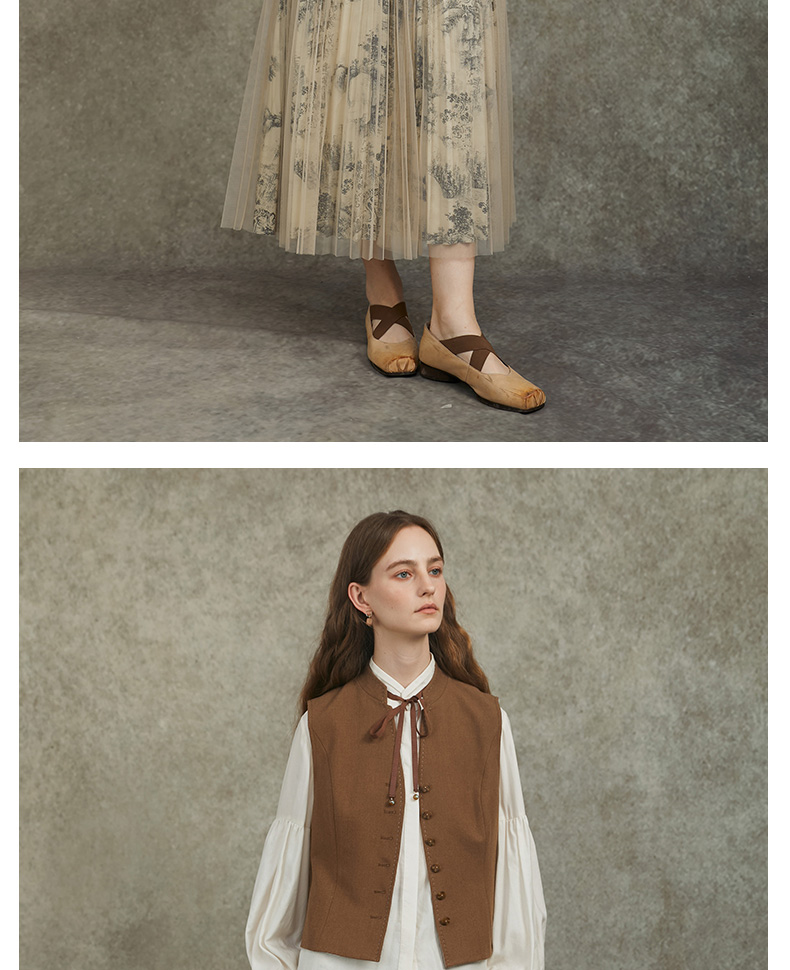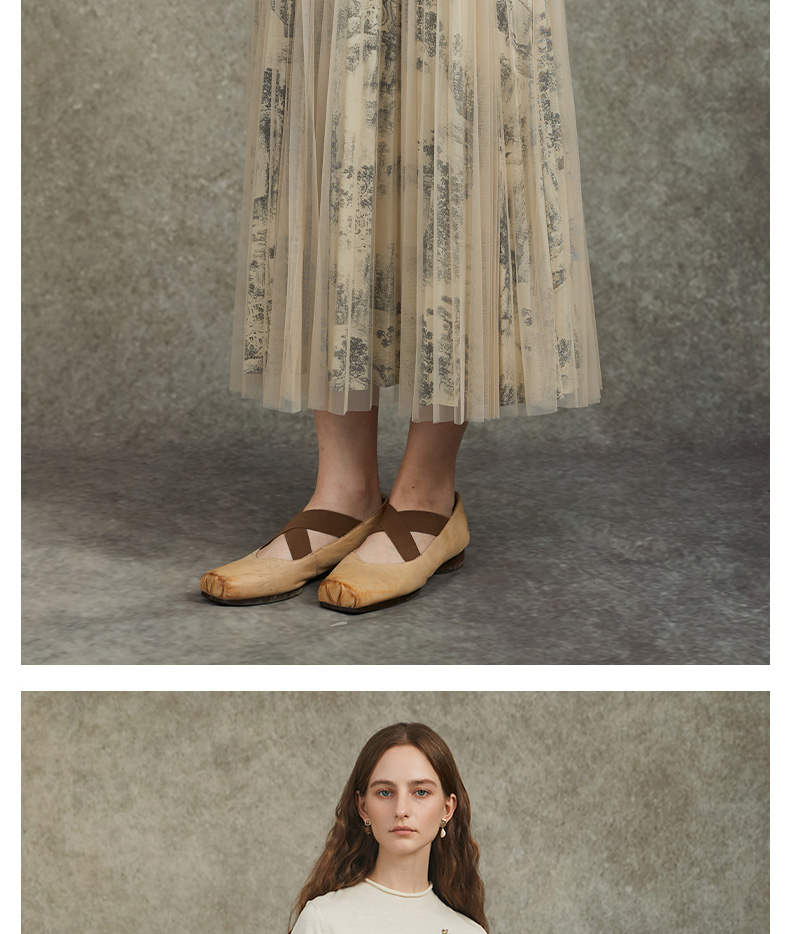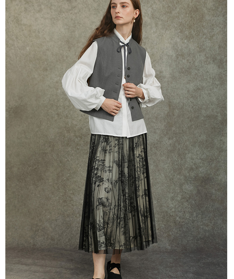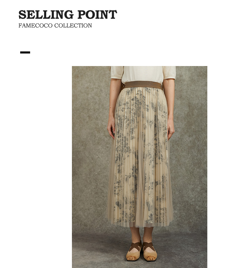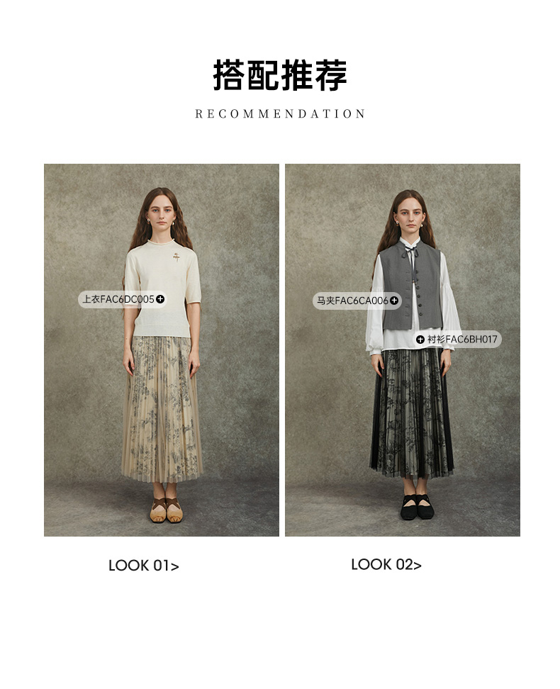 Famecoco范可儿国风水墨印花网纱半身裙轻盈显瘦长裙FAC6HA006