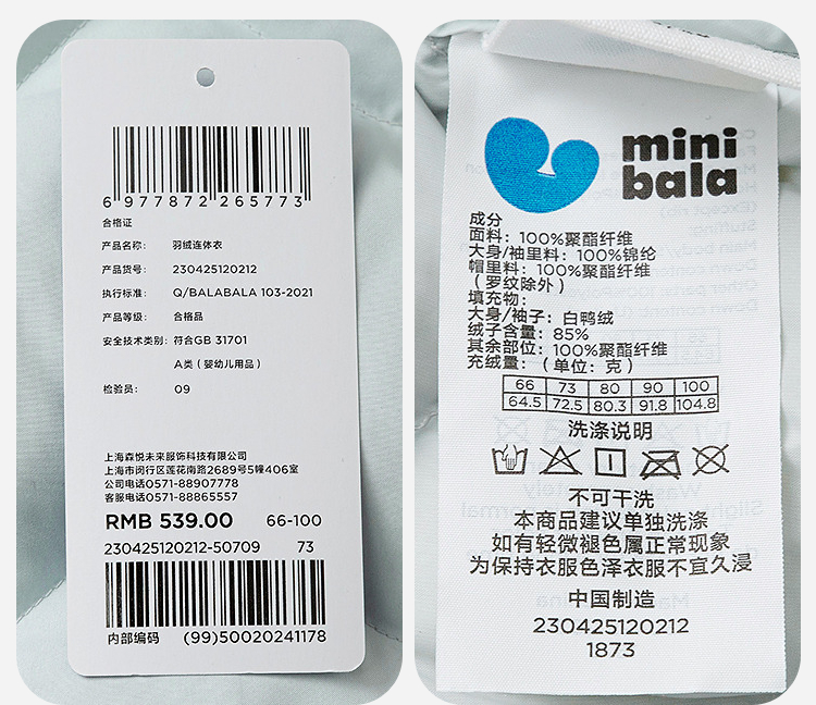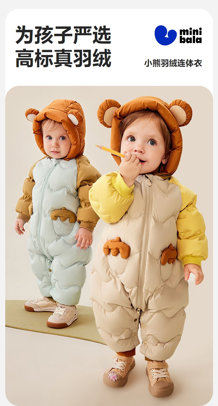 【三防】迷你巴拉羽绒连体衣婴儿衣服宝宝小熊爬服加厚新款