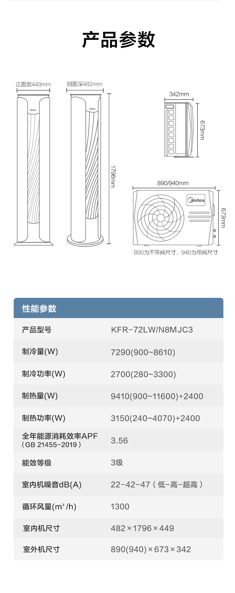 美的 3匹变频空调柜机 (锐爽)KFR-72L/N8MJC3