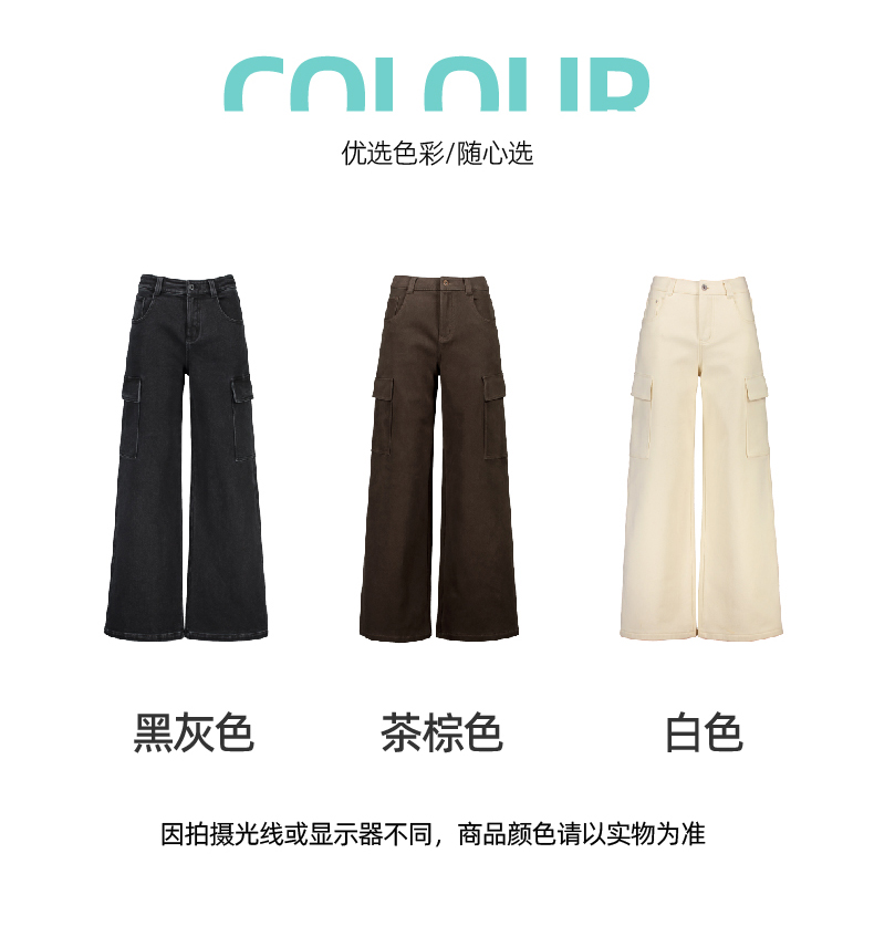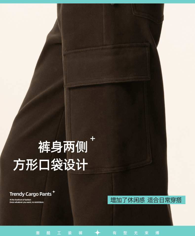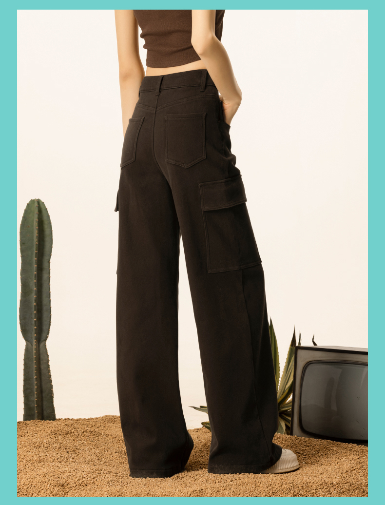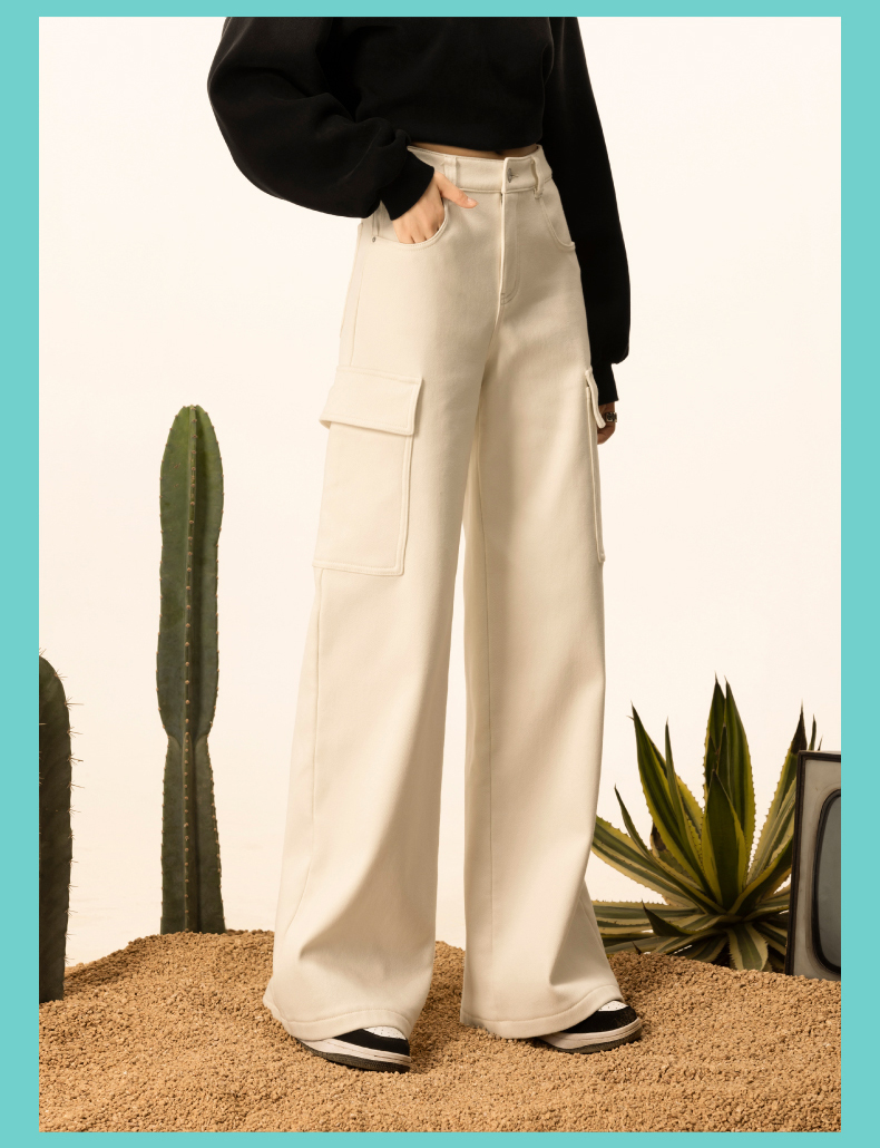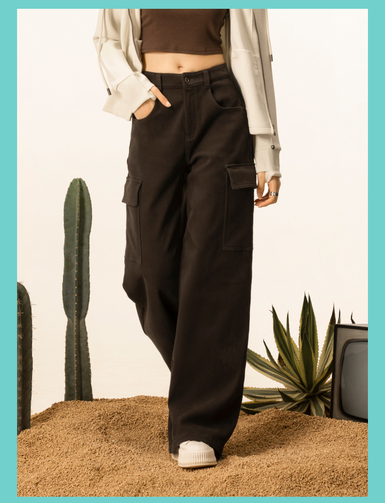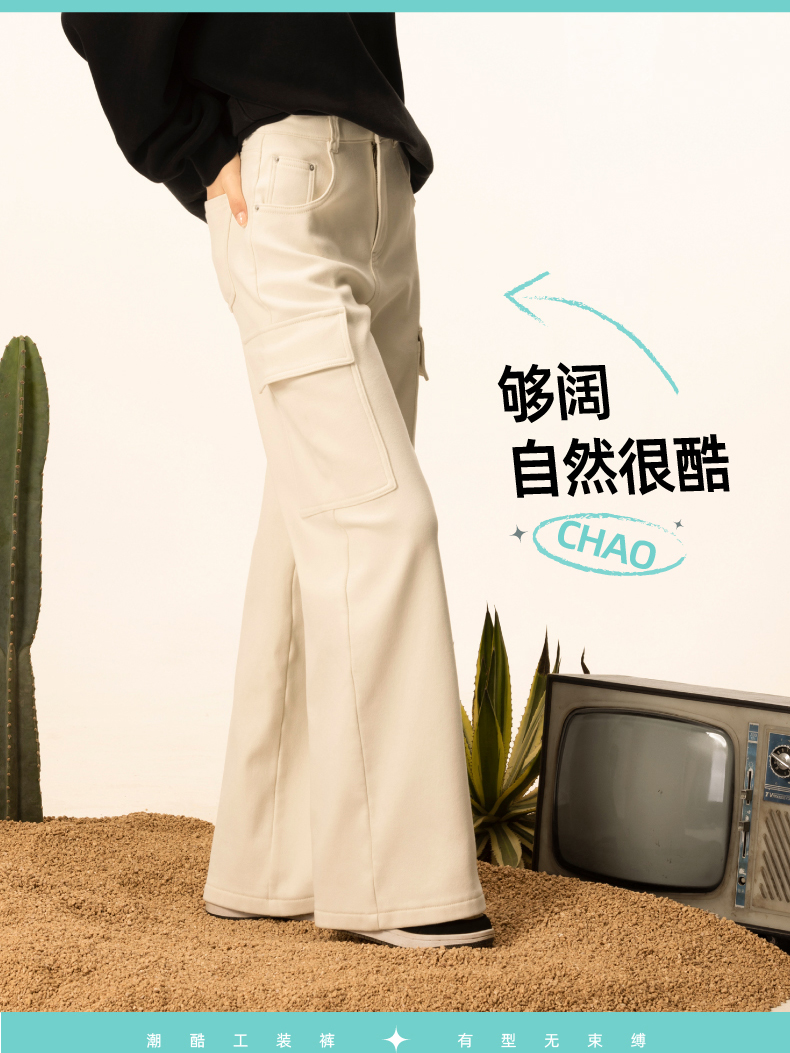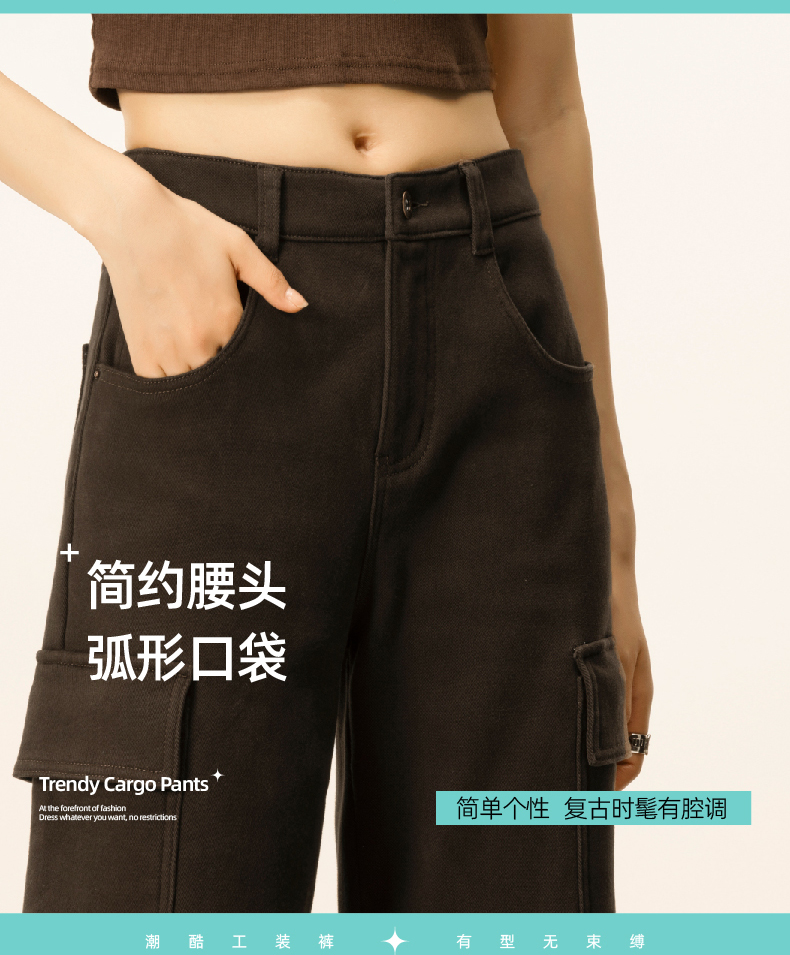 【加绒-工装牛仔裤】逸阳冬新品加绒宽松显瘦工装保暖阔腿长裤子1690