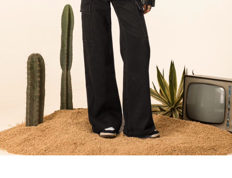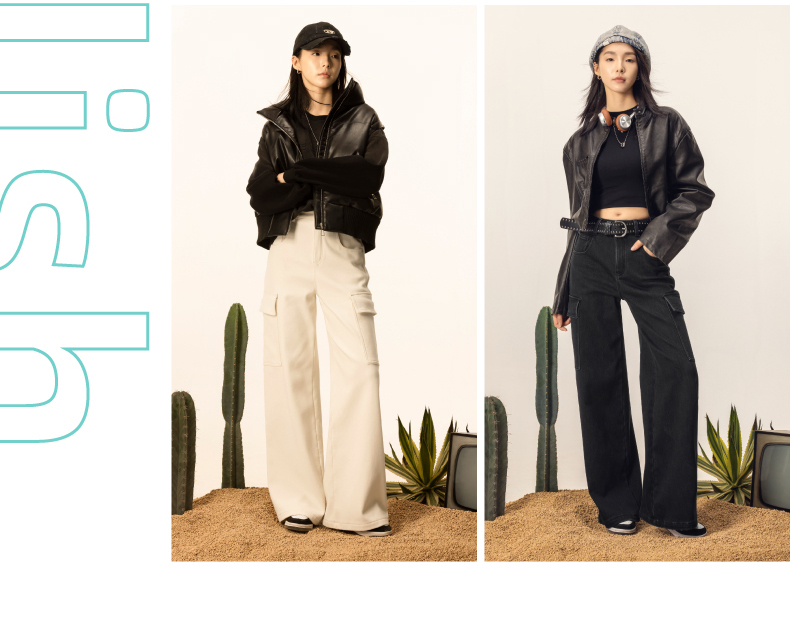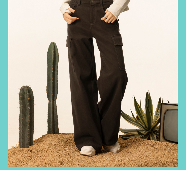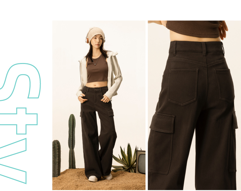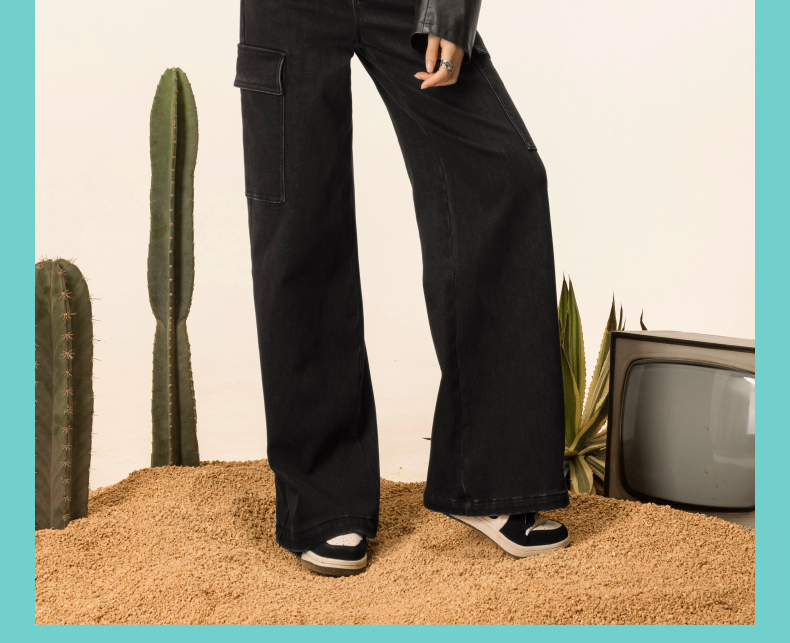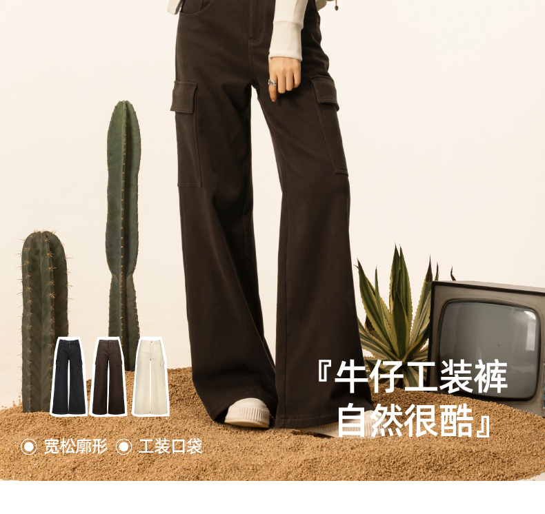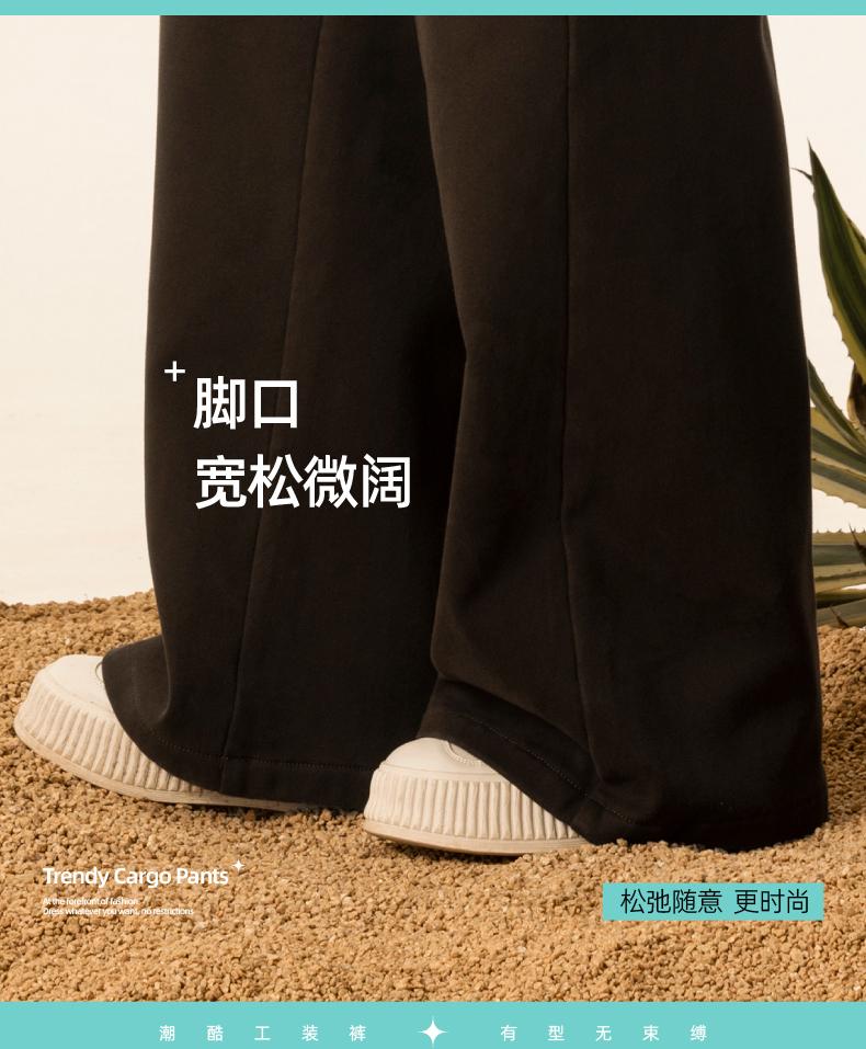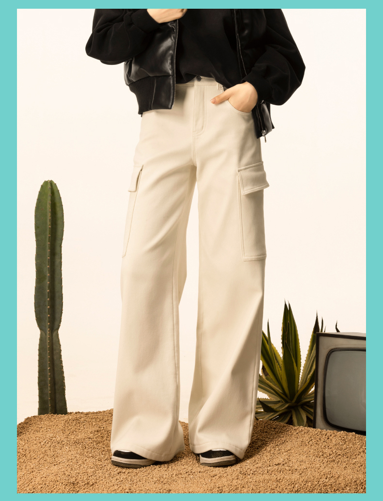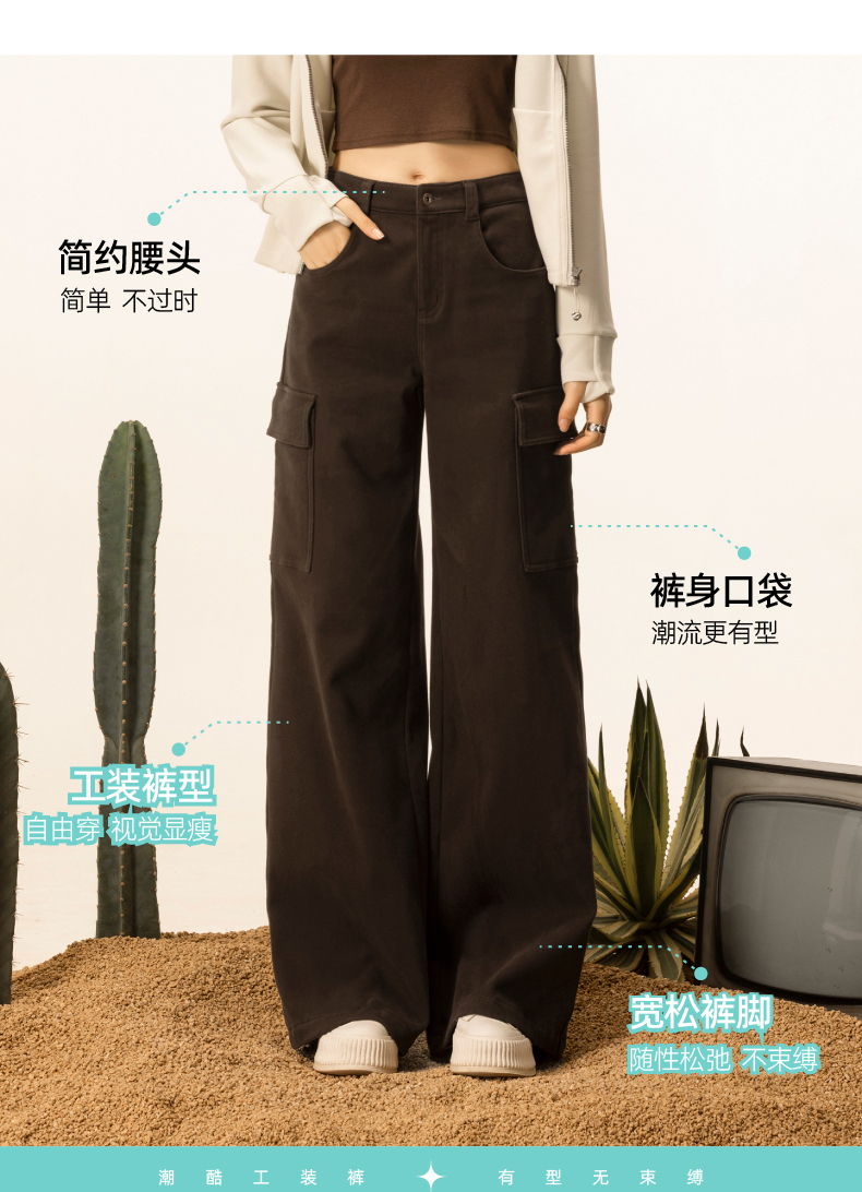 【加绒-工装牛仔裤】逸阳冬新品加绒宽松显瘦工装保暖阔腿长裤子1690