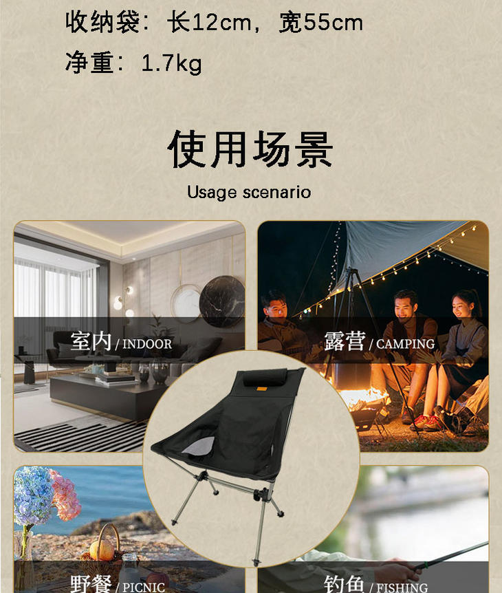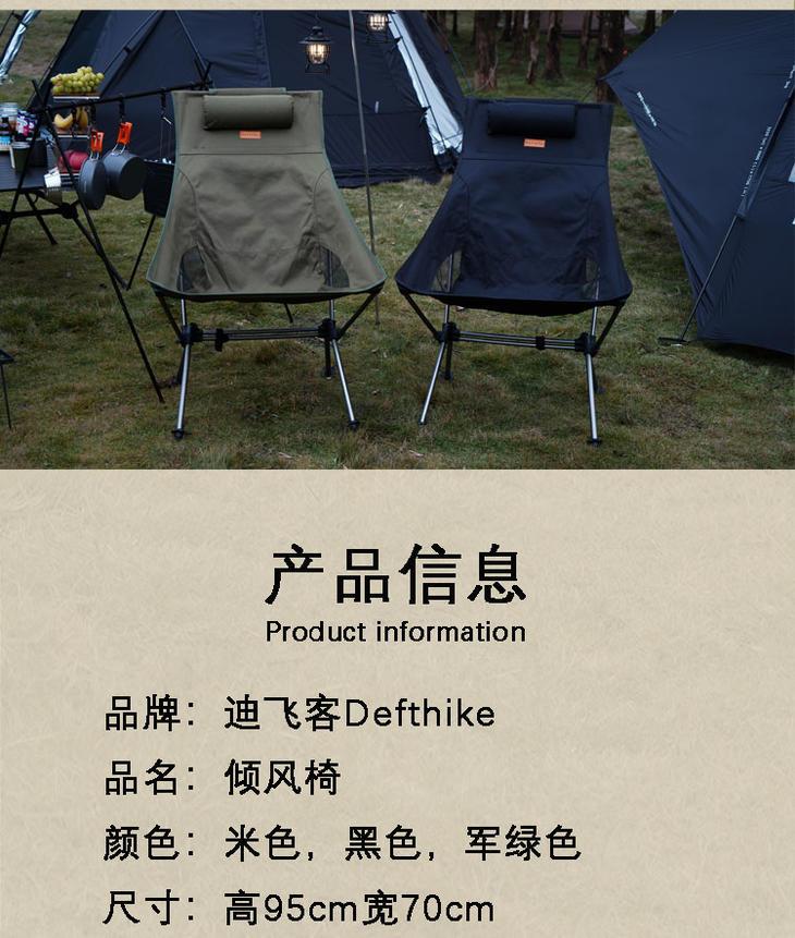 Defthike/迪飞客户外月亮椅铝合金便携折叠椅欧式加宽高背露营椅