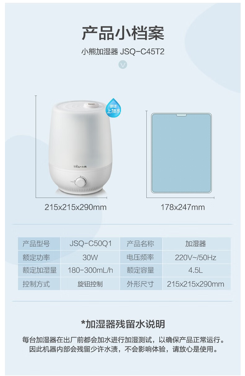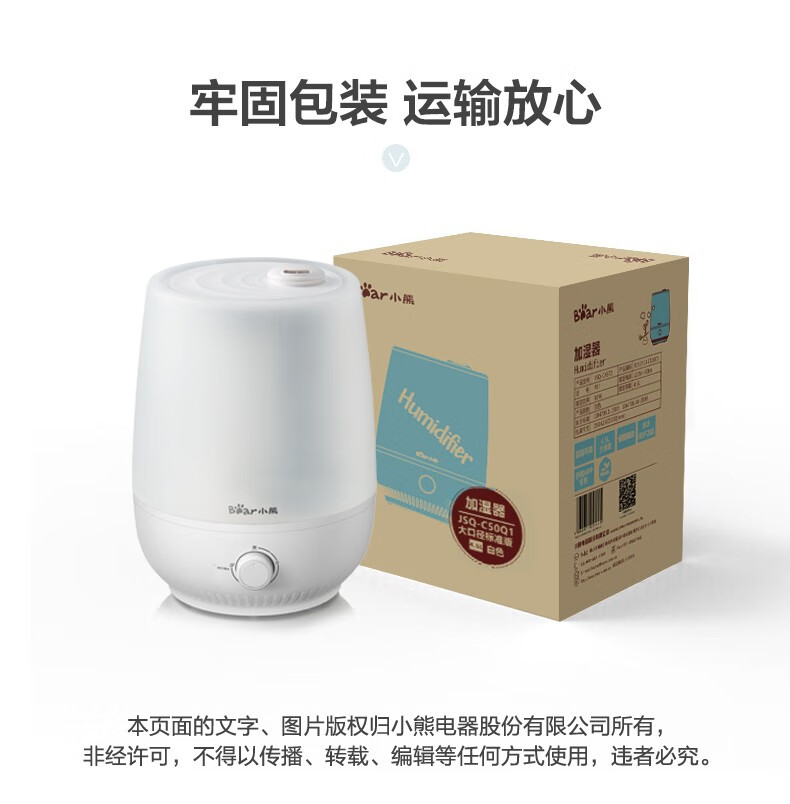 小熊(Bear) 加湿器桌面加湿家用迷你加湿器大雾量增湿器卧室婴儿办公室空调房净化 桌面加湿器 标准净化款JSQ-C50Q1