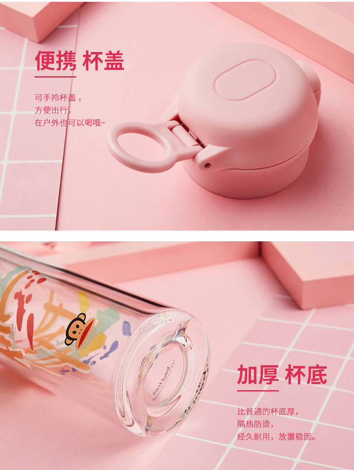 大嘴猴双层玻璃杯少女心学生水杯车载便携杯子办公室花茶杯随手杯 仙女粉(涂鸦款)