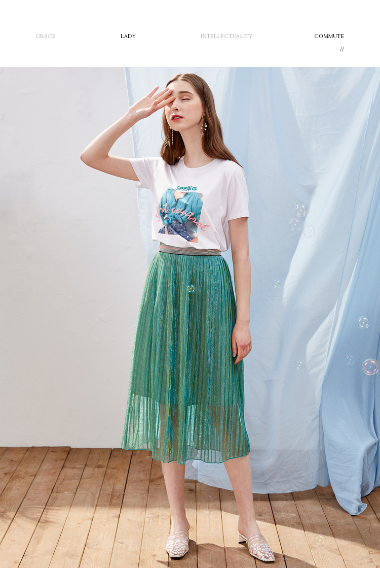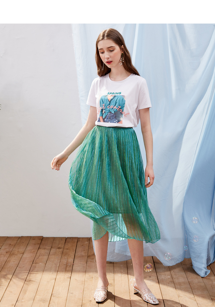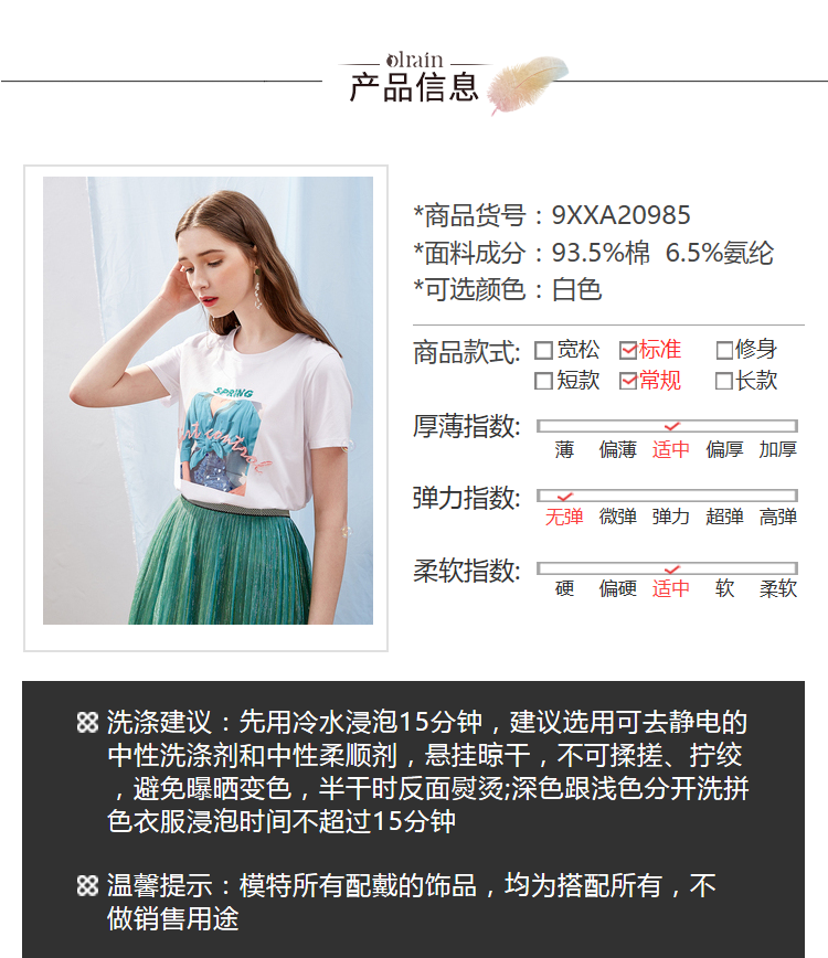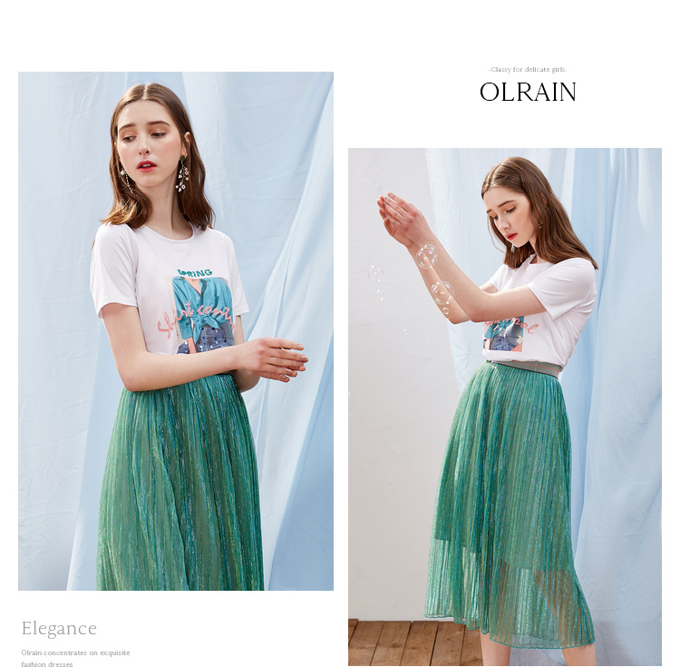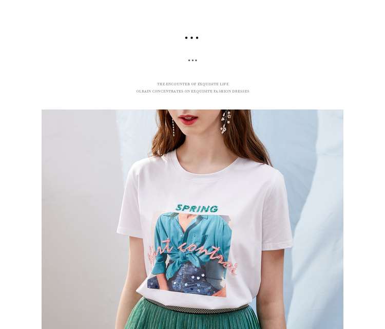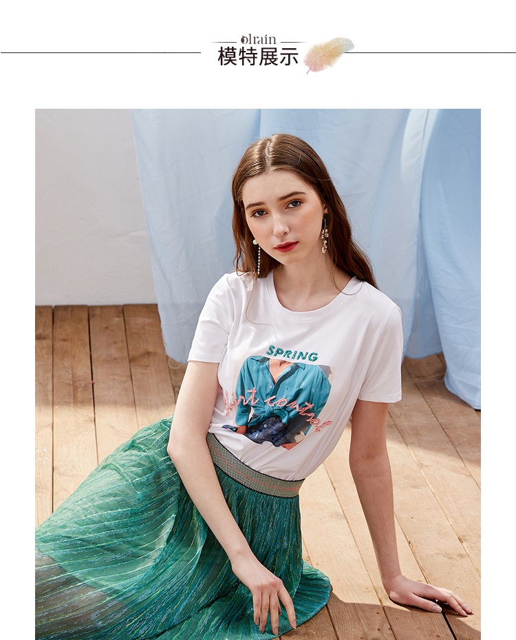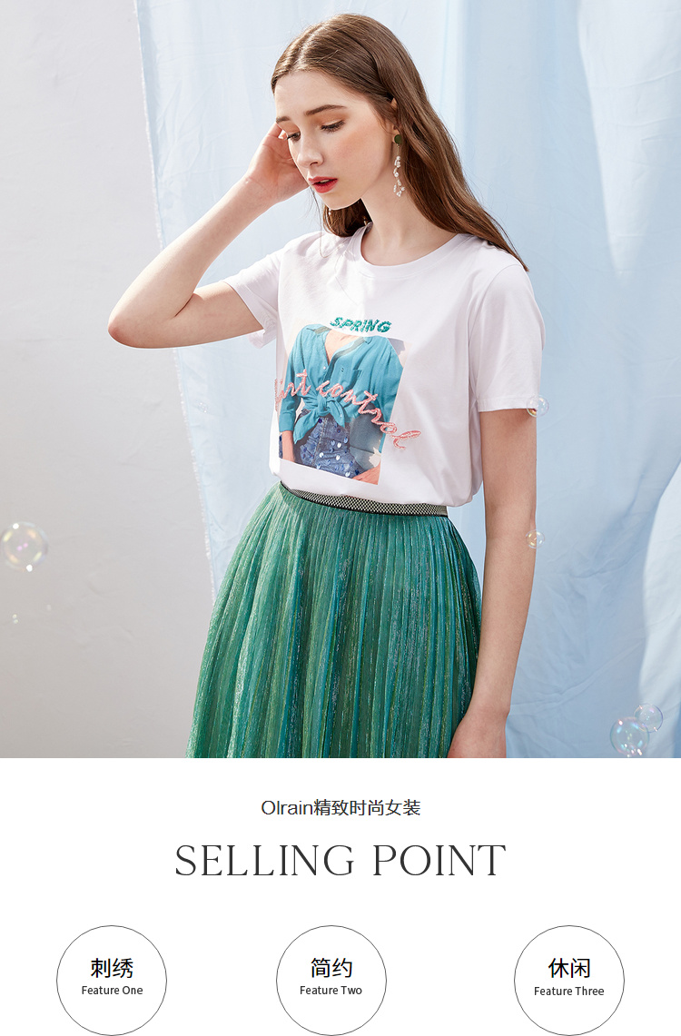 欧芮儿OLrain夏日百搭白色T恤简约图案设计透气舒适