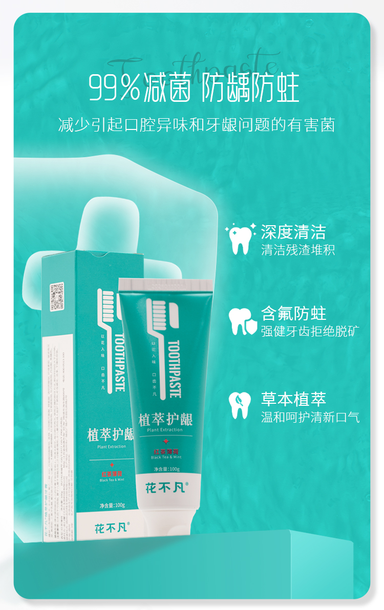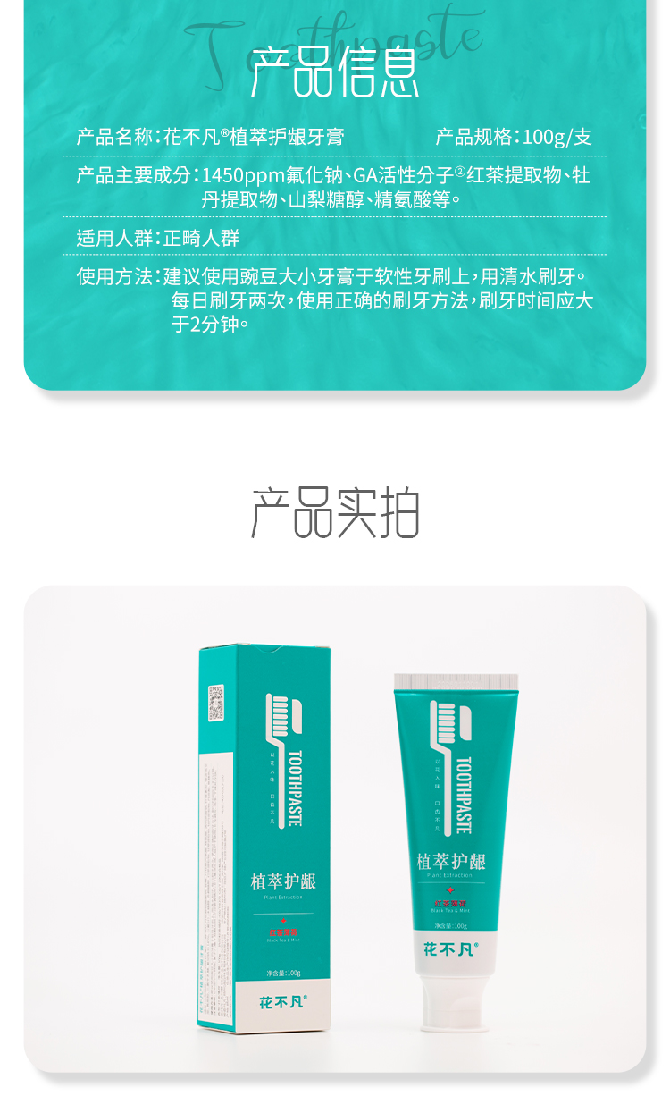 【花不凡】植萃护龈牙膏正畸含氟防龋氨基酸植萃护龈牙膏