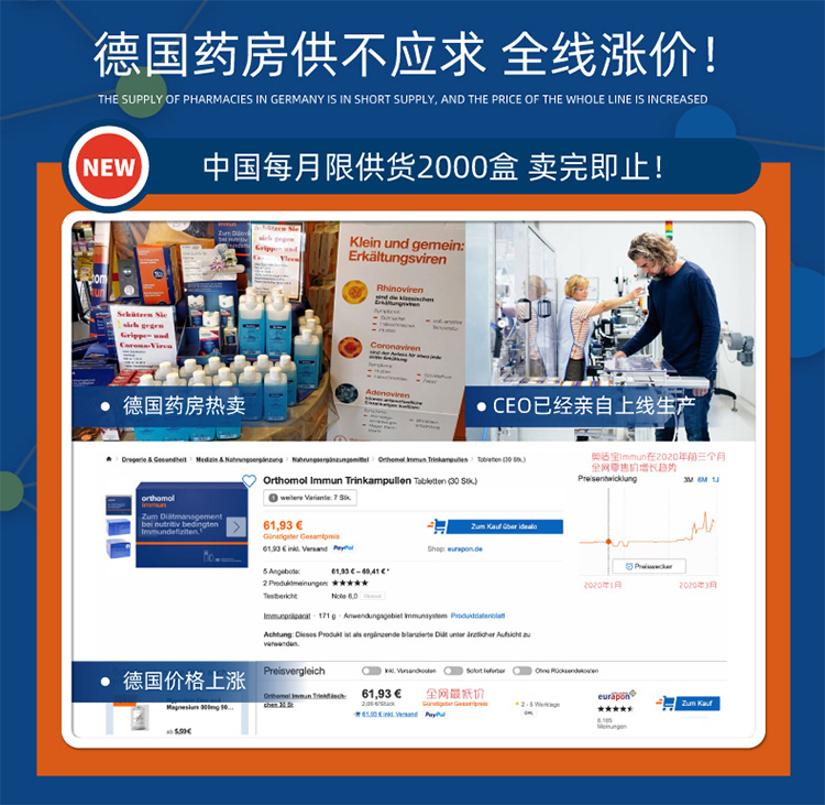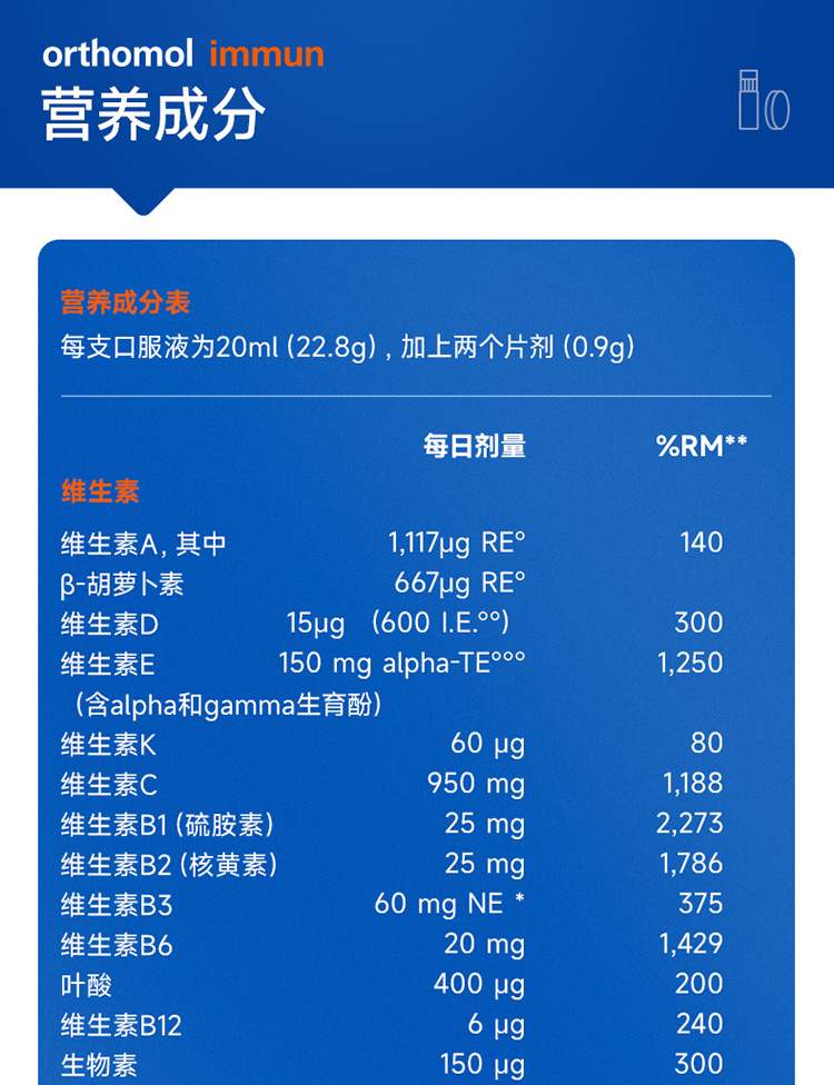 保税直发 orthomol 奥适宝 复合维生素营养护盾口服液 30瓶/盒 1盒装/2盒装/3盒装