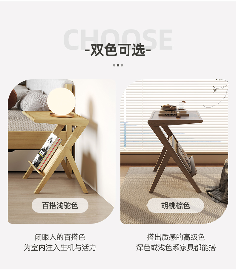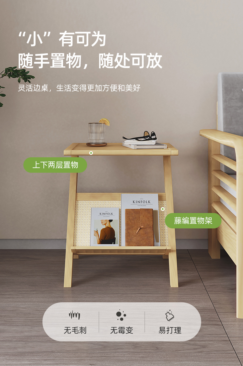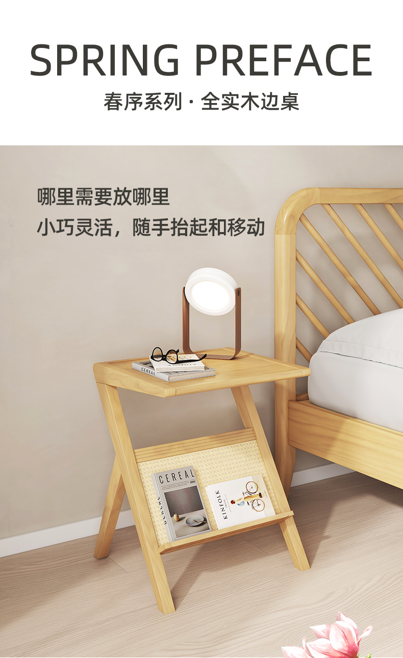 喜梦宝边几全实木角几现代简约床头柜阅读桌春序系列