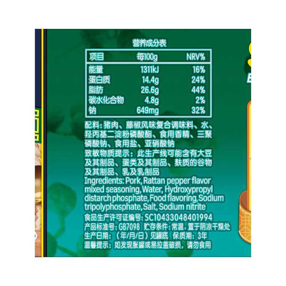 世棒巴蜀藤椒味午餐肉320g