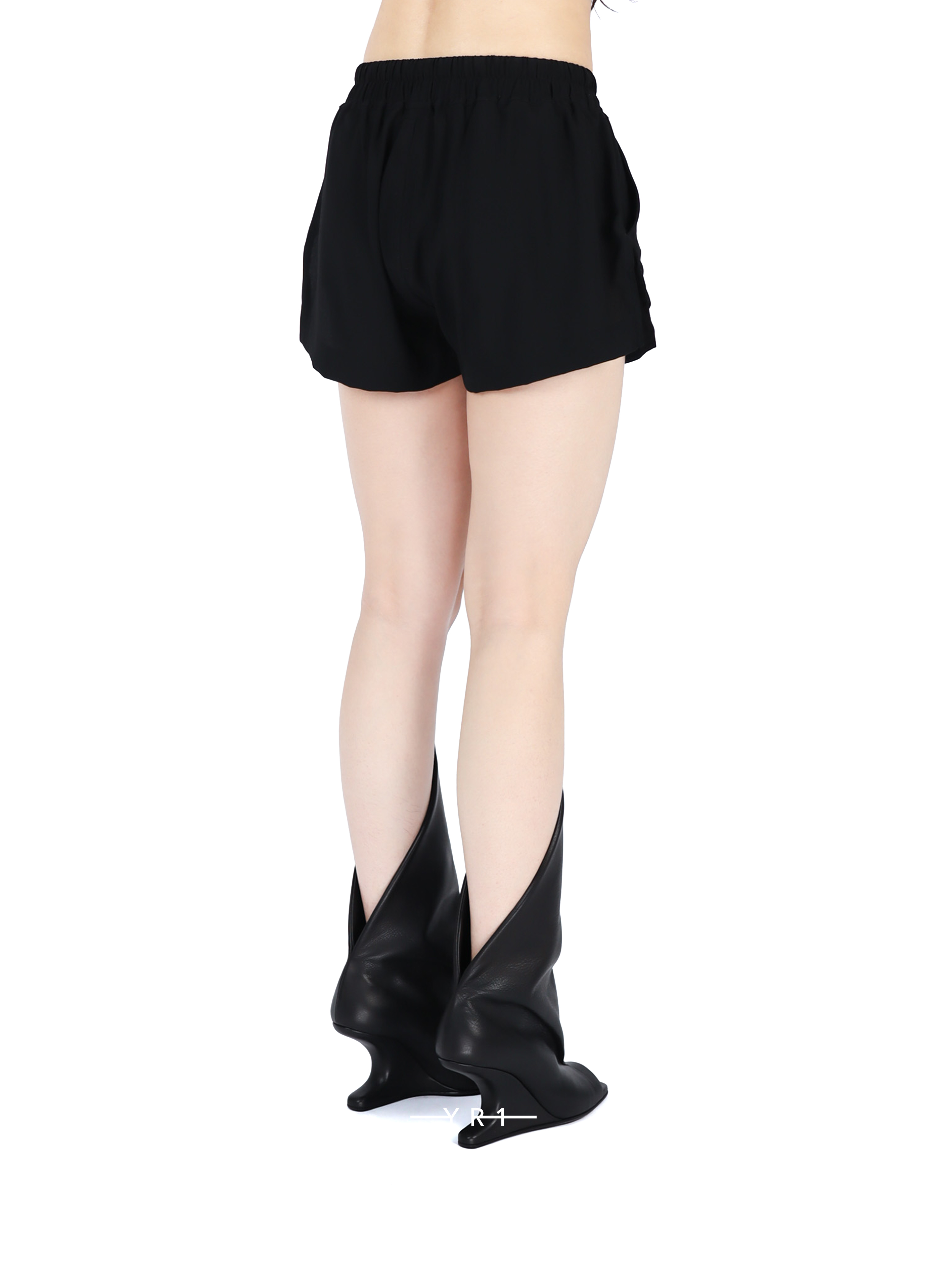 松紧腰带采用褶裥设计,并以一条浅色长抽绳收尾,营造出引人注目的对比效果。侧插袋兼具优雅与实用性,体现了设计师 Rick Owens 所构想的当代奢侈时尚潮流