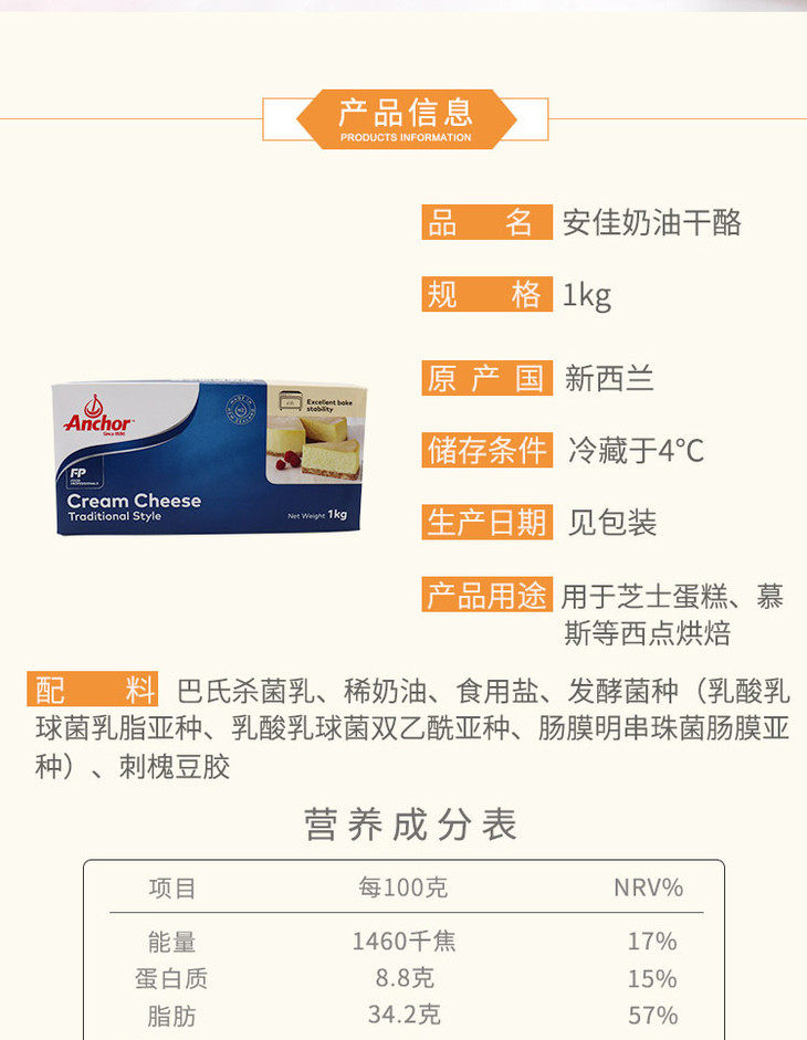 安佳奶油芝士乳酪 1KG