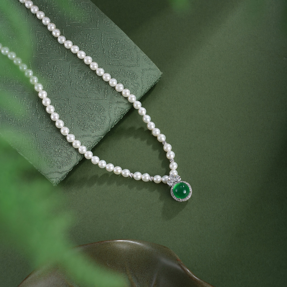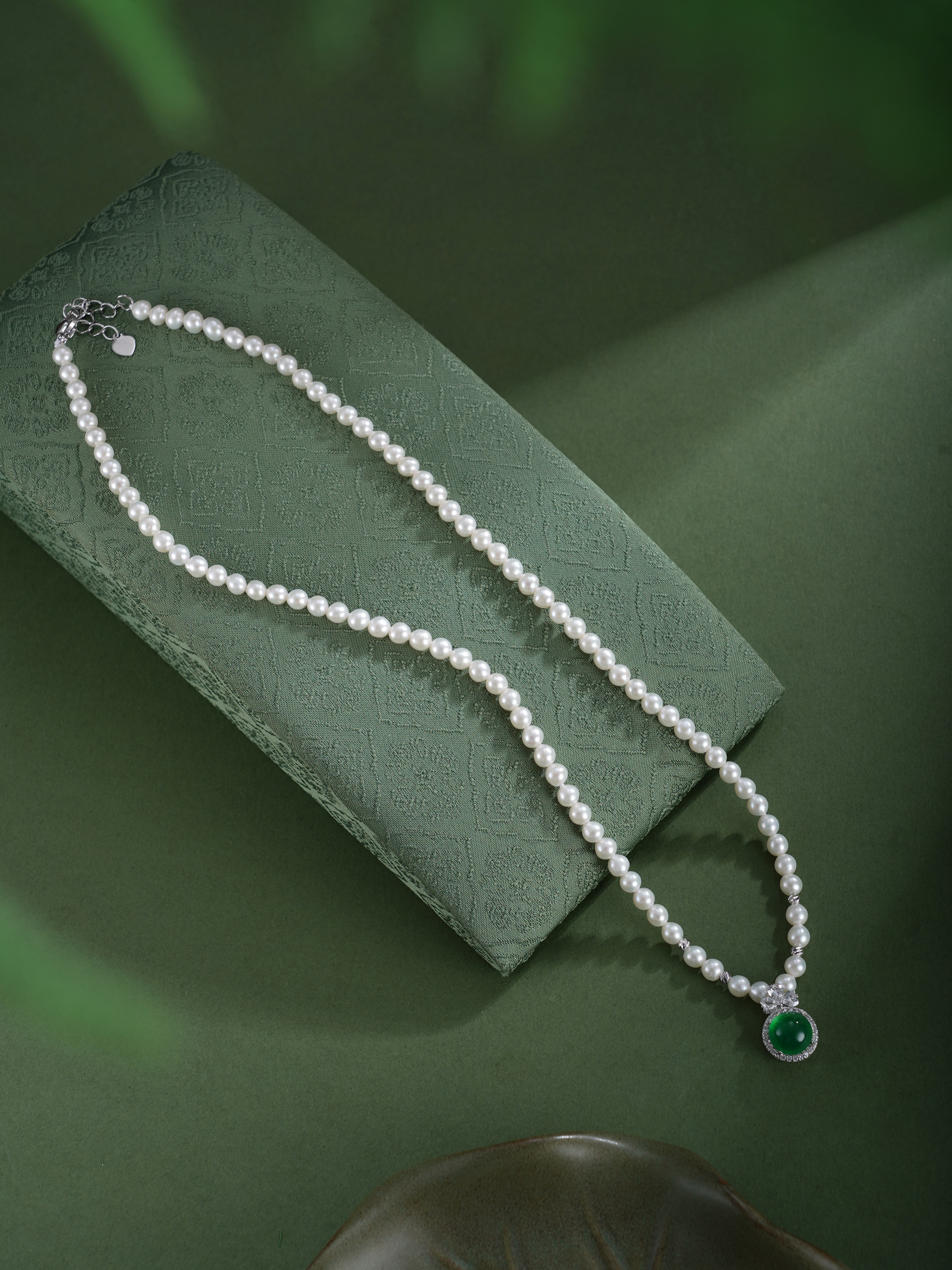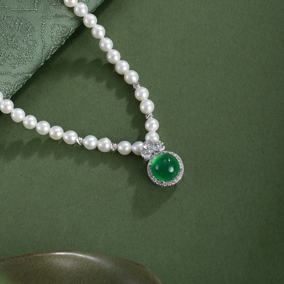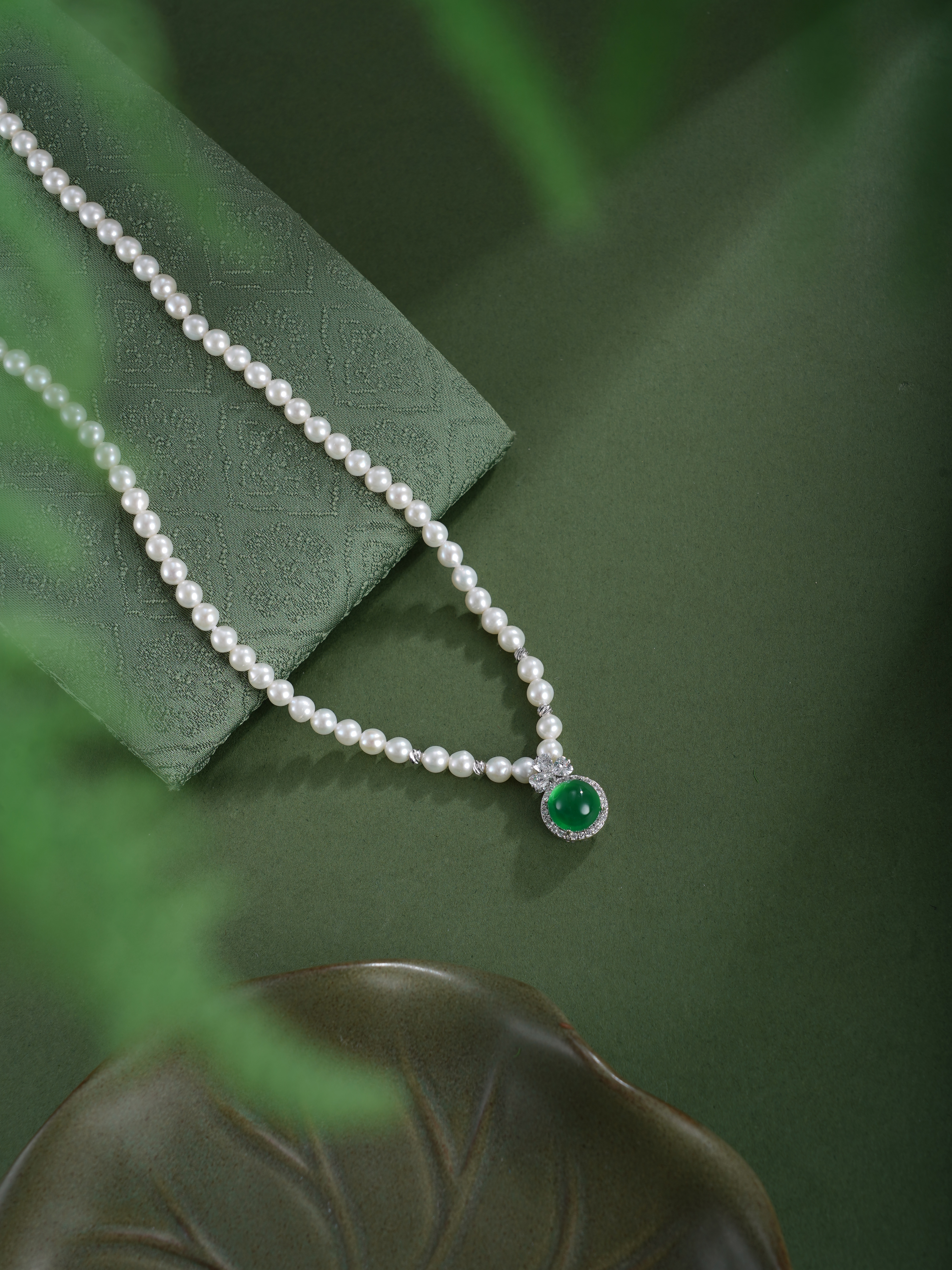 子佩集【琼花绮语】珍珠惜王妃项链【XXXL024】绿玉髓圆形2602
