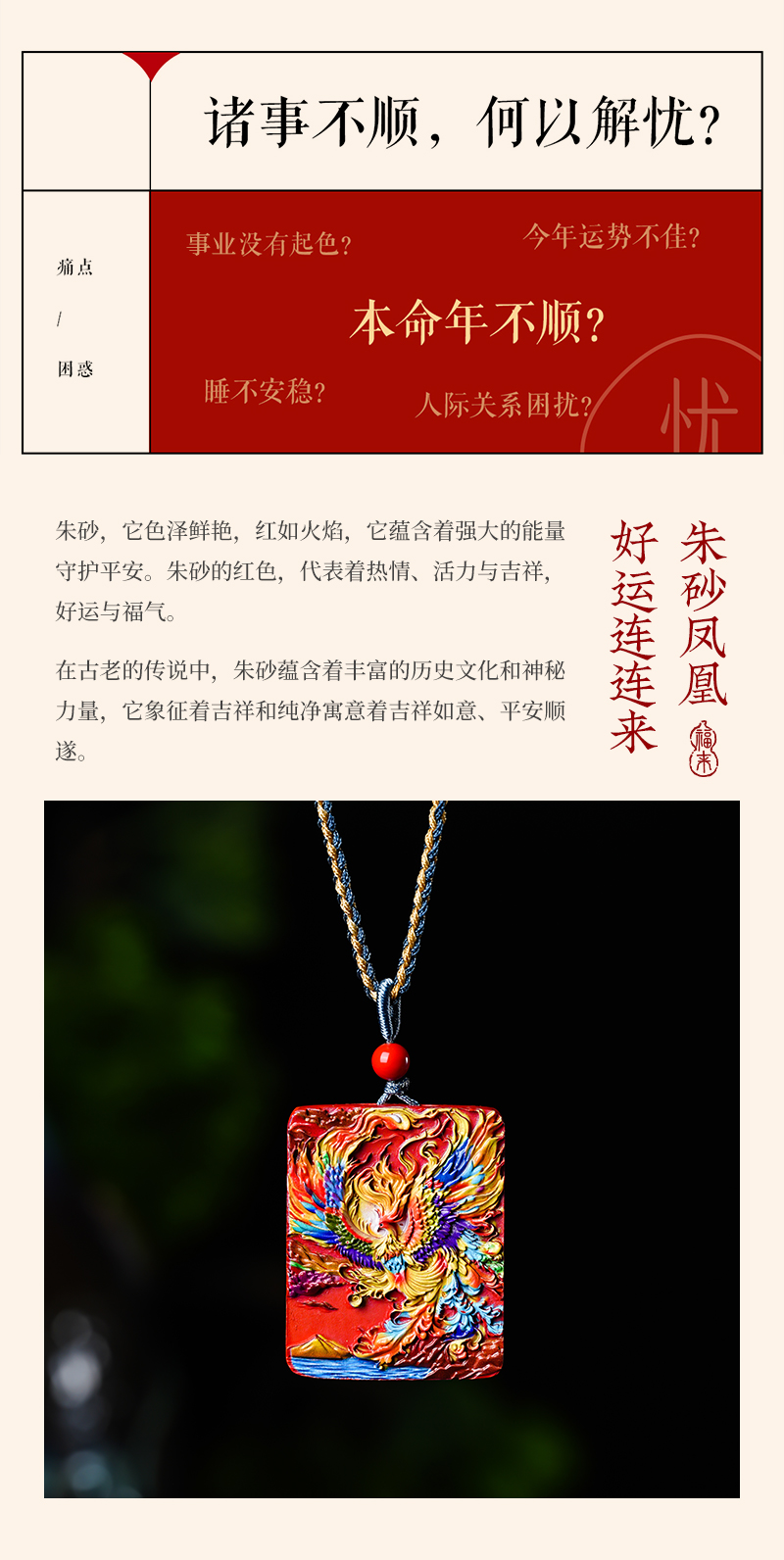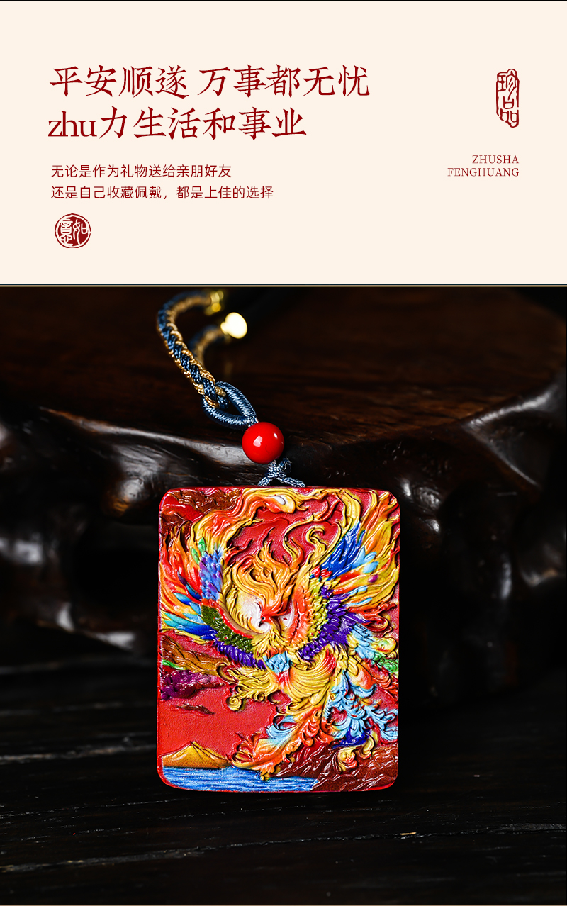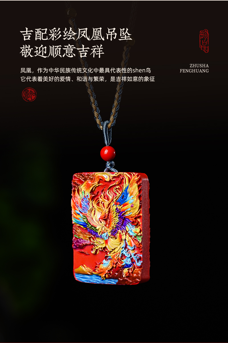 朱砂凤凰牌吊坠男女款挂坠项链情侣设计质感百搭吊坠