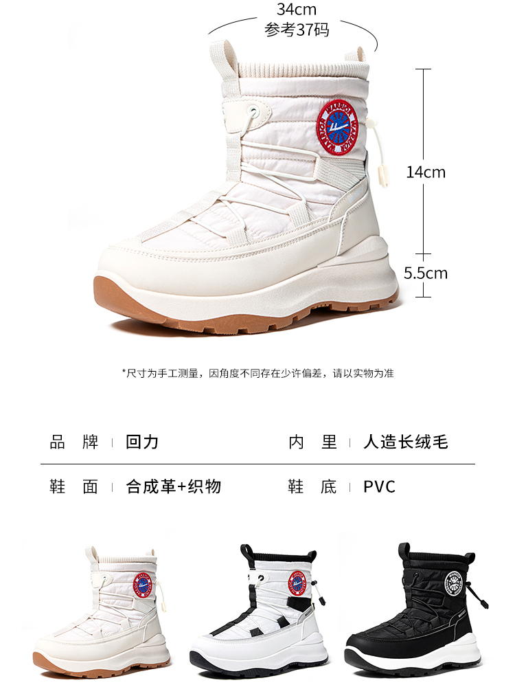回力雪地靴女鞋2025冬季新款加绒加厚防寒保暖防溅雪鞋东北大棉鞋