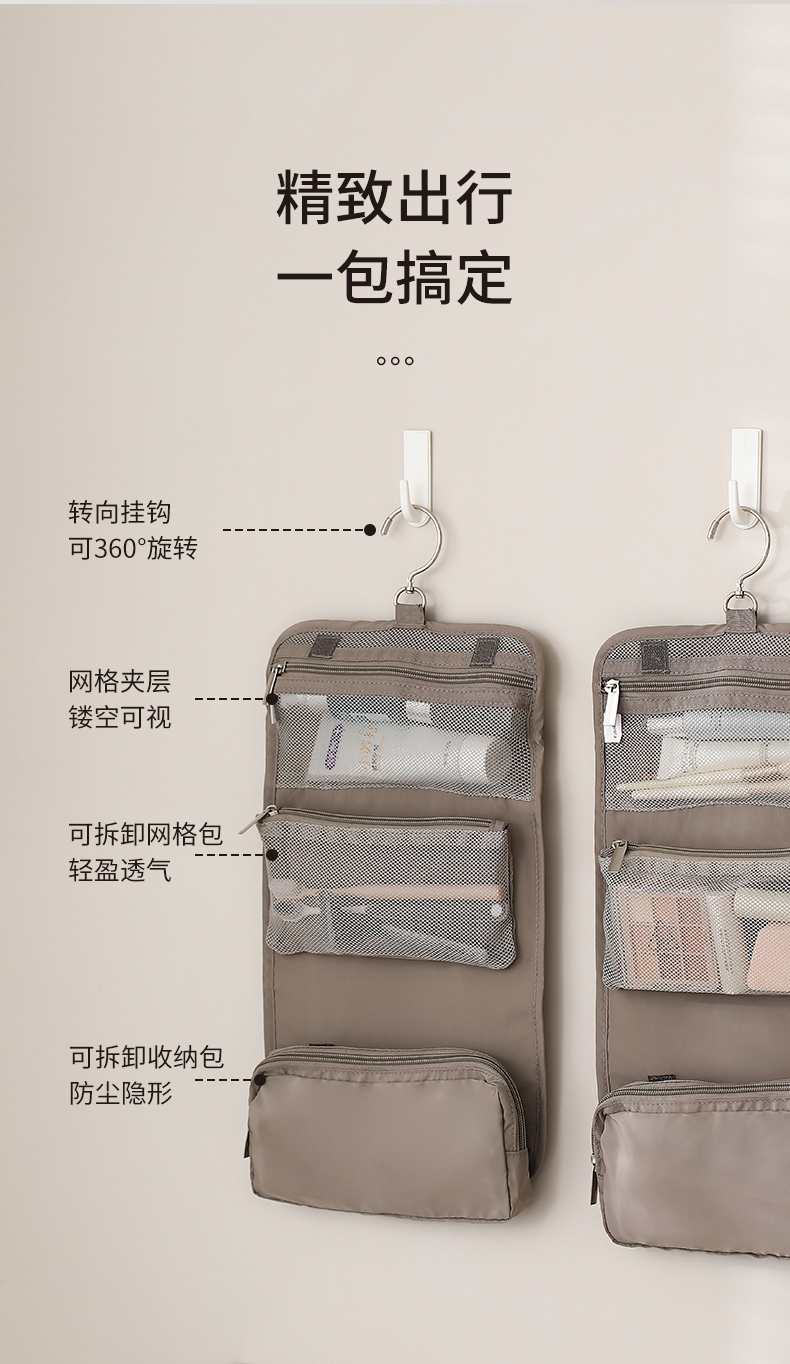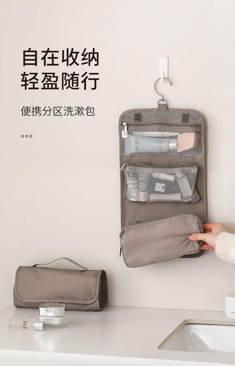 【云优选】FaSoLa旅行洗漱包便携化妆包大容量简约多功能收纳包出差旅行收纳袋
